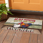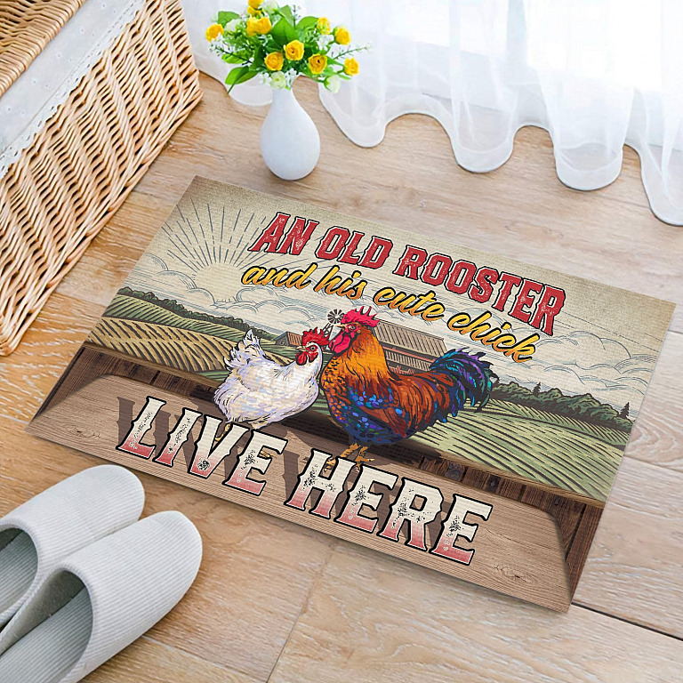 Let’s Shop An Old Rooster And His Cute Chick Live Here House Doormat – Outdoor Indoor Doormat!