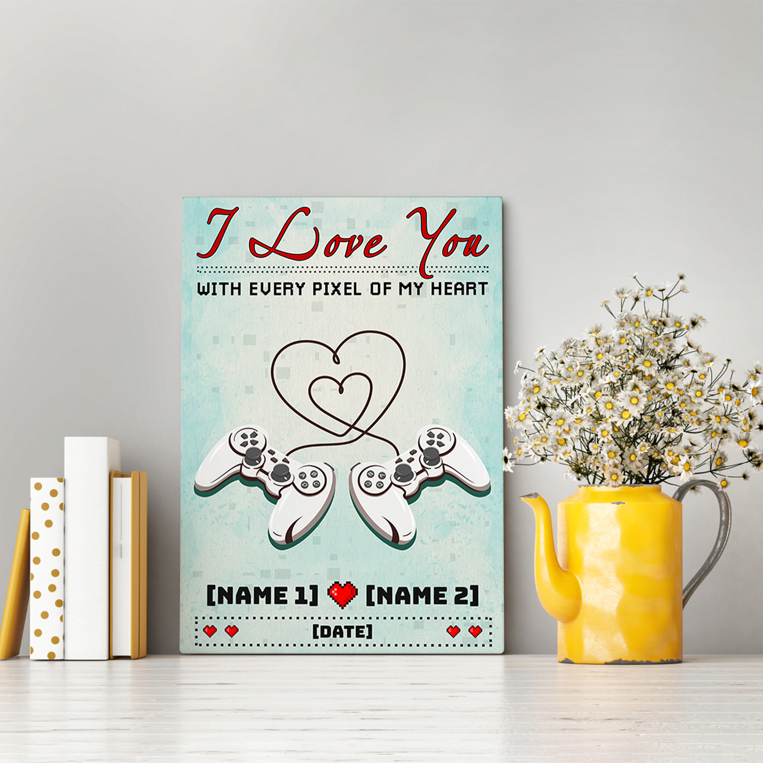 Let’s Shop Personalized I Love You With Every Pixel Of My Heart Gallery Wrapped Framed Canvas Prints – Unframed Poster!