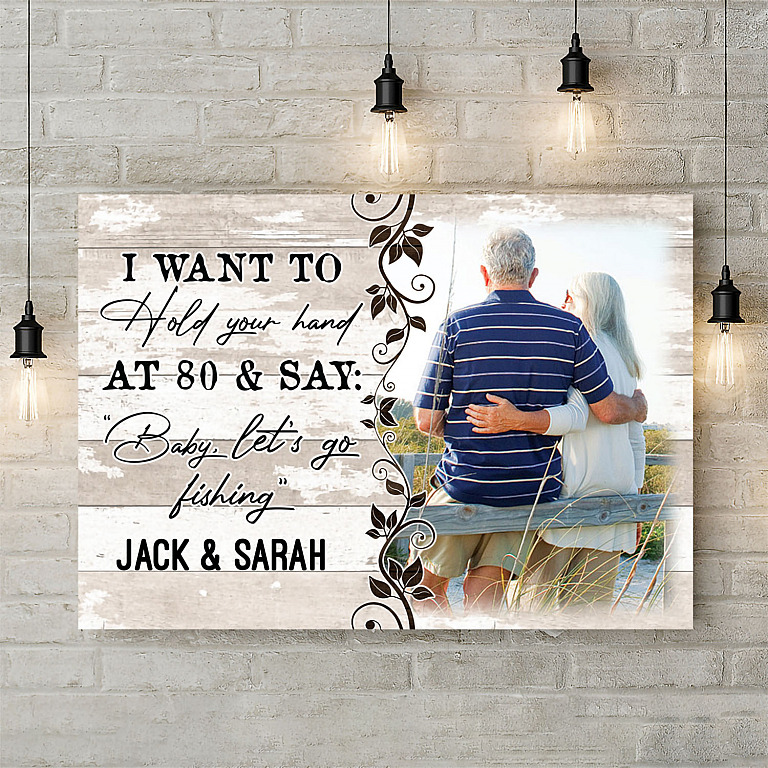 Let’s Shop Personalized Photo I Want To Hold Your Hand At 80 And Say Baby Let’s Go Fishing Framed Canvas – Unframed Poster!