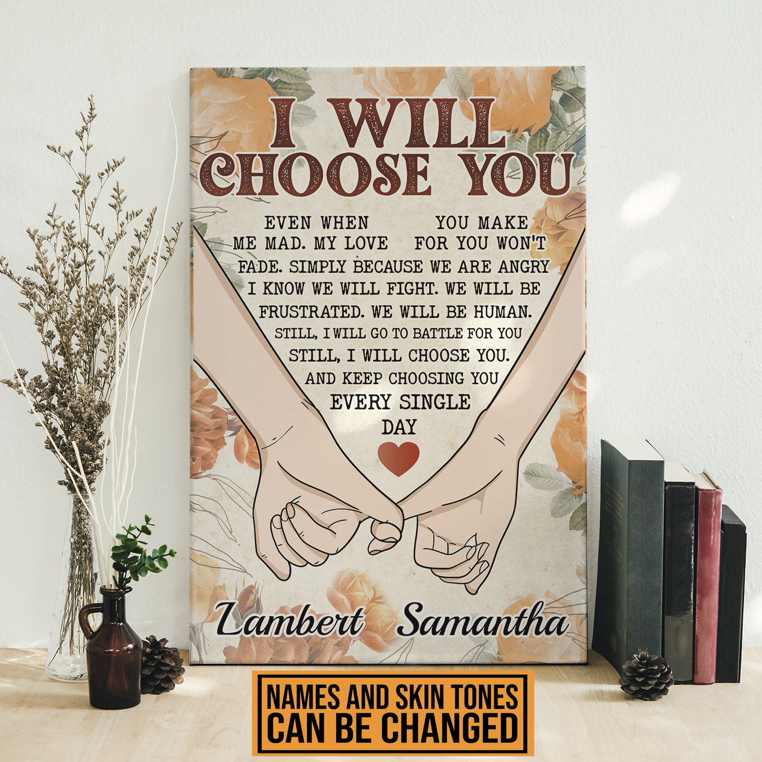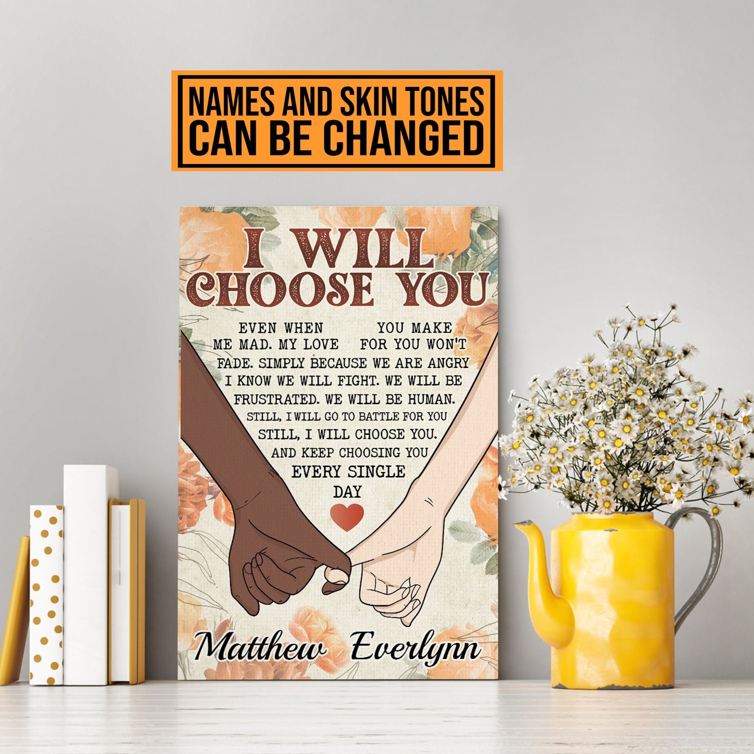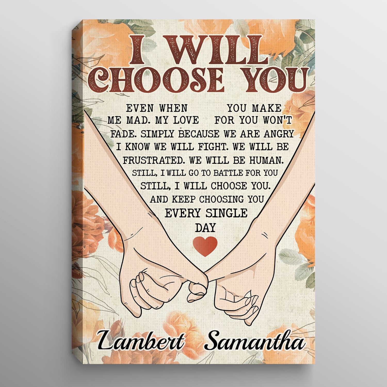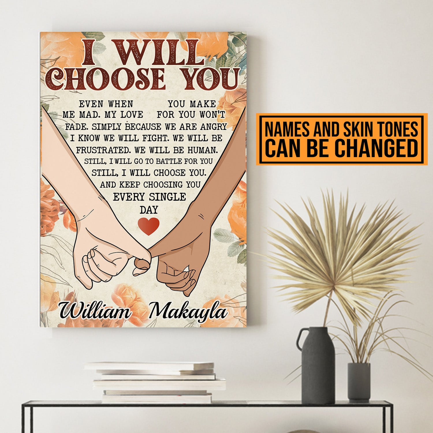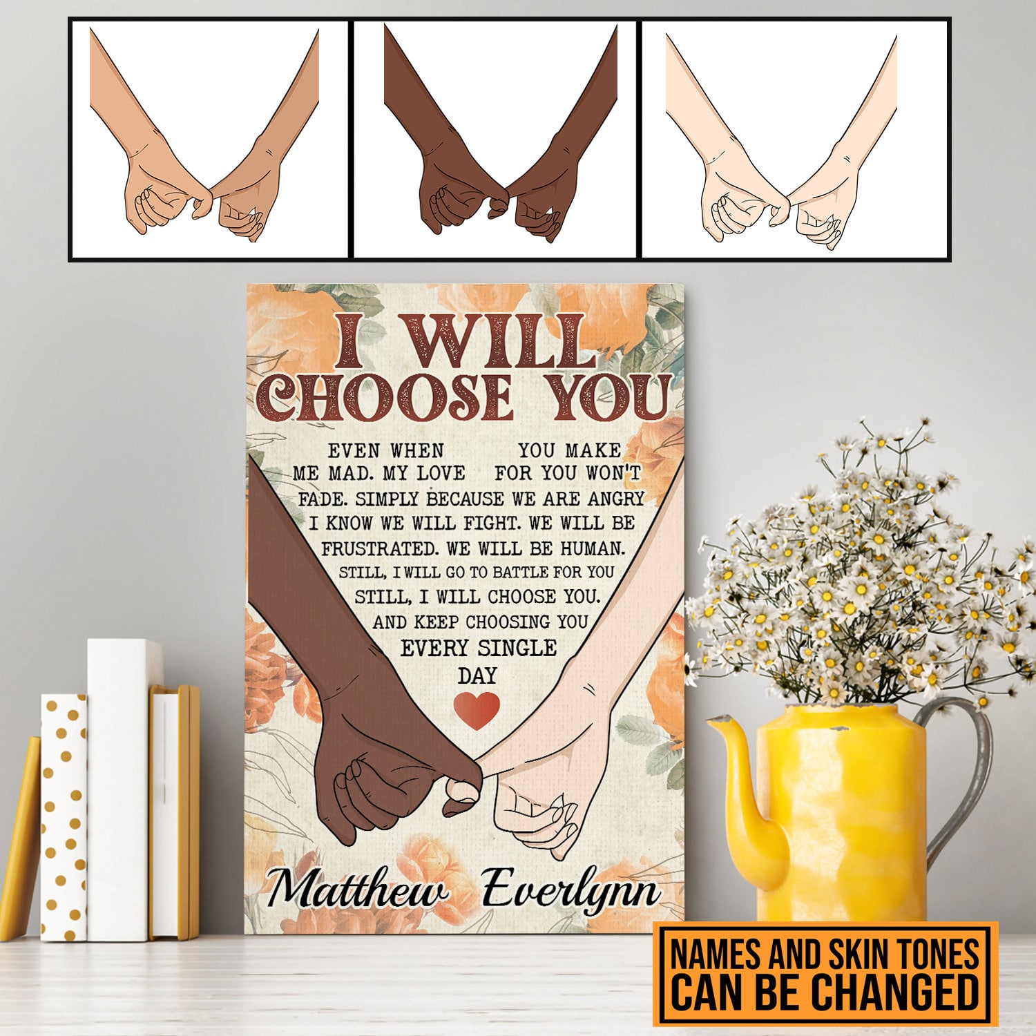 Let’s Shop Personalized Couple Hands I Will Choose You Even When You Make Me Sad Canvas Prints – Unframed Poster!