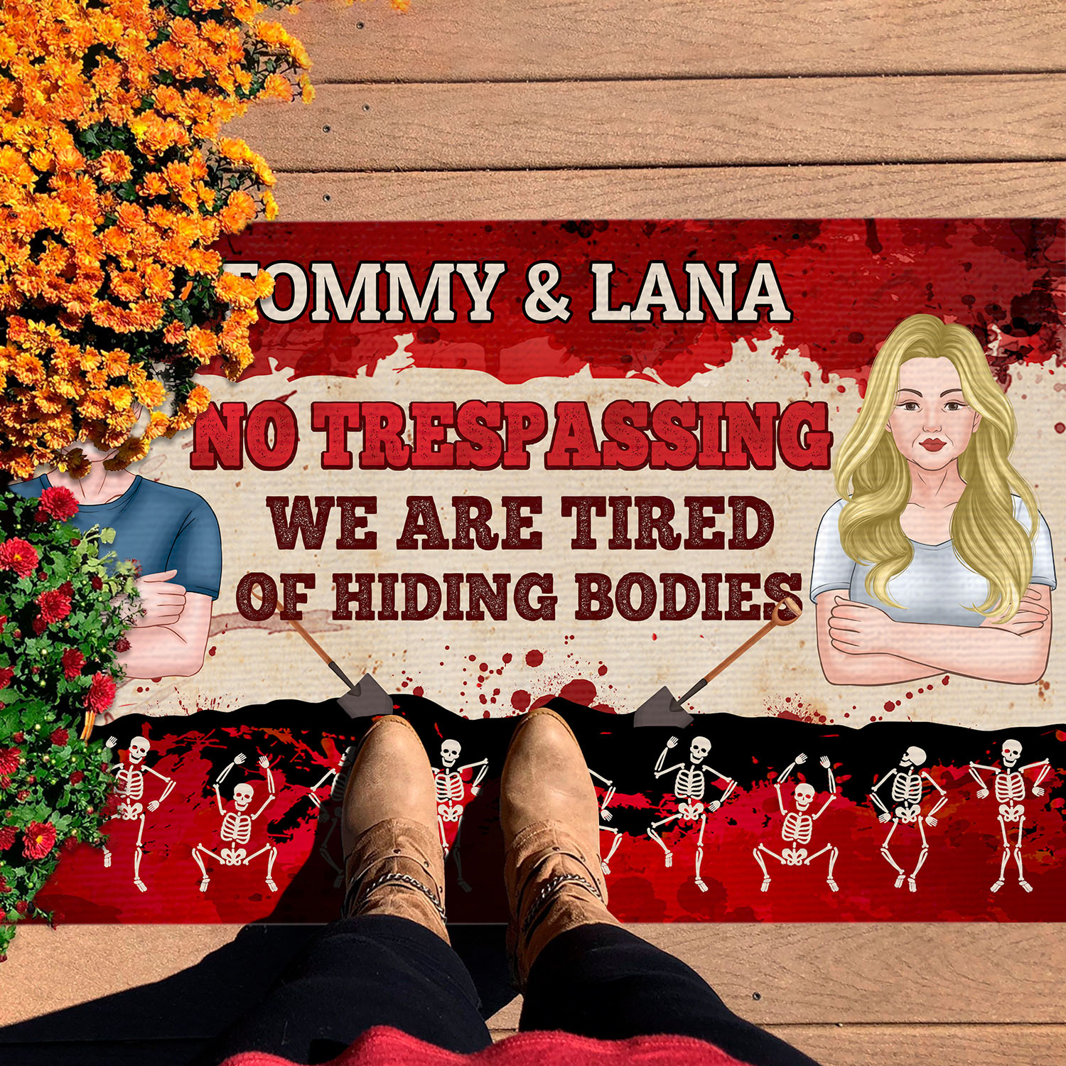 Are you spending too much time to find creative merchandise for you or suitable & special gifts for your mommy, your daddy, your son, your daughter, your children, your friends or someone you love? The struggle is over because we have various No Trespassing We Are Tired of Hiding Bodies Doormat, Funny Doormat for Couples, Personalized Doormat for Couples, Customized Gifts for Couples Doormat, Couples Doormat, Funny Doormat for Couples, Doormat for Camping Couples, Doormats for Couples, Couple Doormat which will make perfect presents for your beloveds. In order to make your present stand out, we have created lots of unique and awesome customized photo gifts & personalized designs.