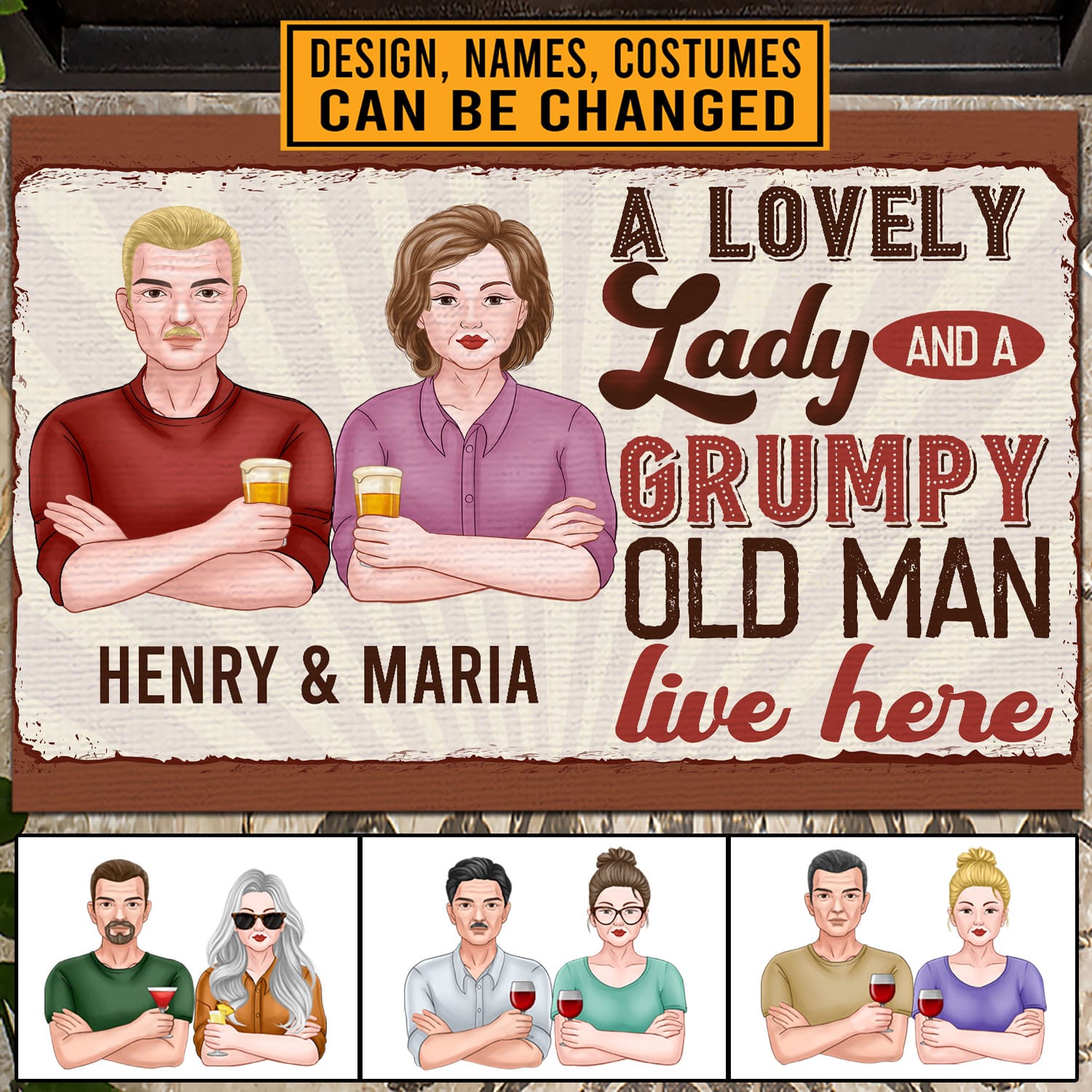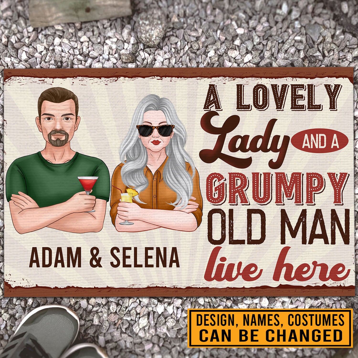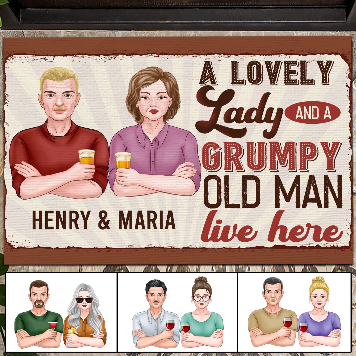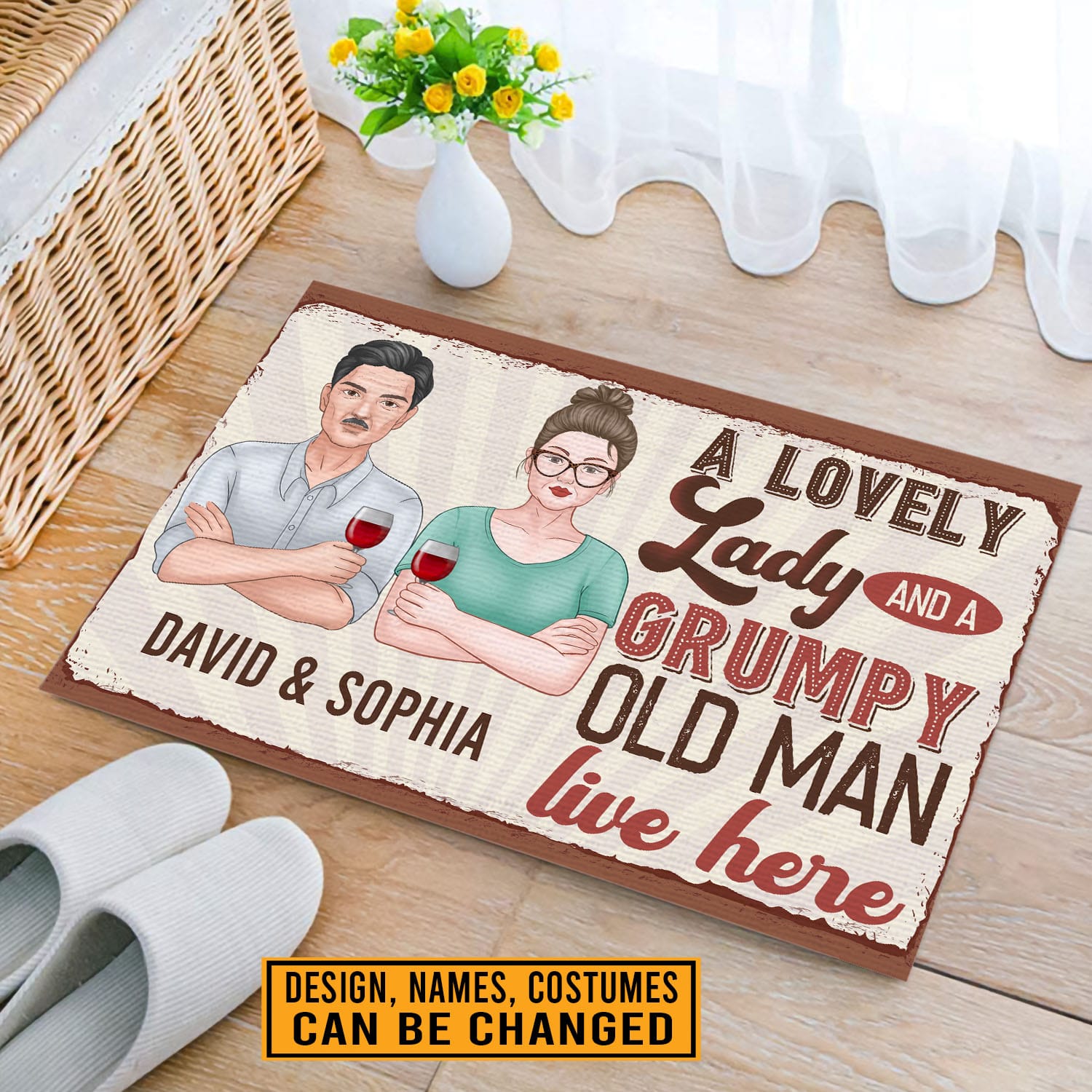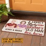 Let’s Shop Personalized Old Couple A Lovely Lady And A Grumpy Old Man Live Here House Doormat – Outdoor Indoor Doormat!