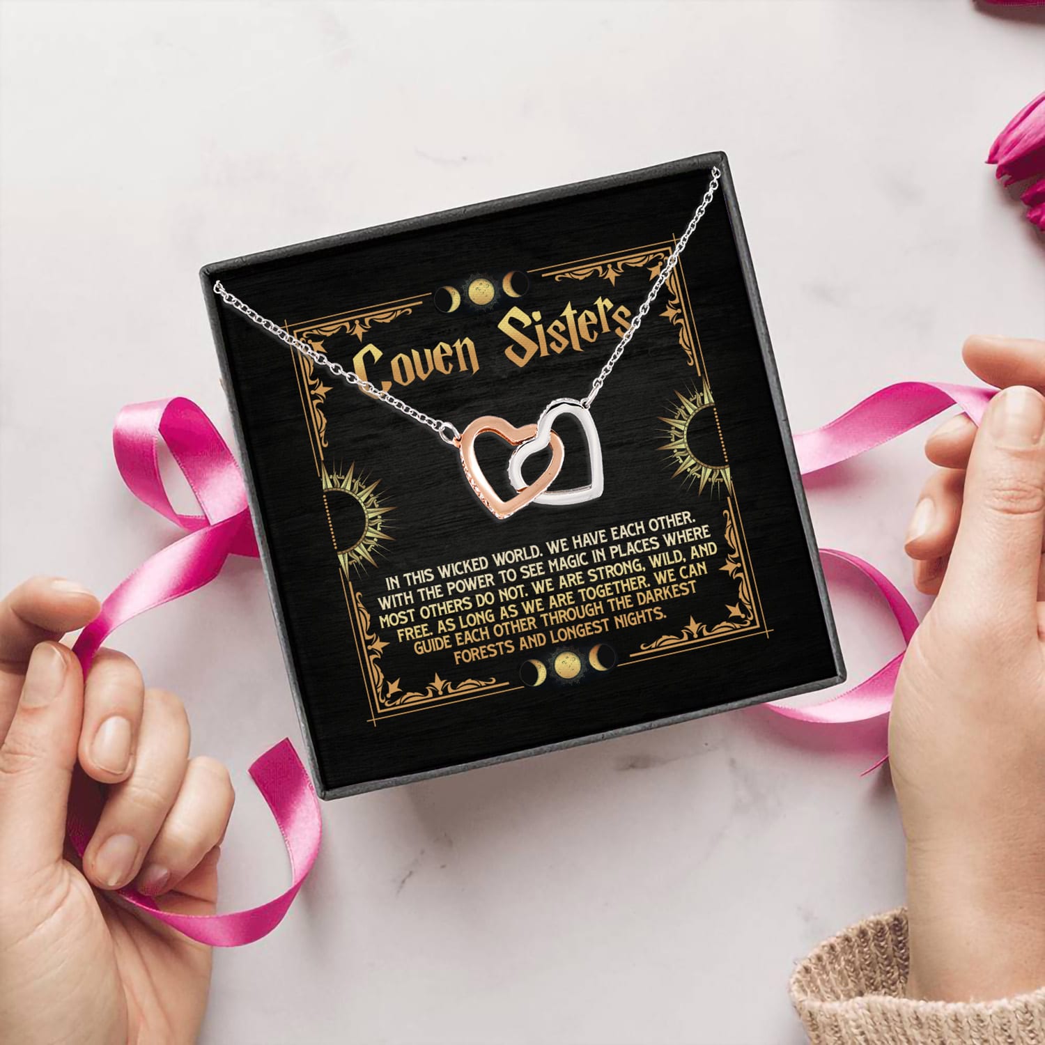 Let’s Shop Coven Sisters Best Witches Friends Joined Interlocking Hearts Pendant Necklace – Bestie Gifts!