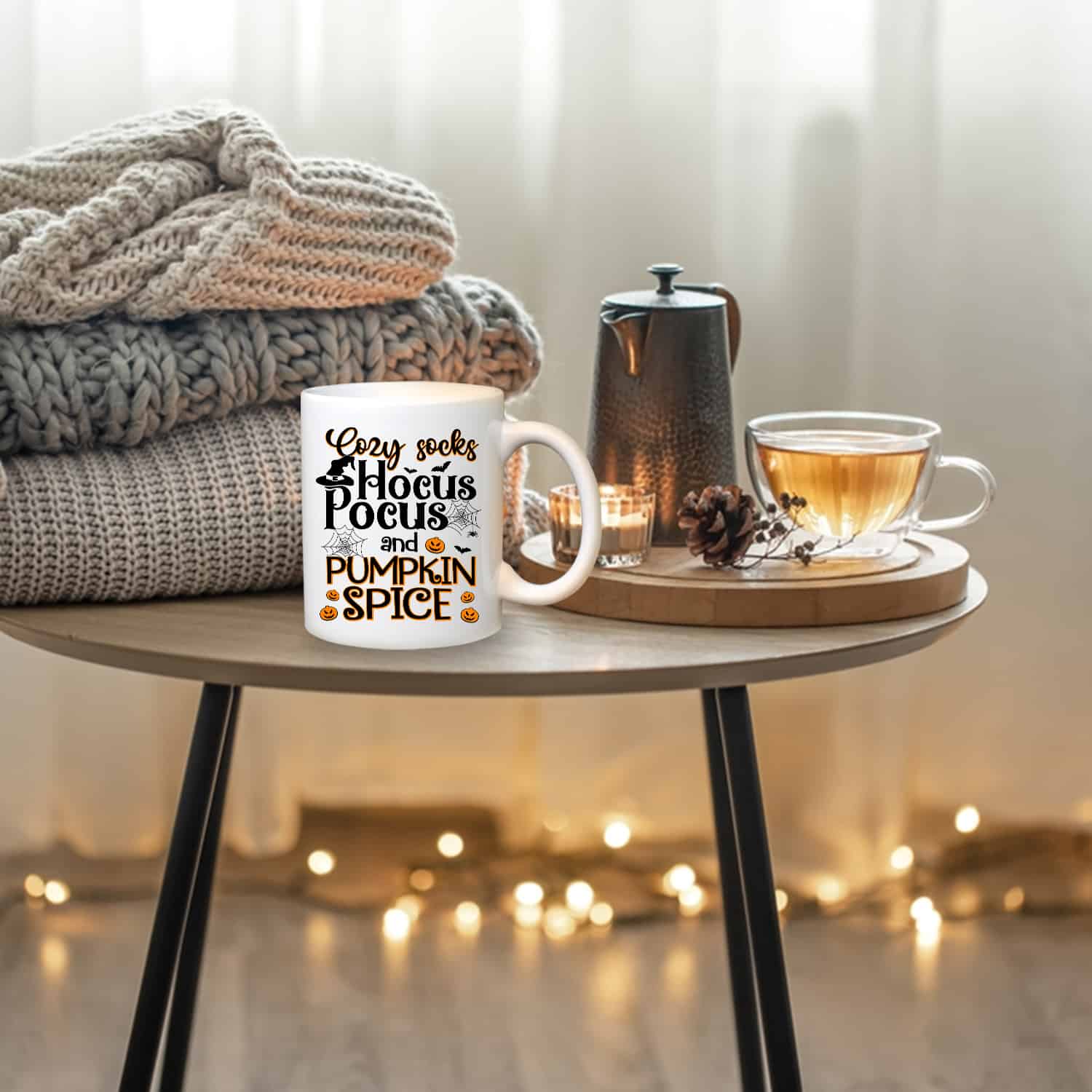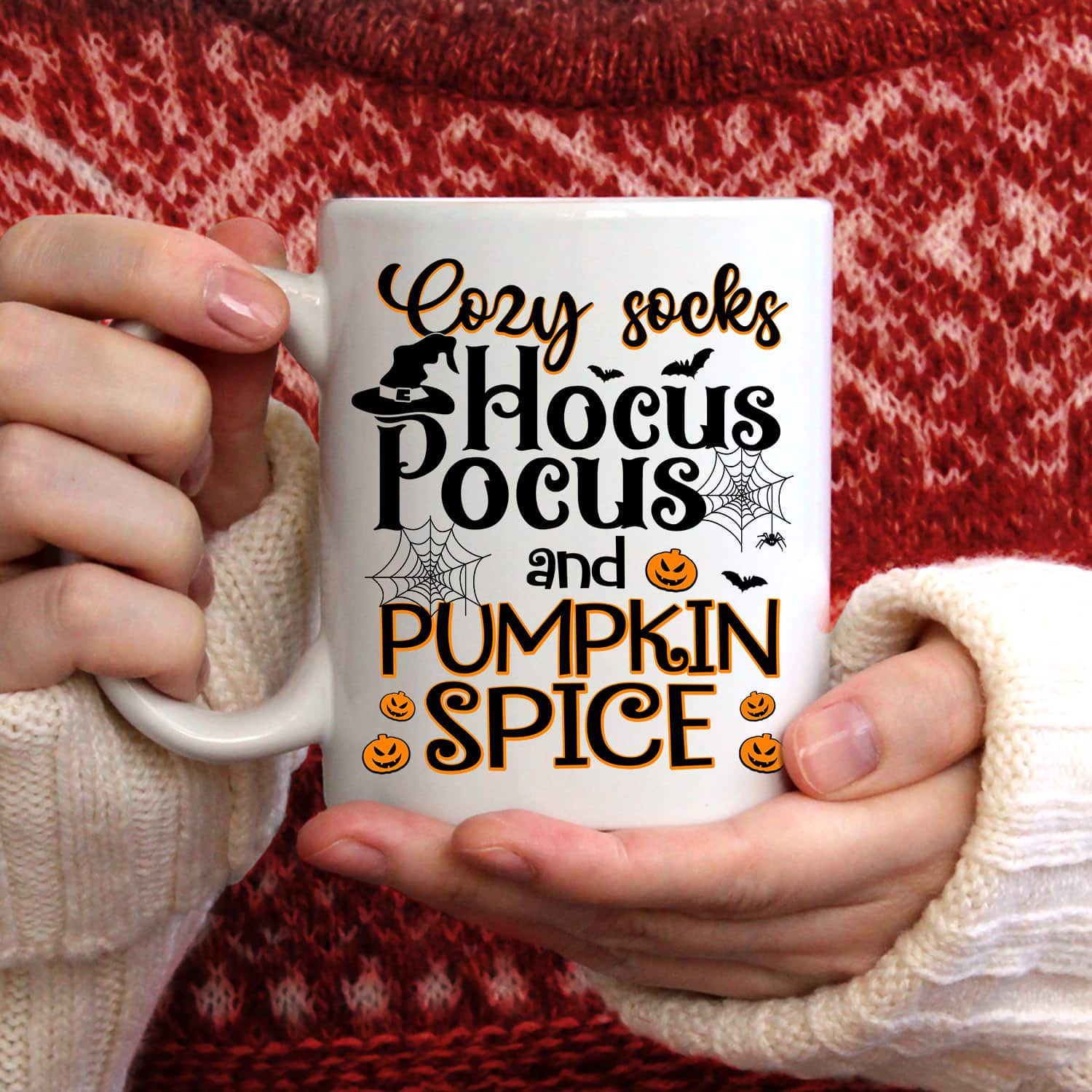 Let’s Shop Cozy Socks Hocus Pocus and Pumpkin Spice Mug – Halloween Witch Cosy Coffee Mugs Cup!