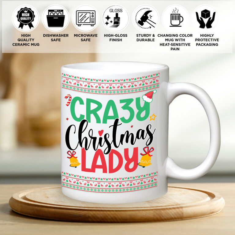 Let’s Shop Crazy Christmas Lady Coffee Mug – Beer Stein – Color Changing Mug!