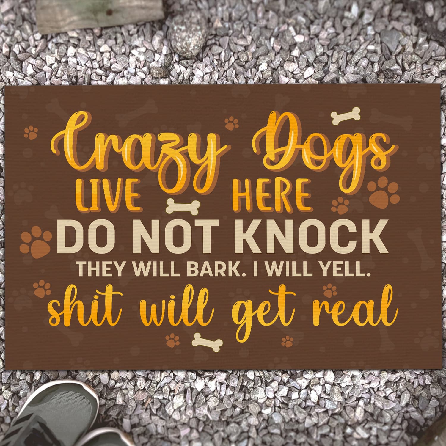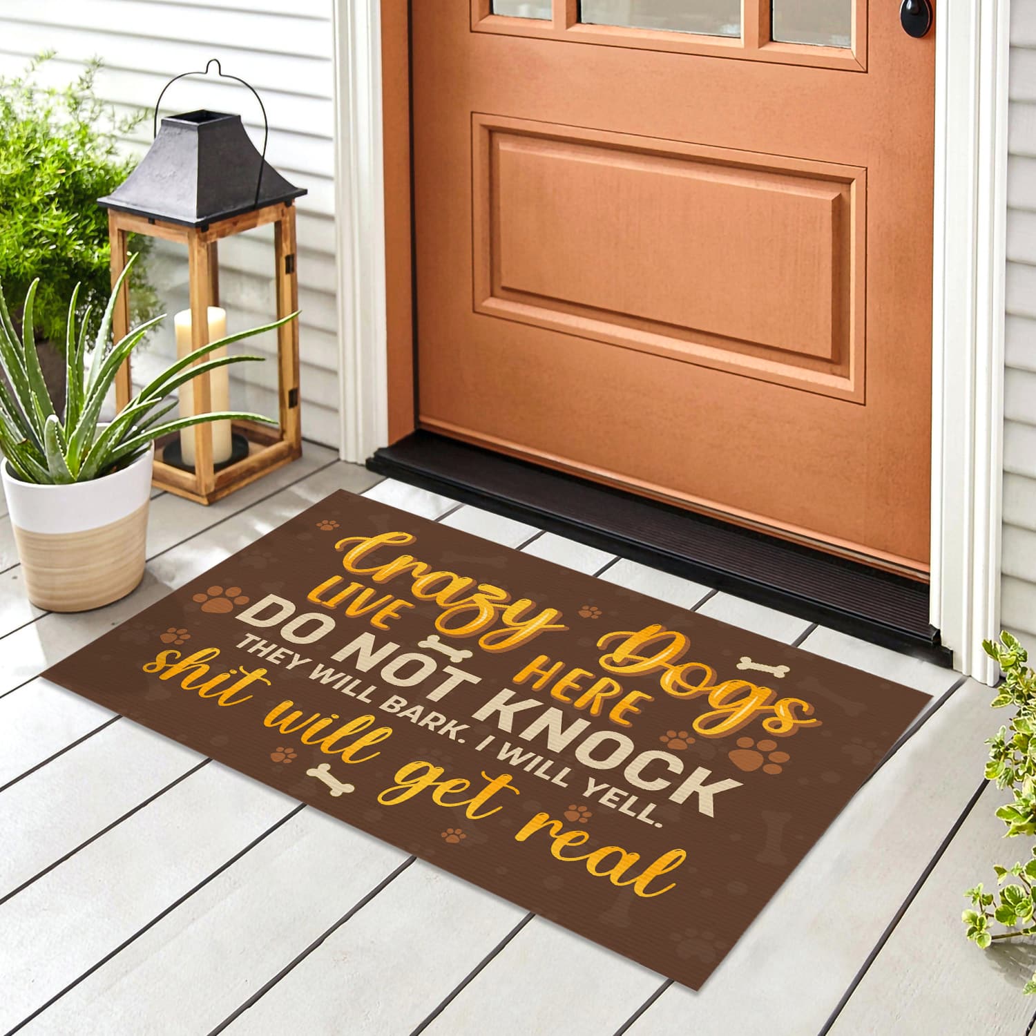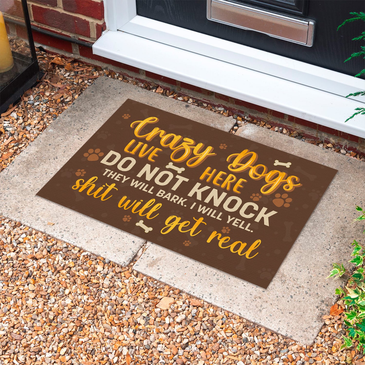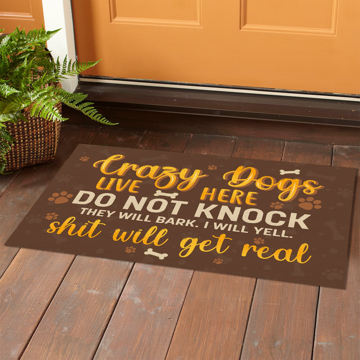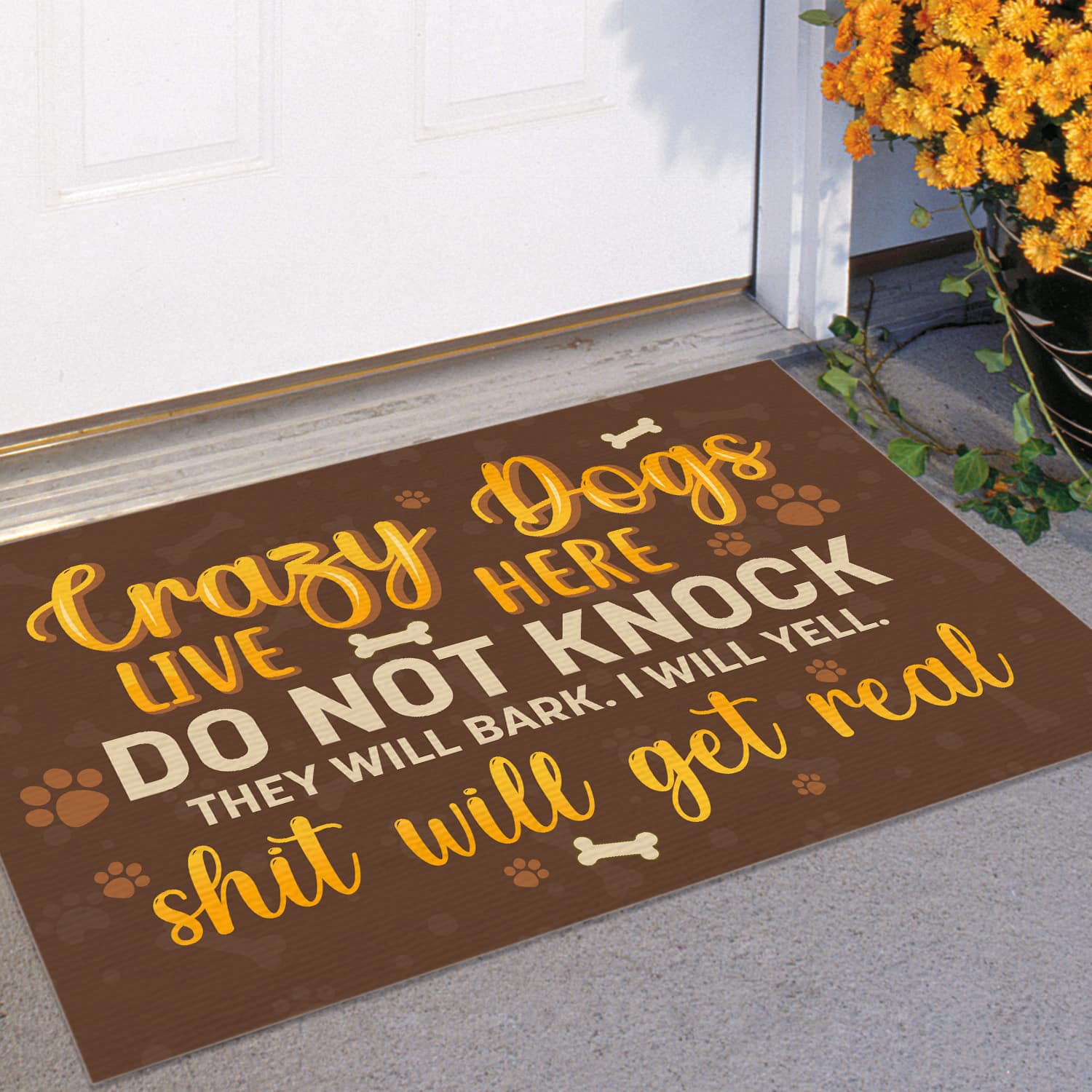 Let’s Shop Crazy Dogs Live Here Do Not Knock They Will Bark I Will Yell Indoor Outdoor Decorative Doormat!