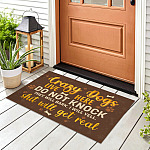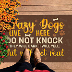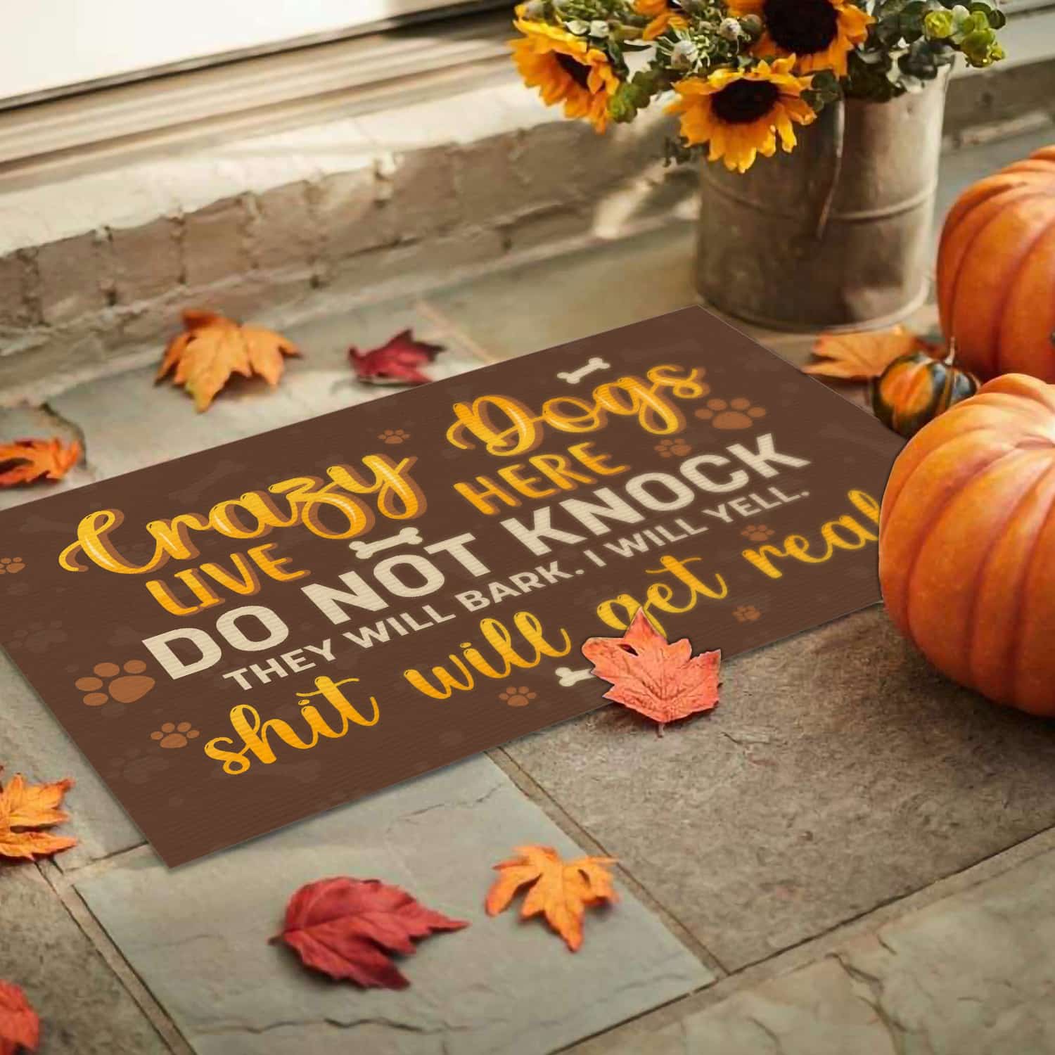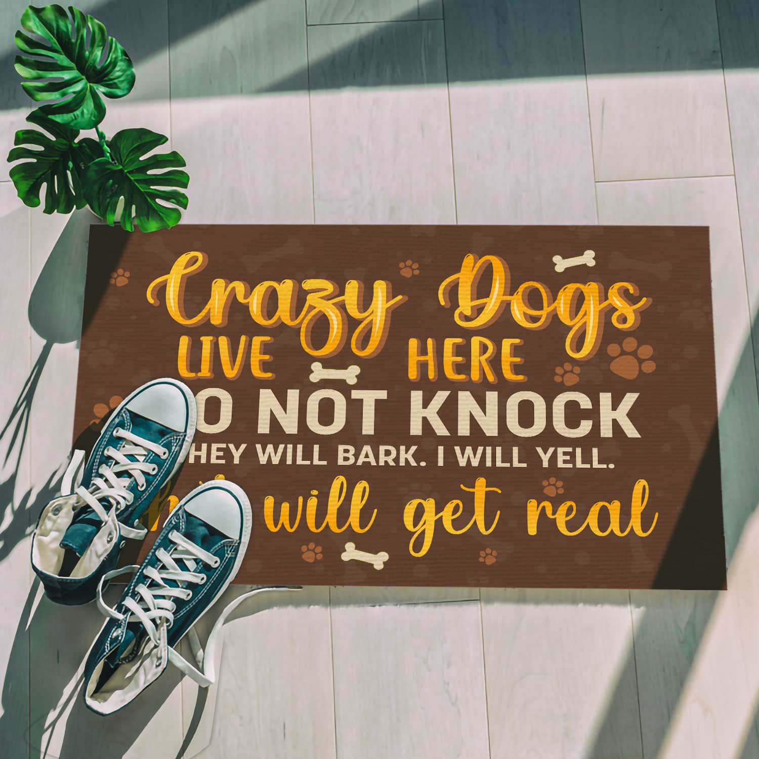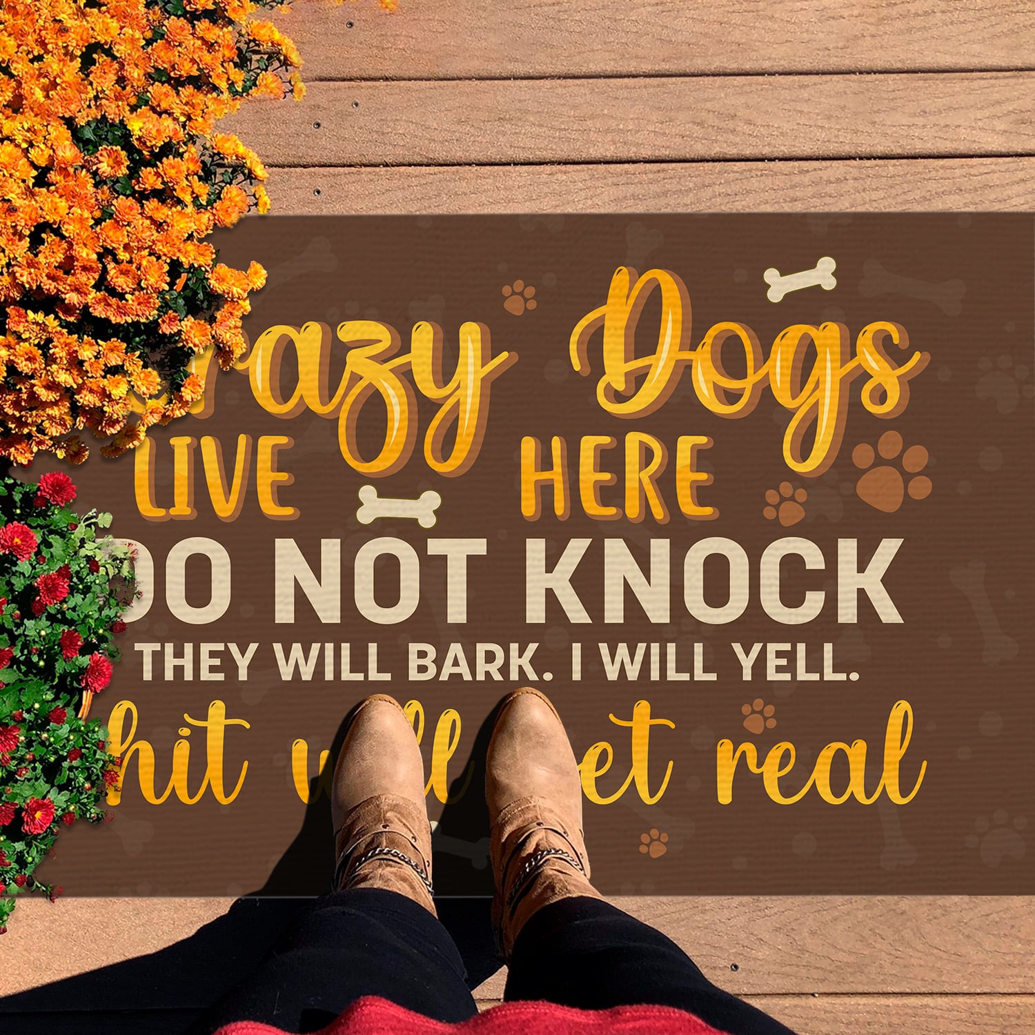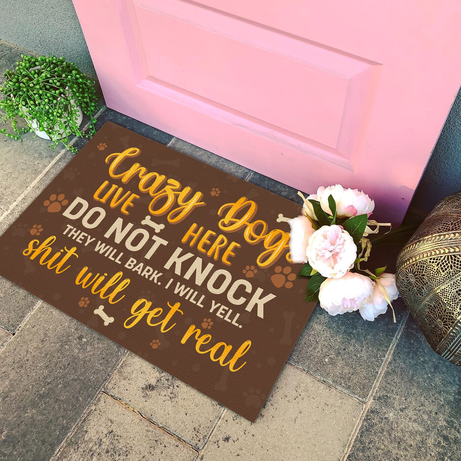 Let’s Shop Crazy Dogs Live Here Do Not Knock They Will Bark I Will Yell Indoor Outdoor Decorative Doormat!