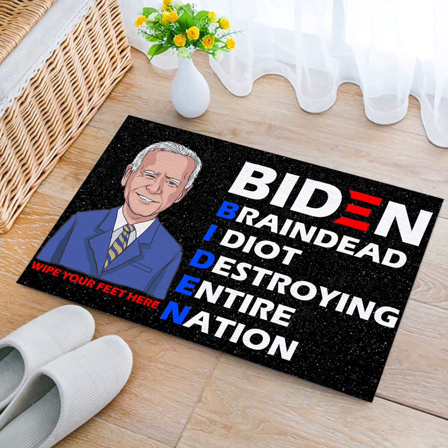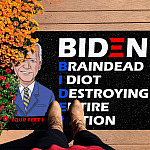 Let’s Shop Funny Anti Biden Entrance Indoor Outdoor Decorative Doormat – Biden Braindead Idiot Destroying Entire Nation Doormat!