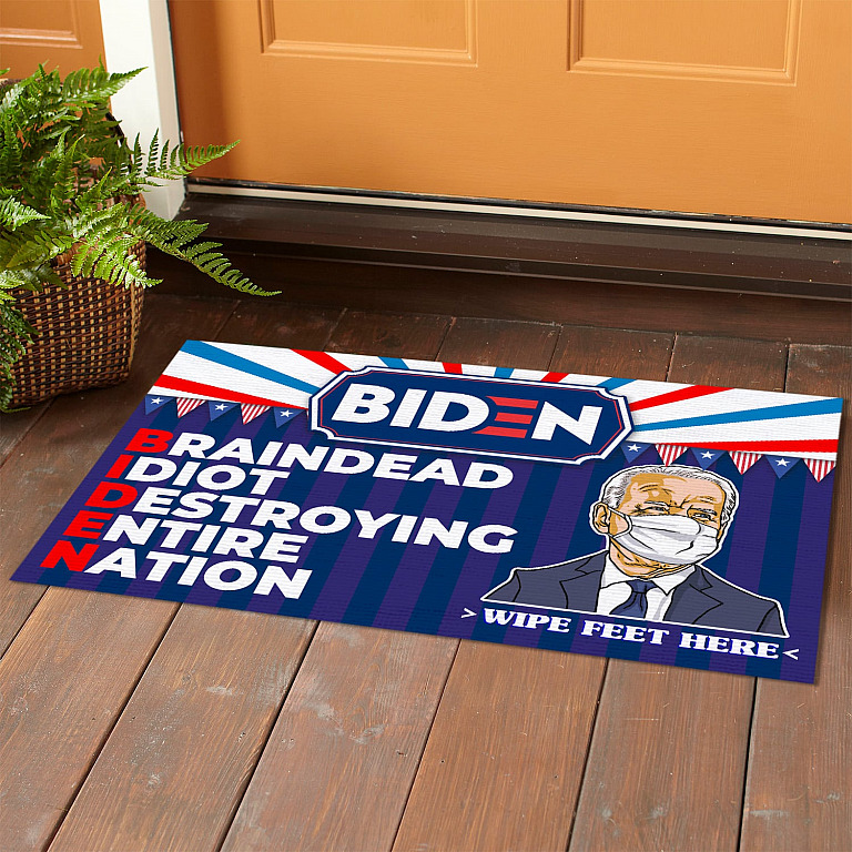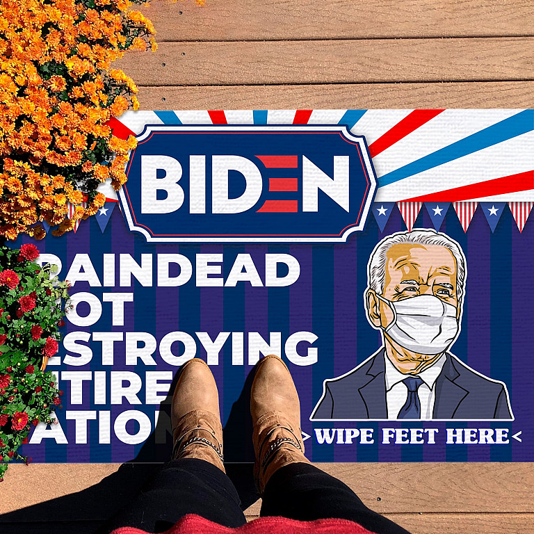 Let’s Shop Funny Anti Biden Meme Saying Decorative Home Entrance Doormat – Biden Braindead Idiot Destroying Entire Nation House Doormat!