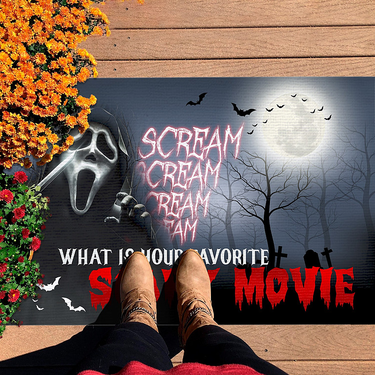 Let’s Shop What Is Your Favorite Scary Movie Scream Creepy Halloween Doormat – Halloween Outdoor Indoor Doormat!