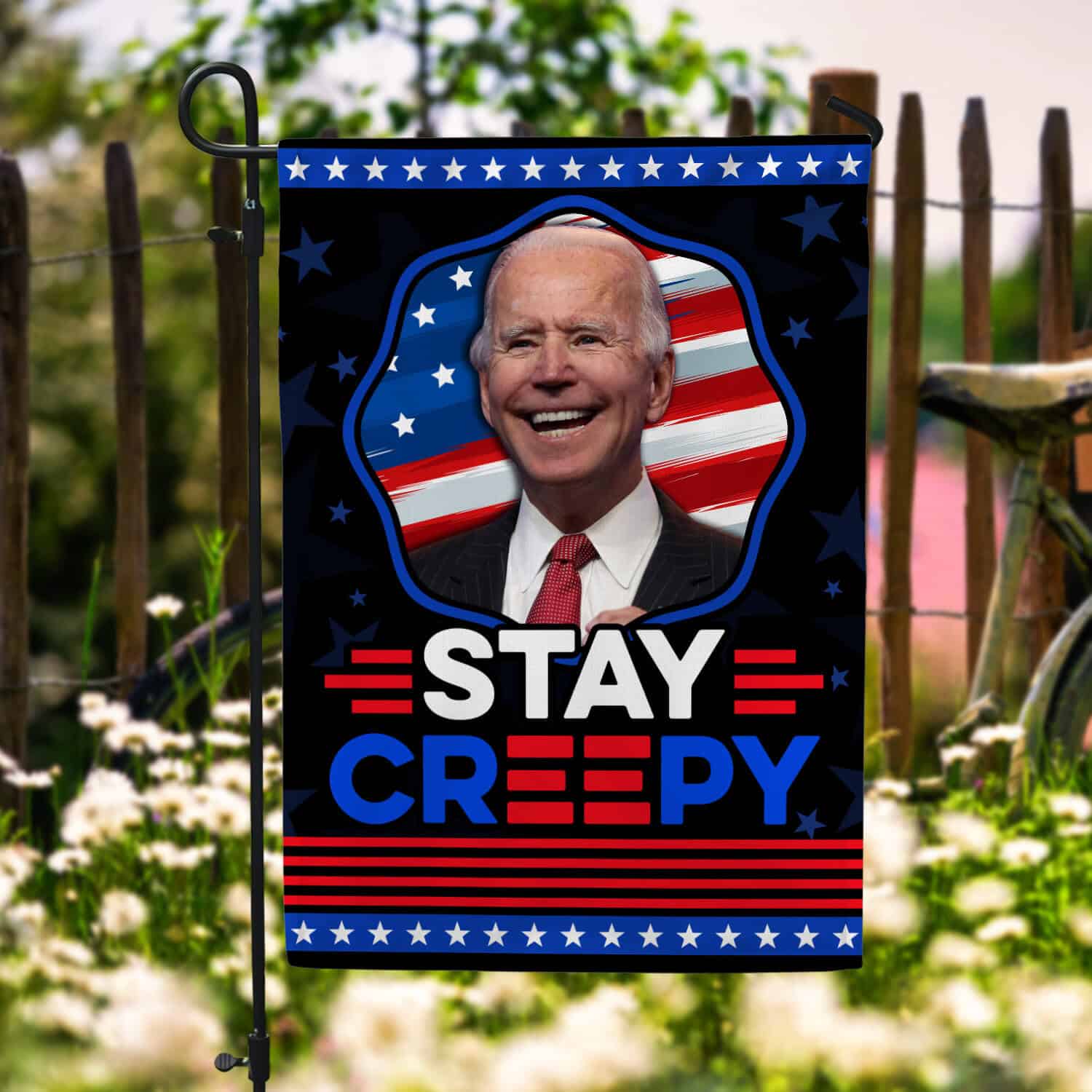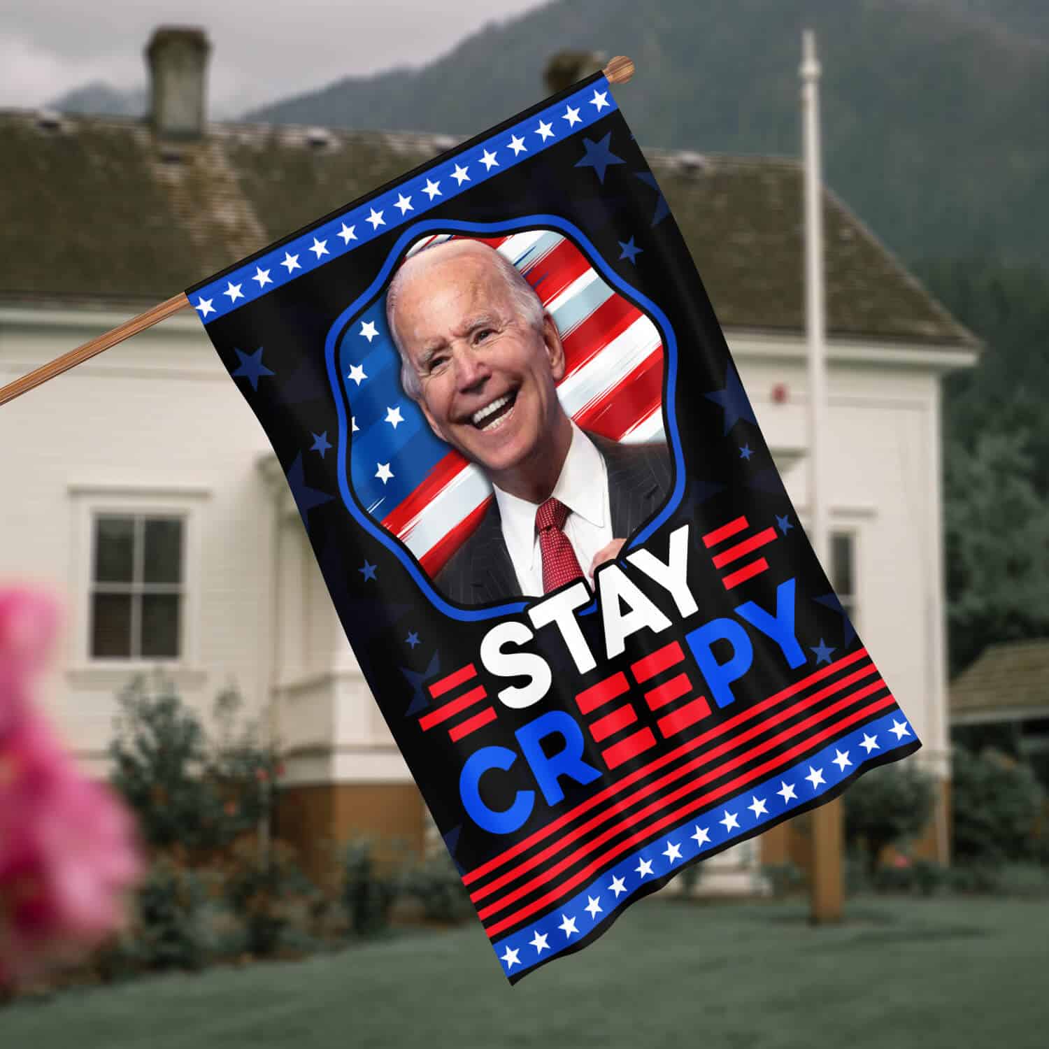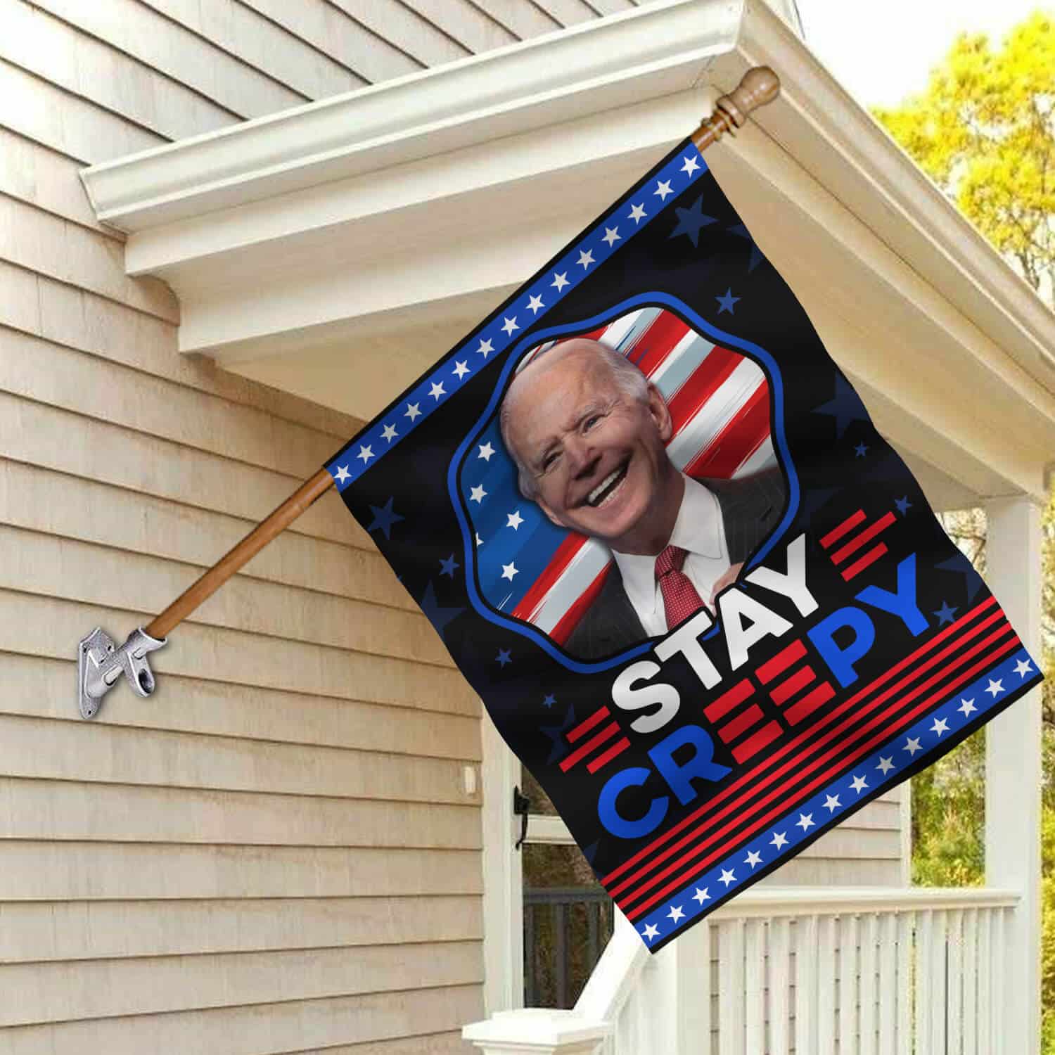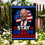 Let’s Shop Funny Joe Biden Stay Creepy American President Flag – Biden Is Not My President Garden Flag – House Flag!