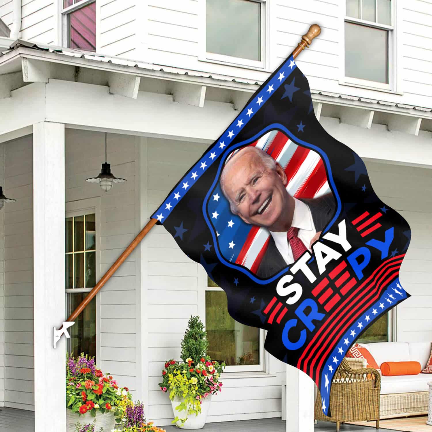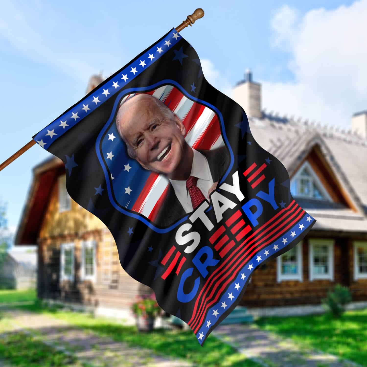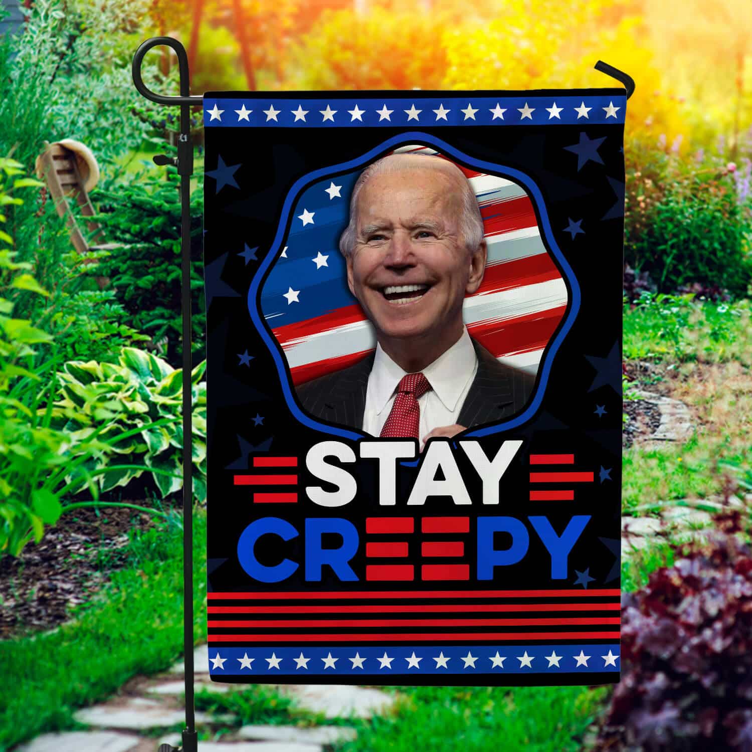 Let’s Shop Funny Joe Biden Stay Creepy American President Flag – Biden Is Not My President Garden Flag – House Flag!