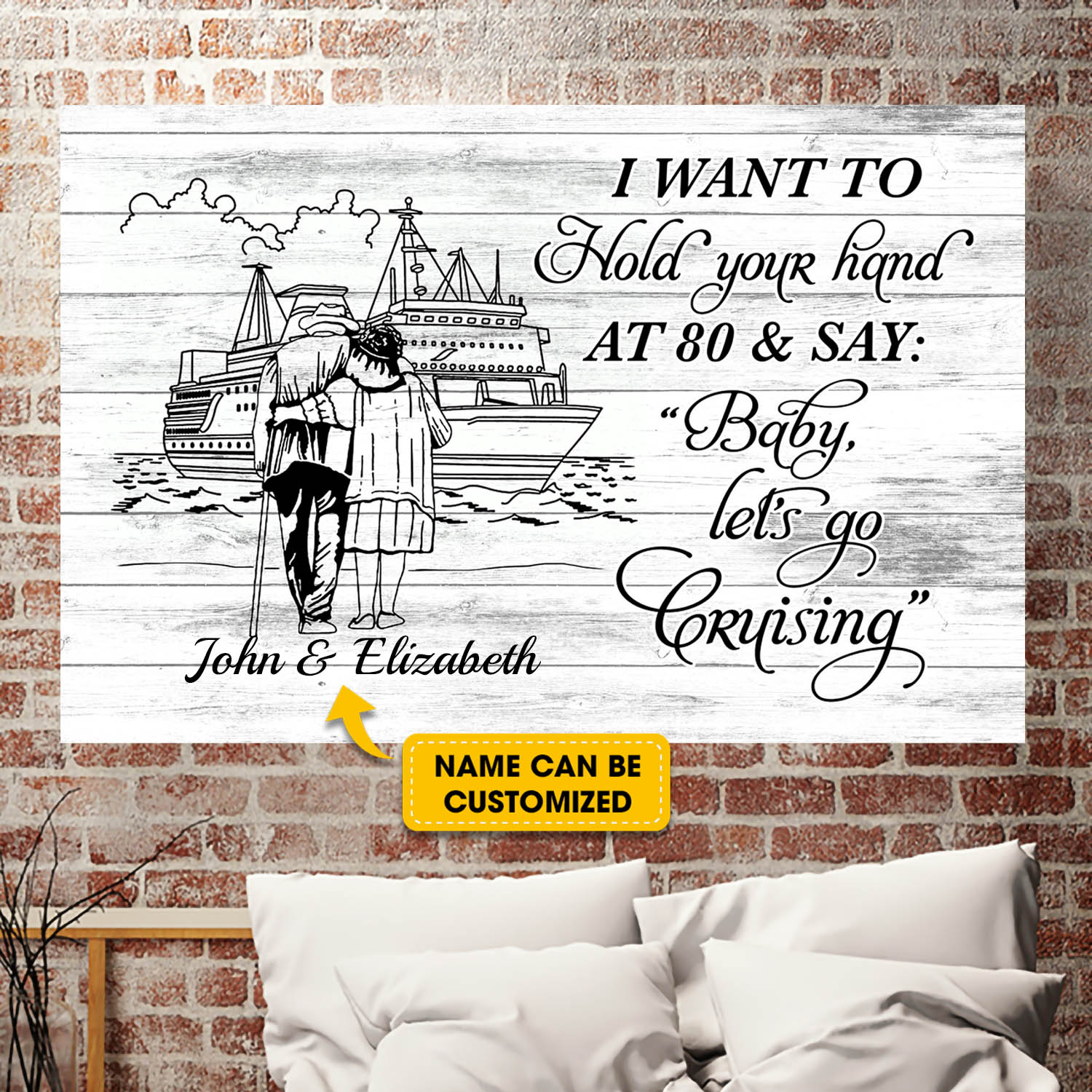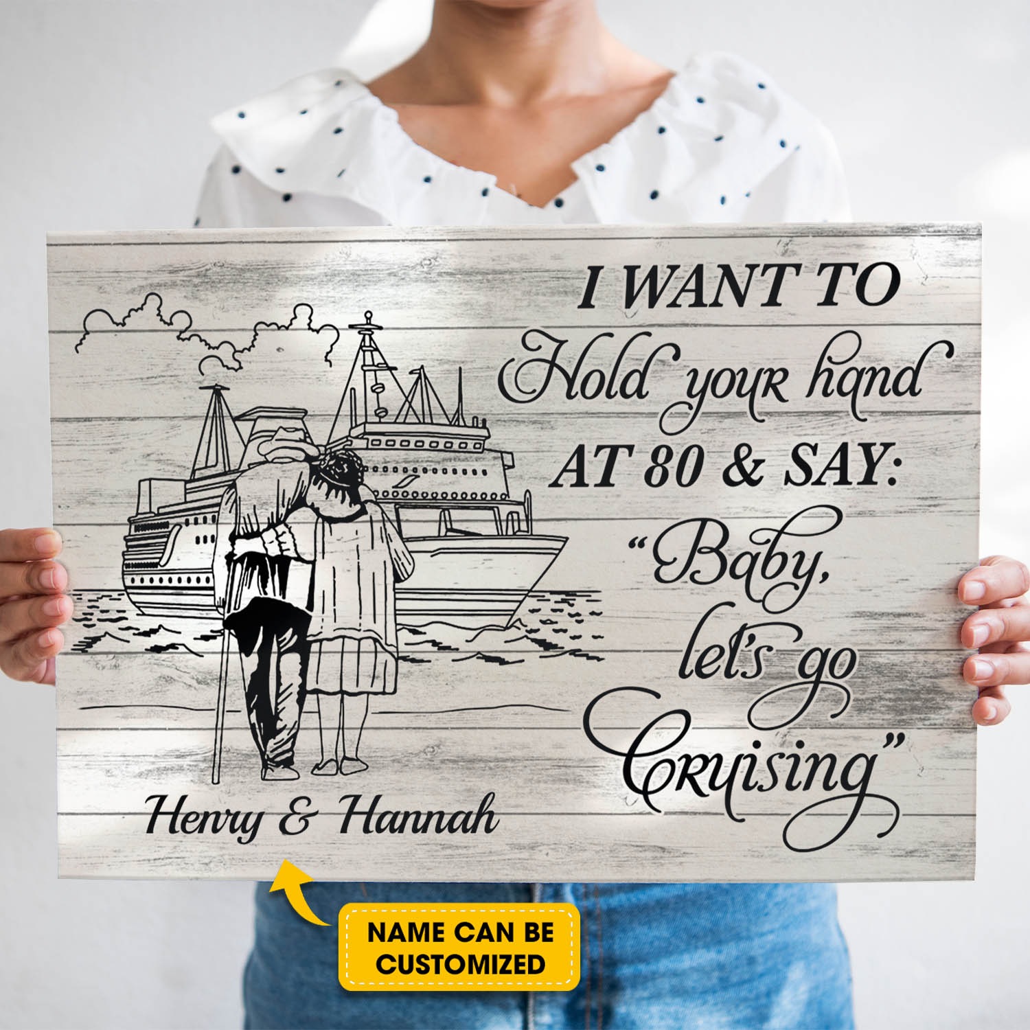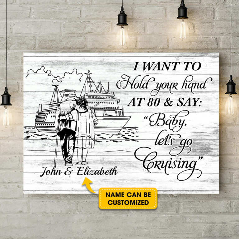 Let’s Shop Personalized I Want To Hold Your Hand At 80 And Say Baby Let’s Go Cruising Framed Canvas Prints – Unframed Poster!