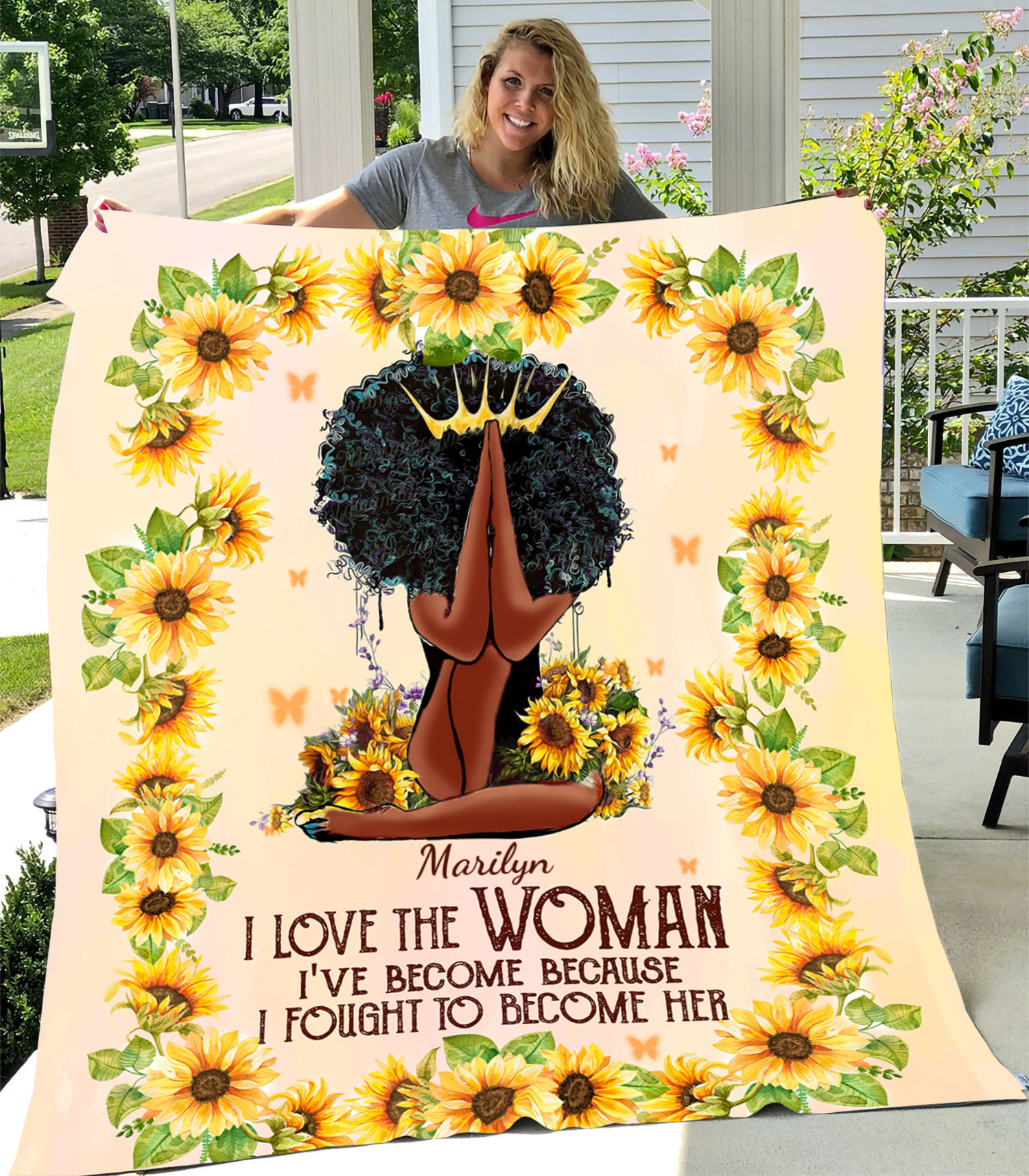 Are you spending too much time to find creative merchandise for you or suitable & special gifts for your mommy, your daddy, your son, your daughter, your children, your friends or someone you love? The struggle is over because we have various Black Girl Sunflower Blanket, Custom Afro Girl Blanket, Sunflower I Love the Woman I’ve Become Blanket, I Love the Woman I’ve Become Because I Fought So Hard to Become Her Blanket which will make perfect presents for your beloveds. In order to make your present stand out, we have created lots of unique and awesome customized photo gifts & personalized designs.