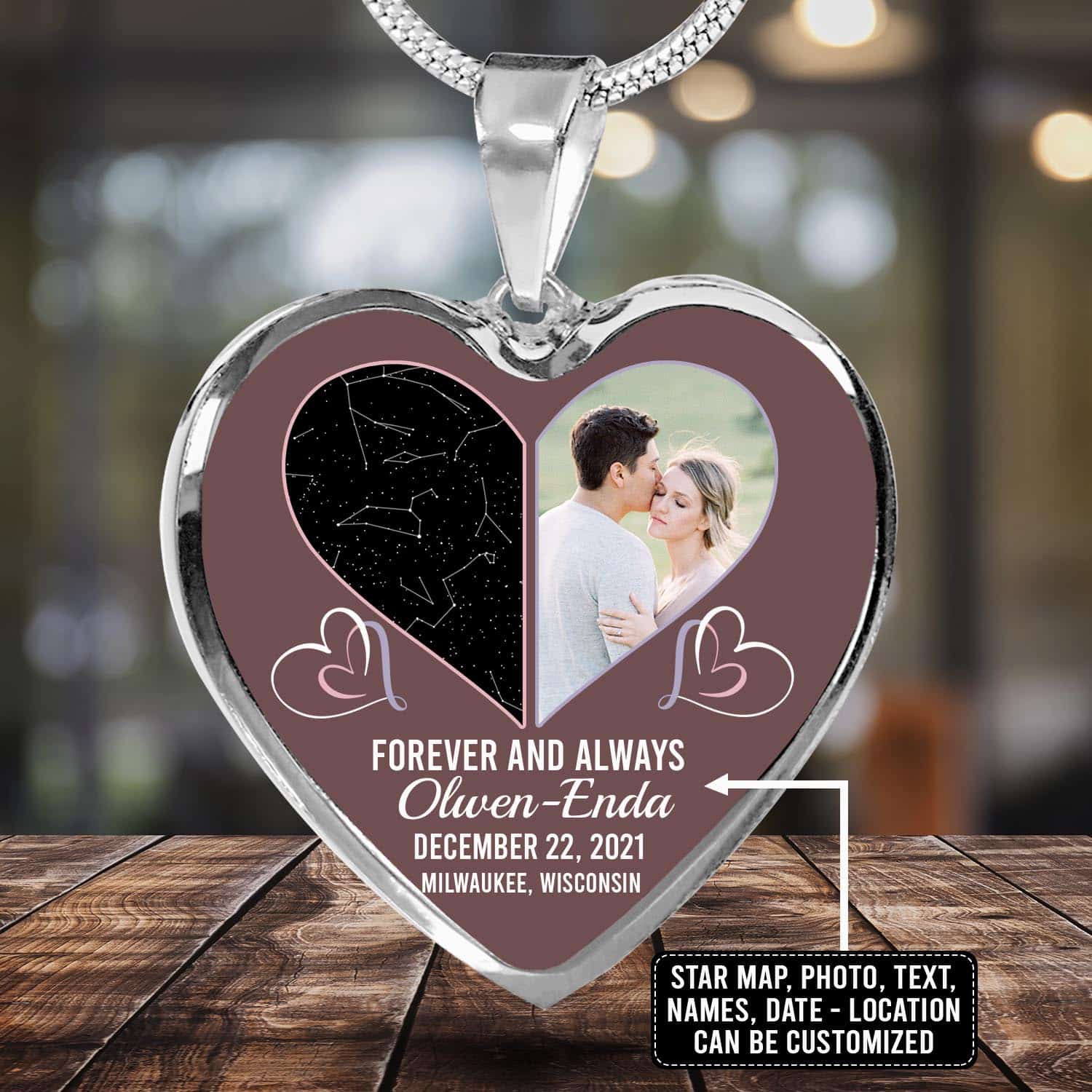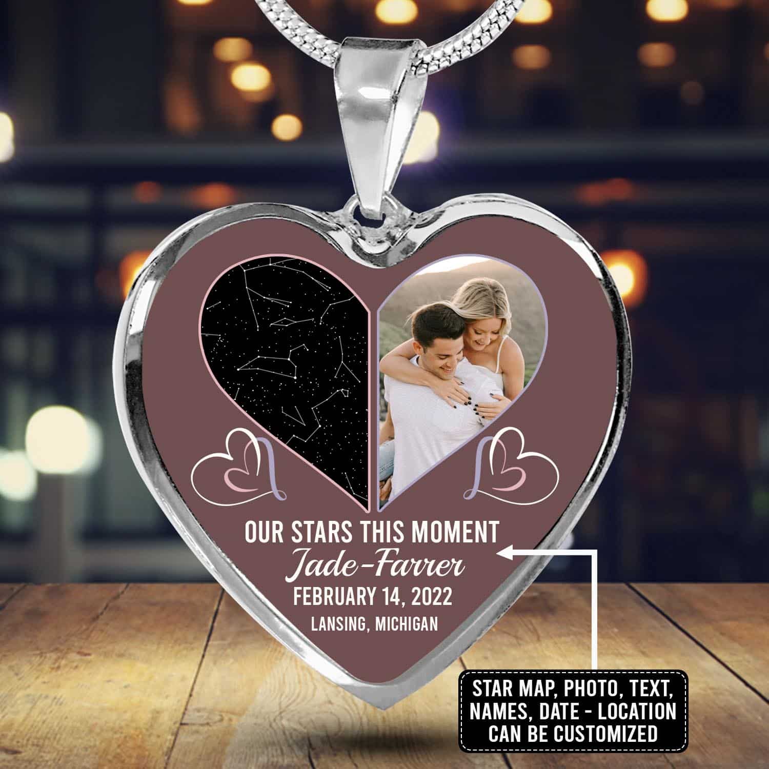 Let’s Shop The Night Sky Couple Story Of Us Personalized Photo Heart Pendant Necklace – Custom Names Anniversary Star Map Heart Necklace!
