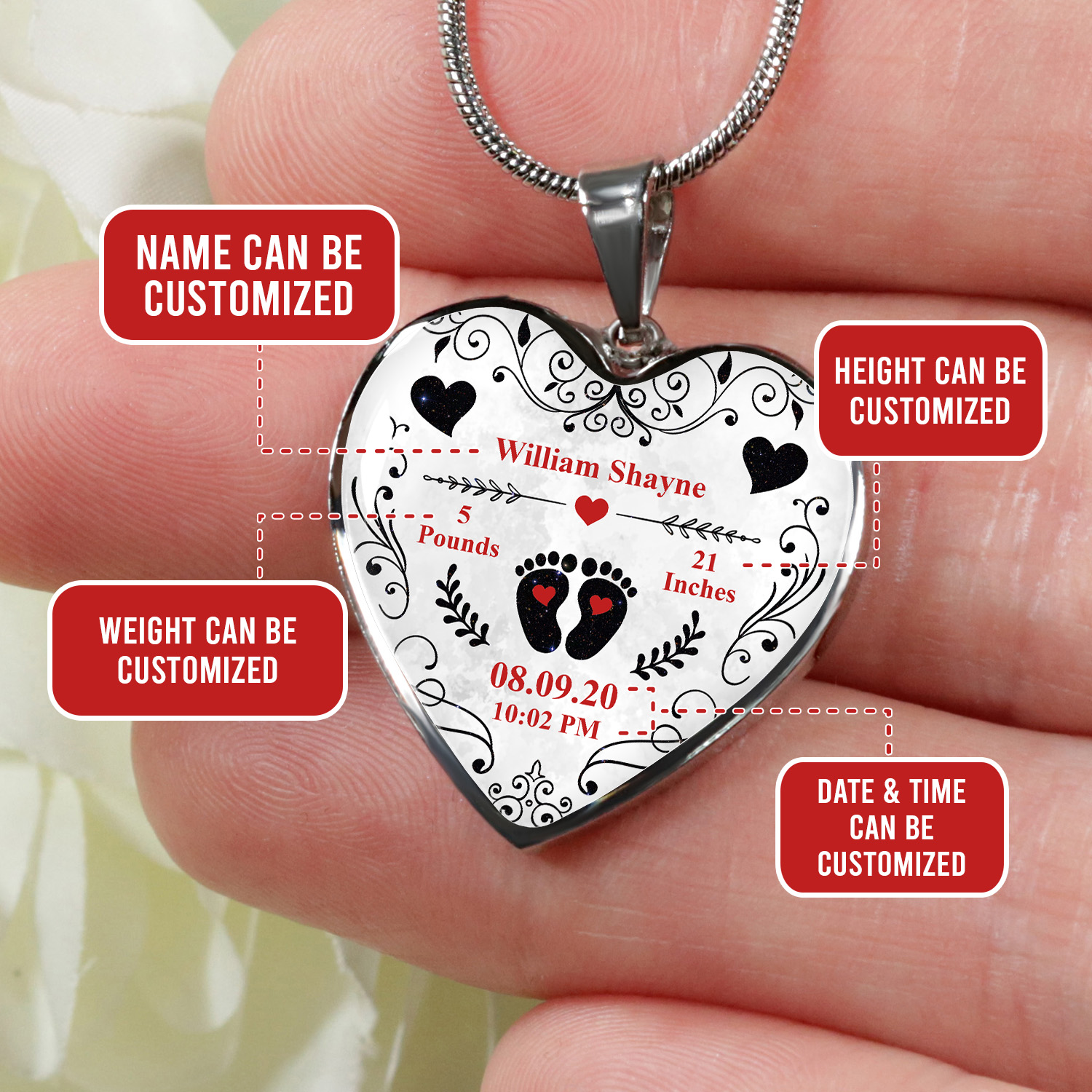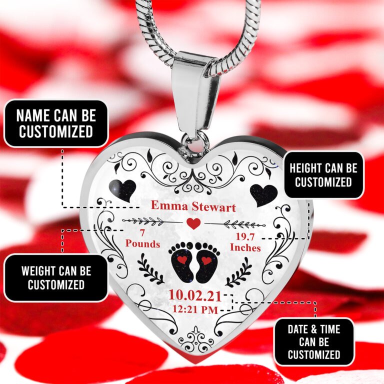Let’s Shop Personalized Baby Stats Heart Pendant Necklace – Bangle – Birth Announcement Gift!