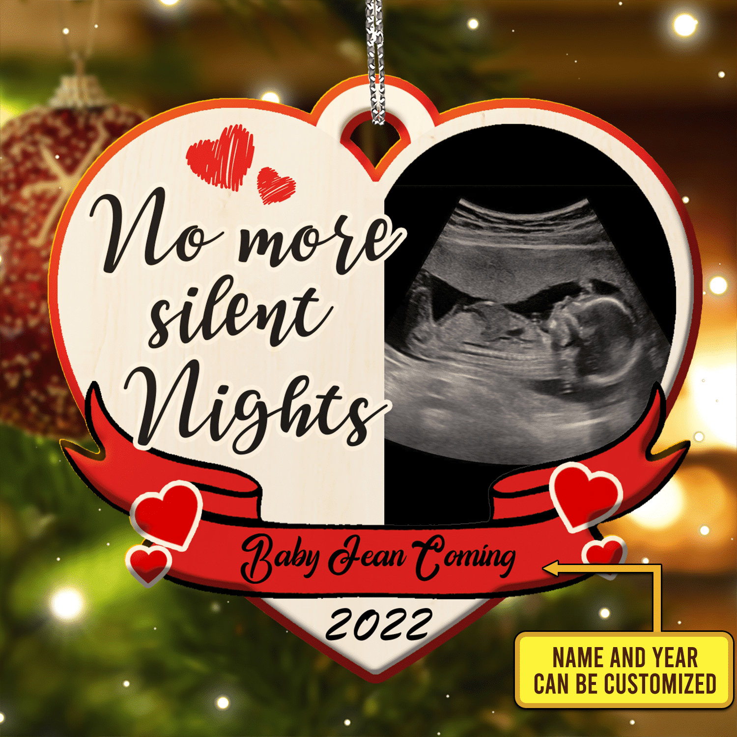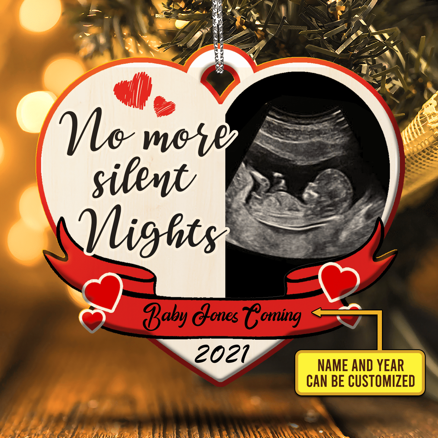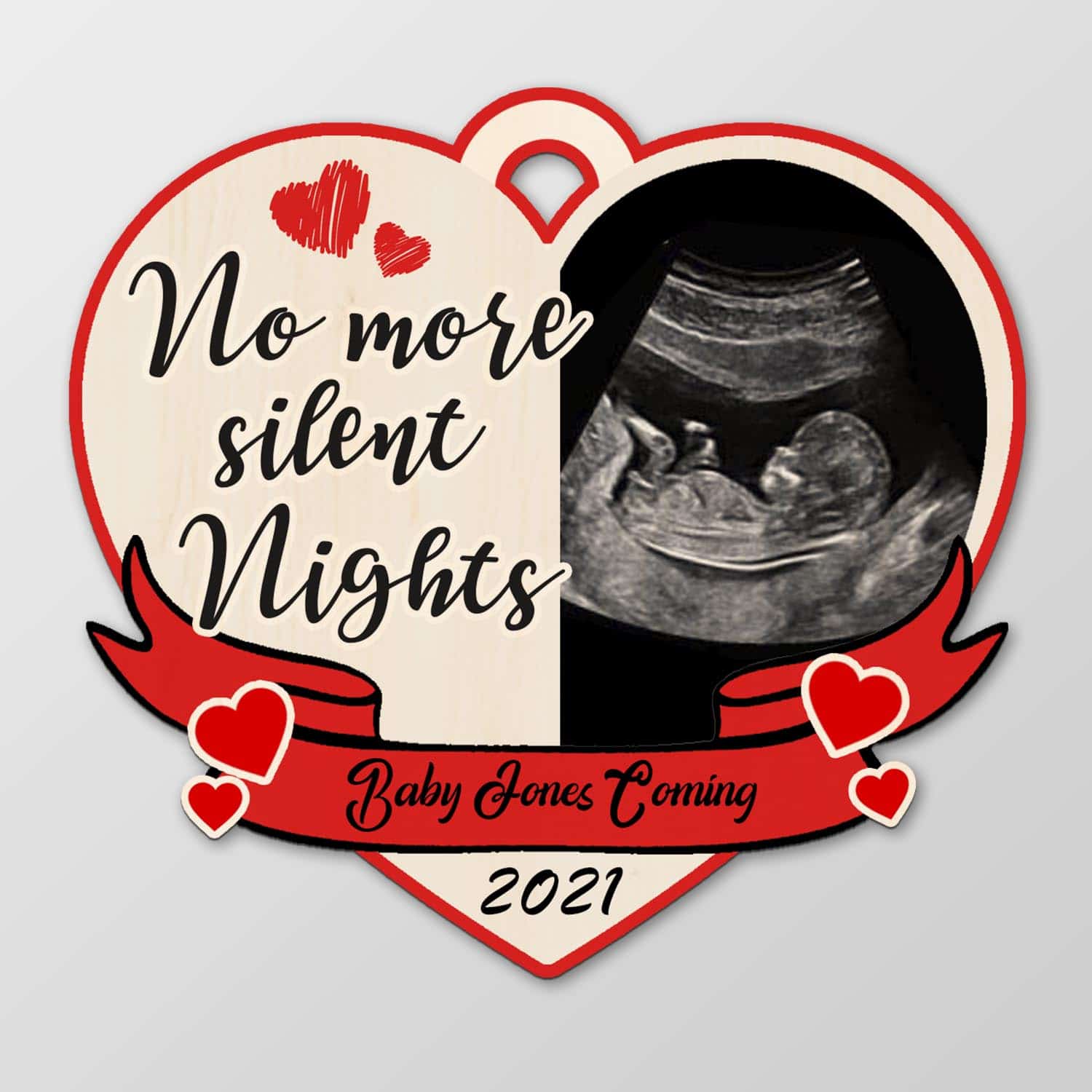 Let’s Shop Custom Photo Pregnancy Announcement Ornament No More Silent Nights Decorative Custom Shaped Wooden Christmas Ornament!