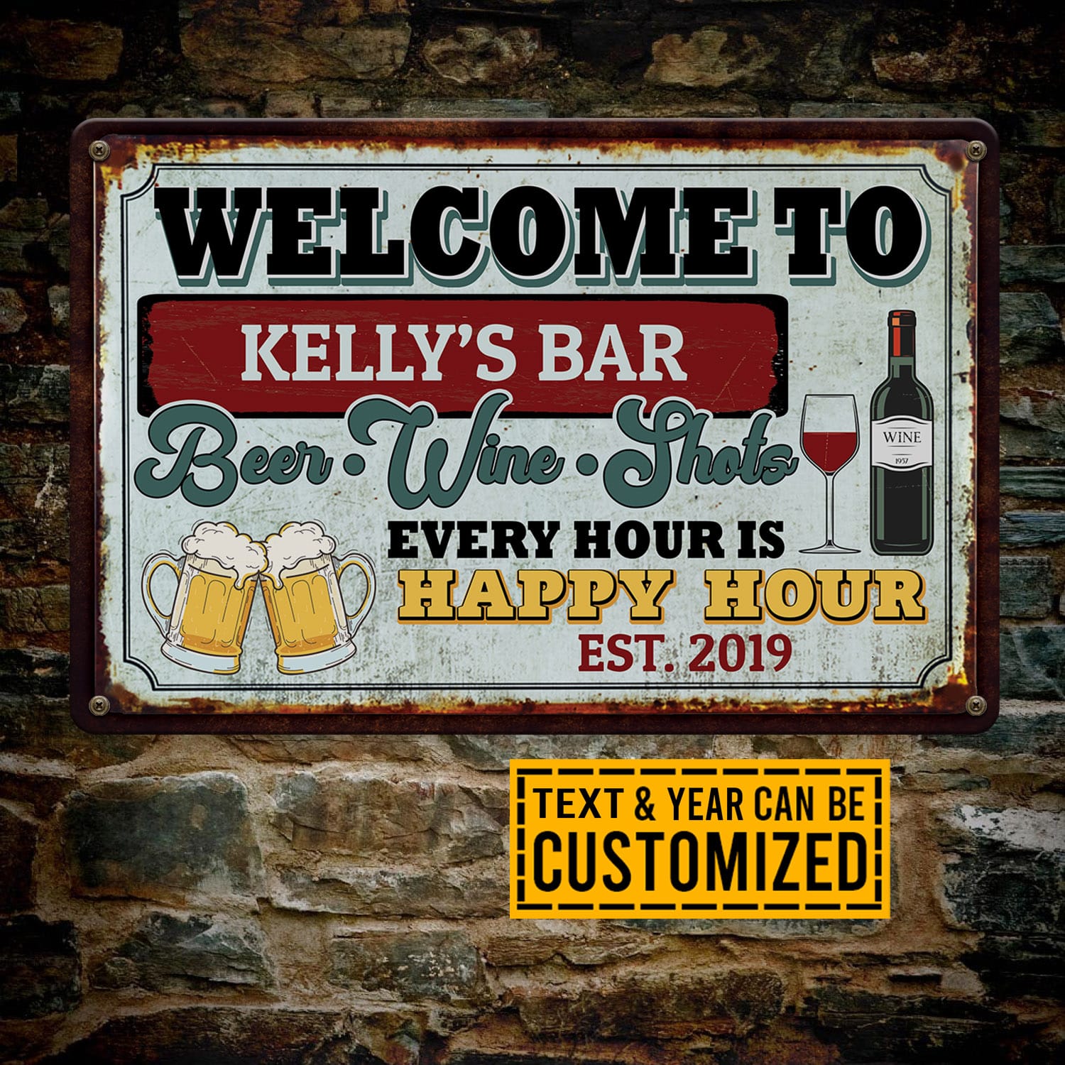 Let’s Shop Bar Sign Personalized Beer Wine Shots Every Hour Is Happy Hour Retro Decorative Metal Sign – Indoor Outdoor Decor!