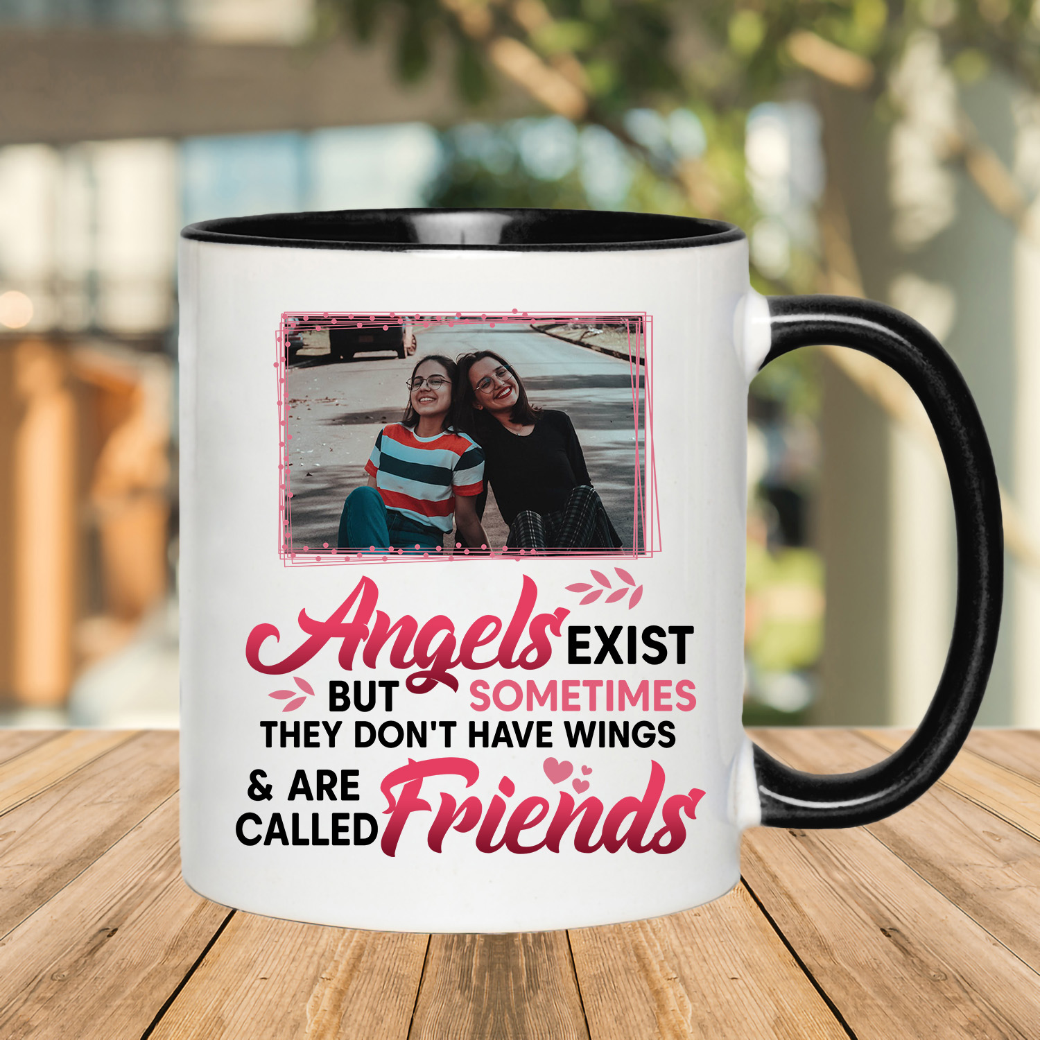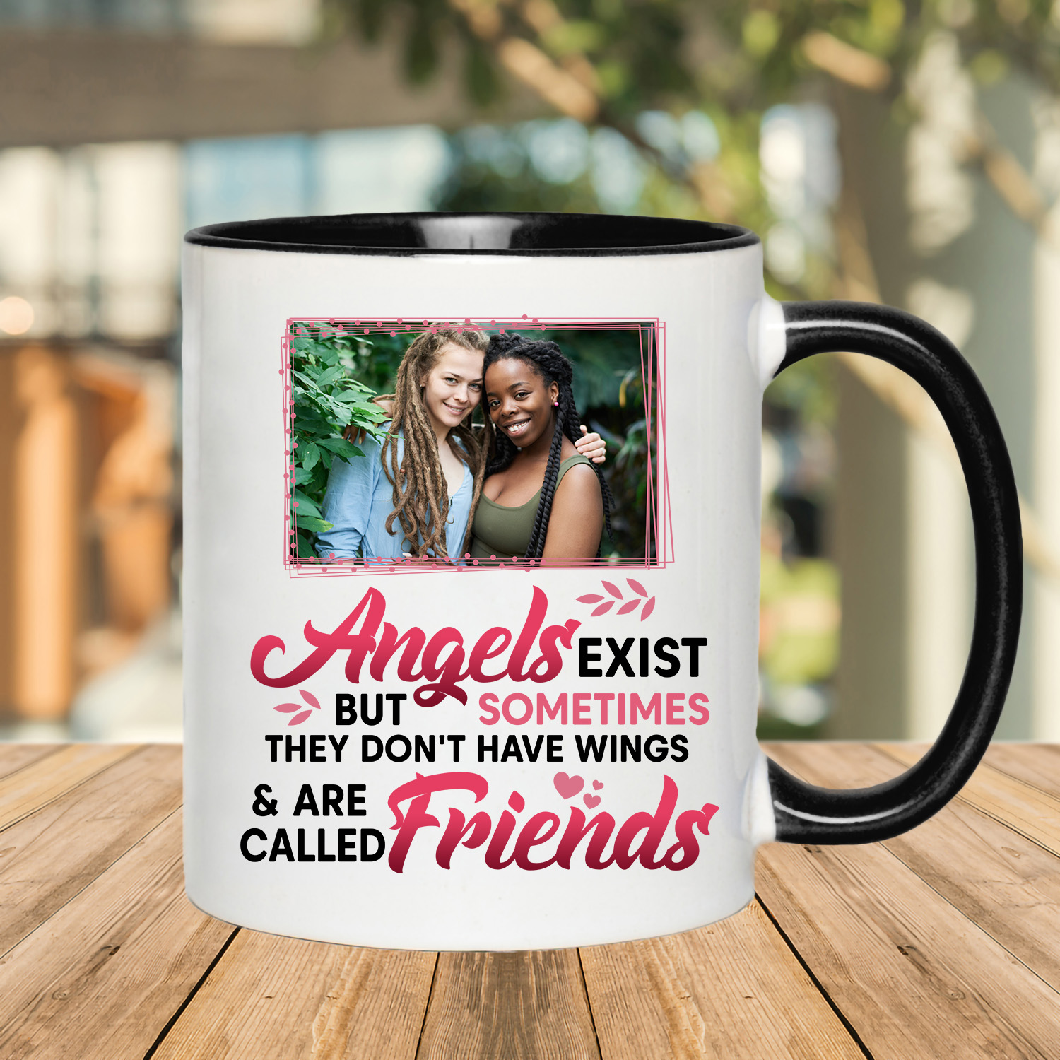 Let’s Shop Personalized Photo Angels Exist but Sometimes They Don’t Have Wings and Are Called Friends Accent Mug!