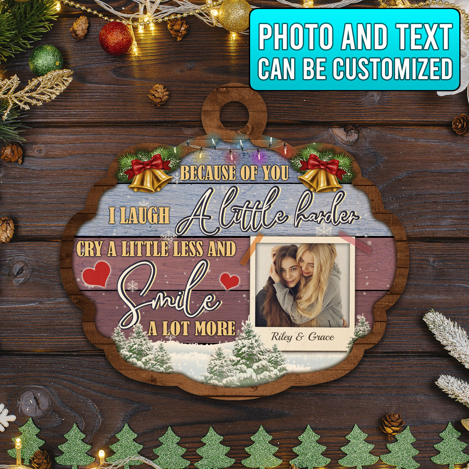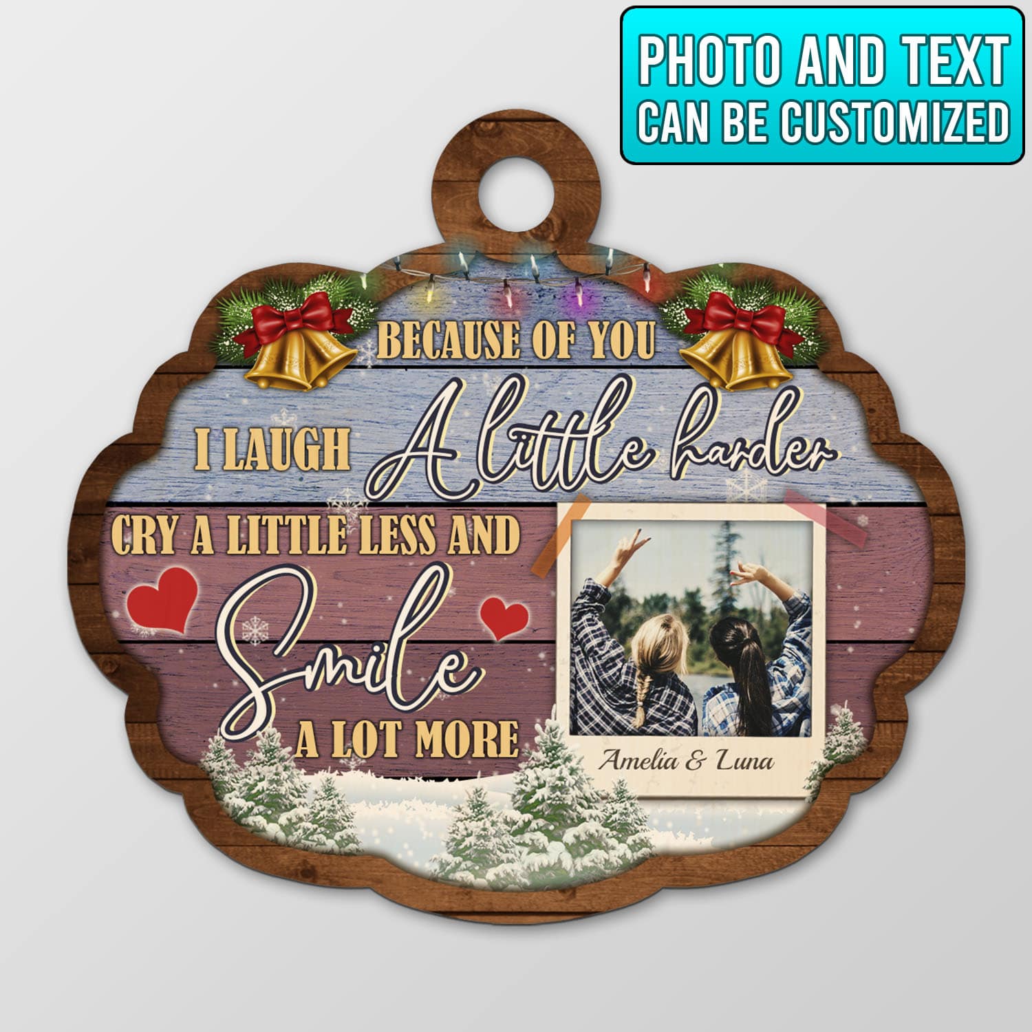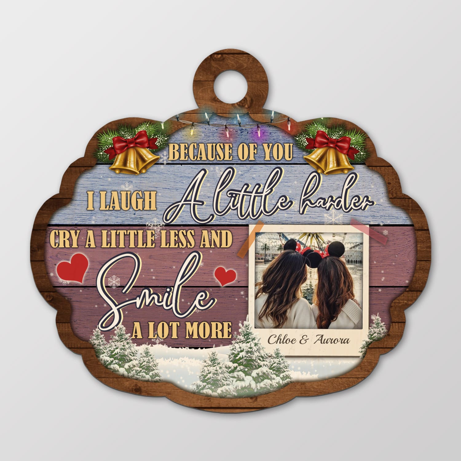 Let’s Shop Custom Photo Because Of You I Laugh A Little Harder Cry A Little Less Custom Shaped Wooden Christmas Ornament!