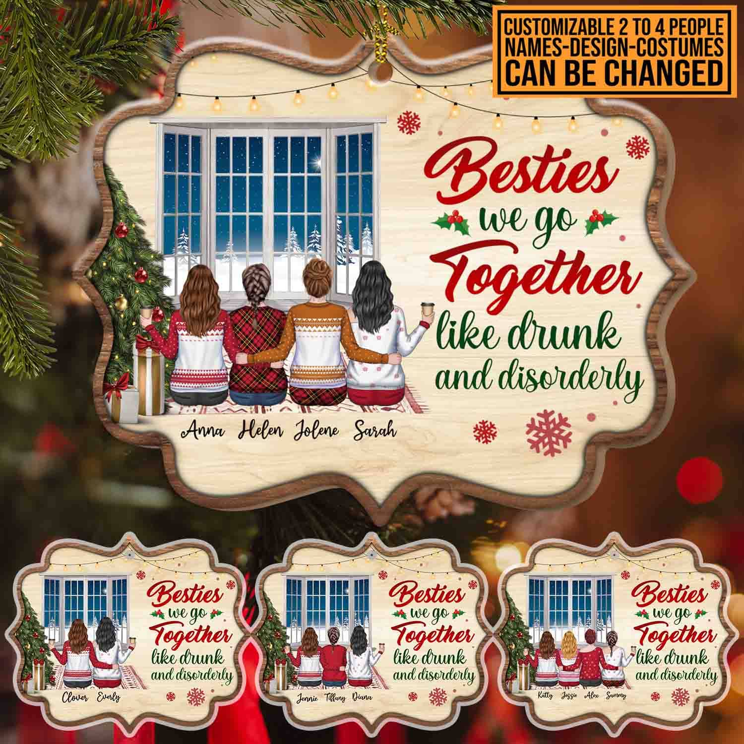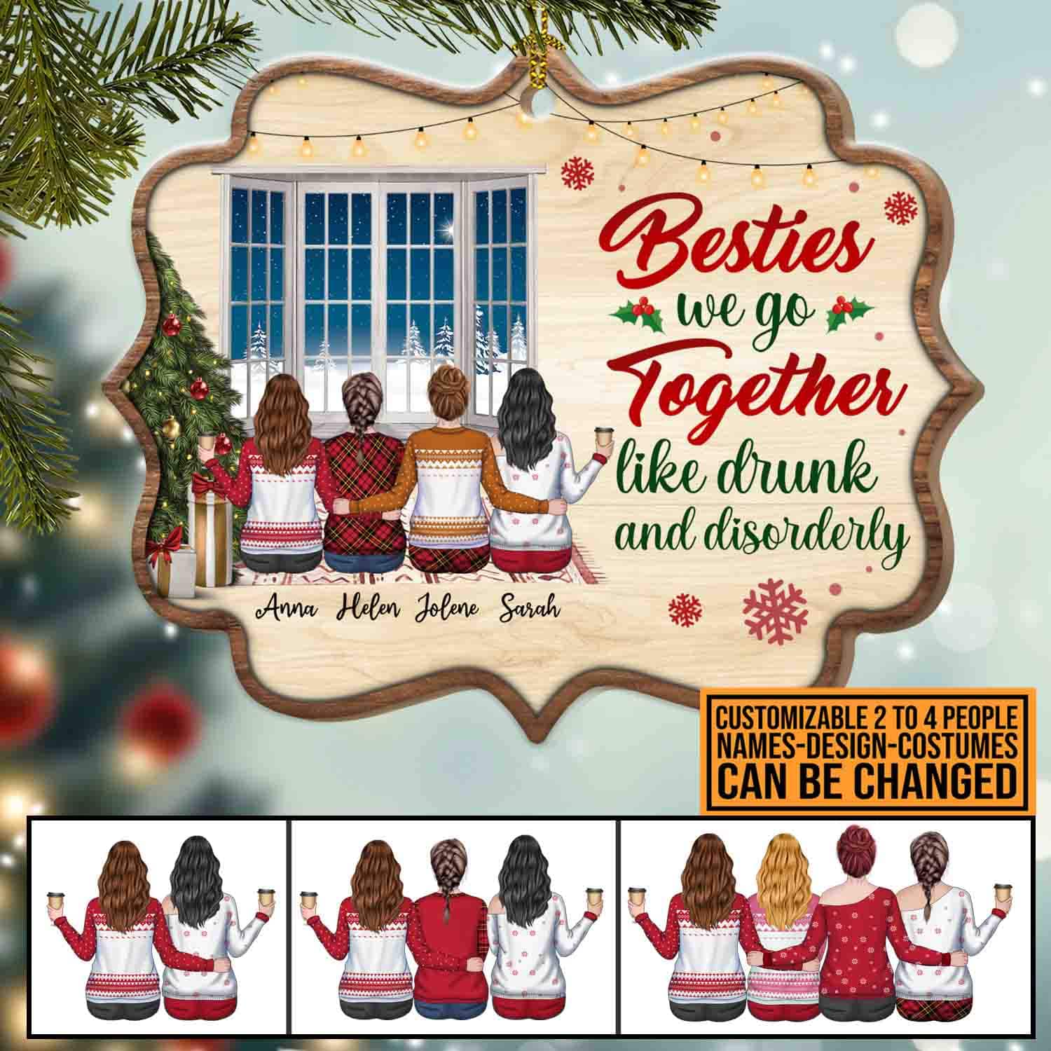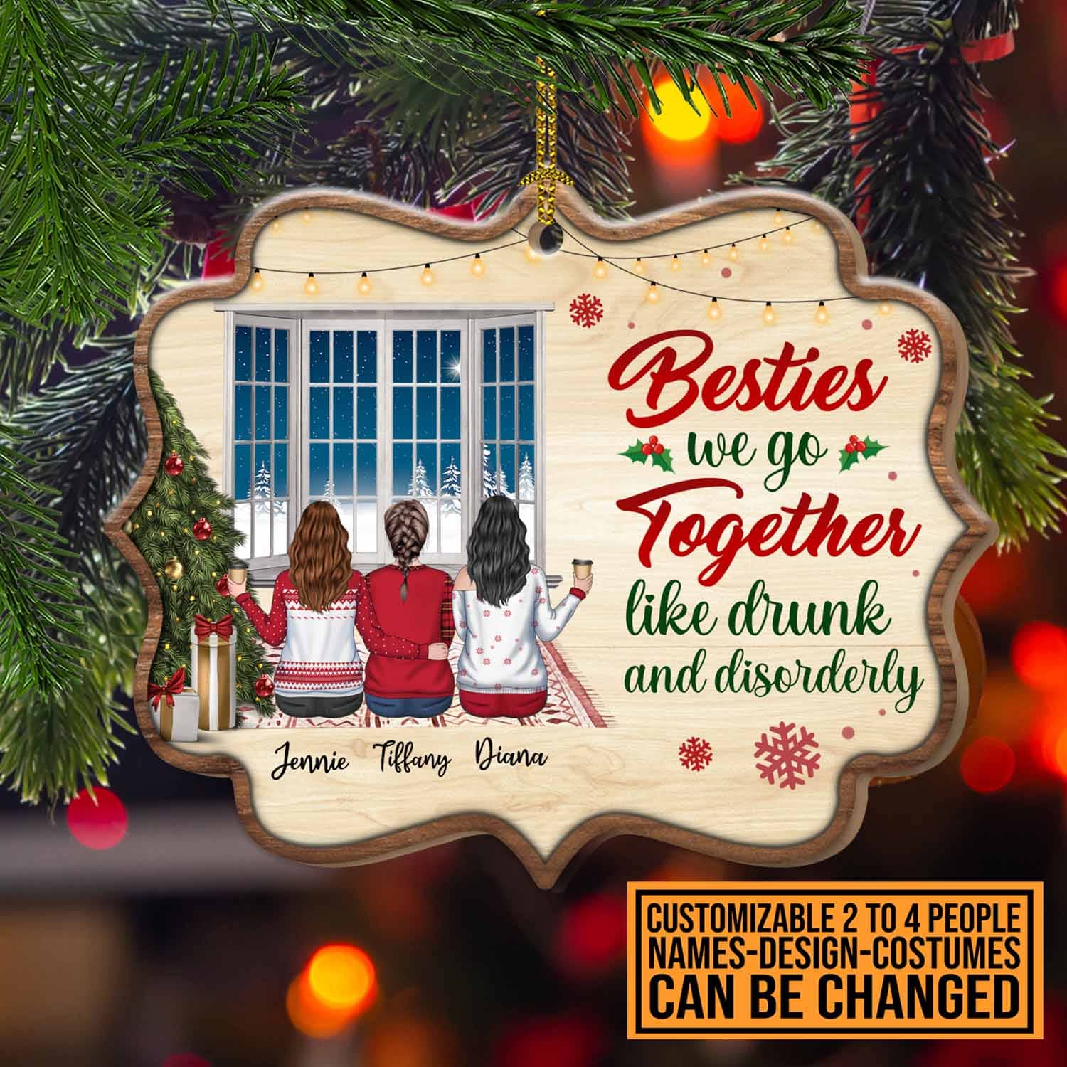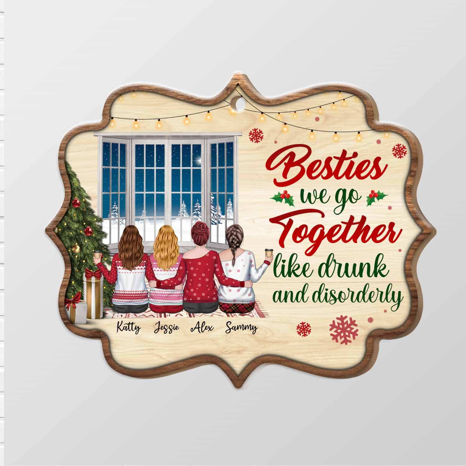 Let’s Shop Personalized Besties We Go Together Like Drunk And Disorderly Custom Shaped Wooden Christmas Ornament Keepsake!