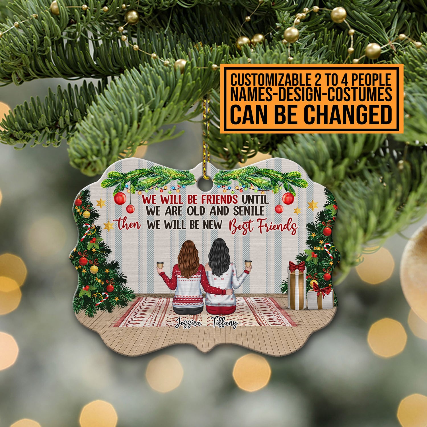 Let’s Shop Personalized Besties We Will Be Friends Until We Are Old Decorative Medallion Christmas Ornament Keepsake!