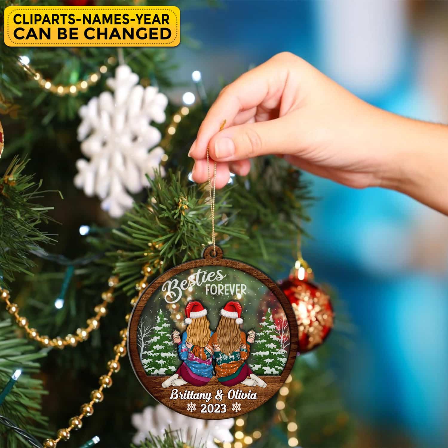Let’s Shop Custom Besties Acrylic Wood Ornament – Besties Christmas Ornaments – Xmas Keepsake!