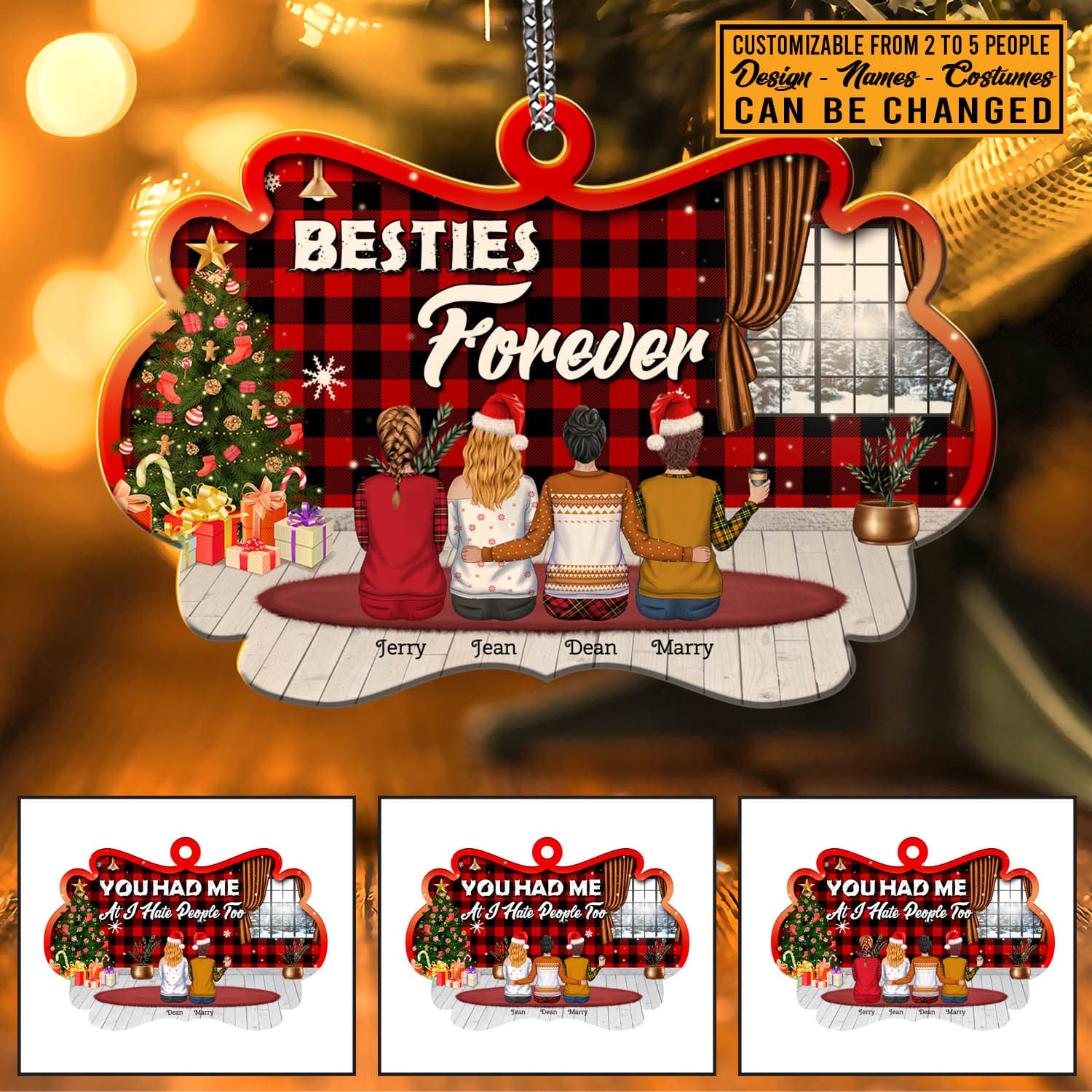 Let’s Shop Custom Design Besties Christmas Ornament Personalized Besties Forever Decorative Custom Shaped Wooden Christmas Ornament!