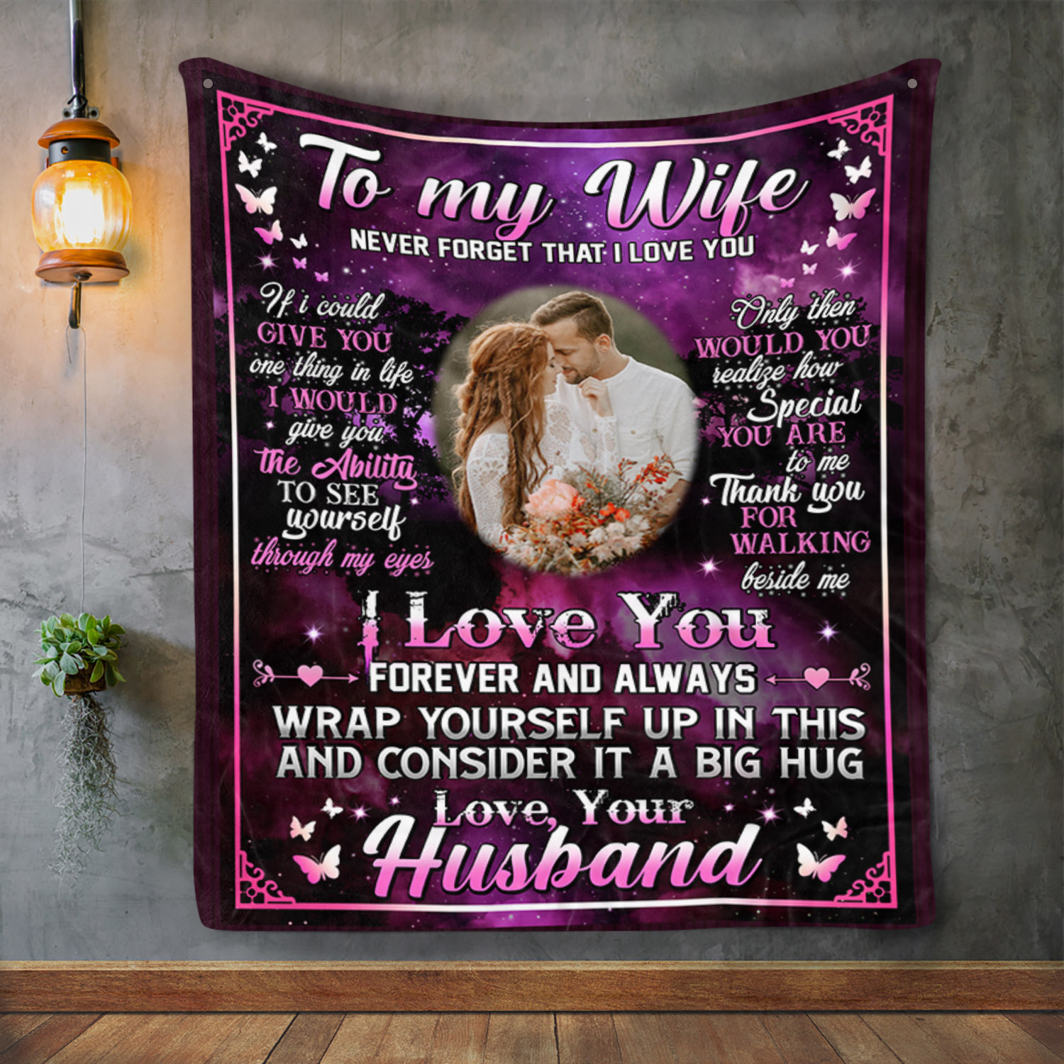 Let’s Shop Personalized Photo To My Wife Never Forget That I Love You Fleece Blanket – Sherpa Blanket!