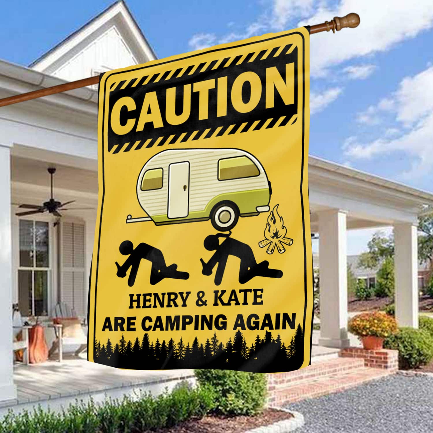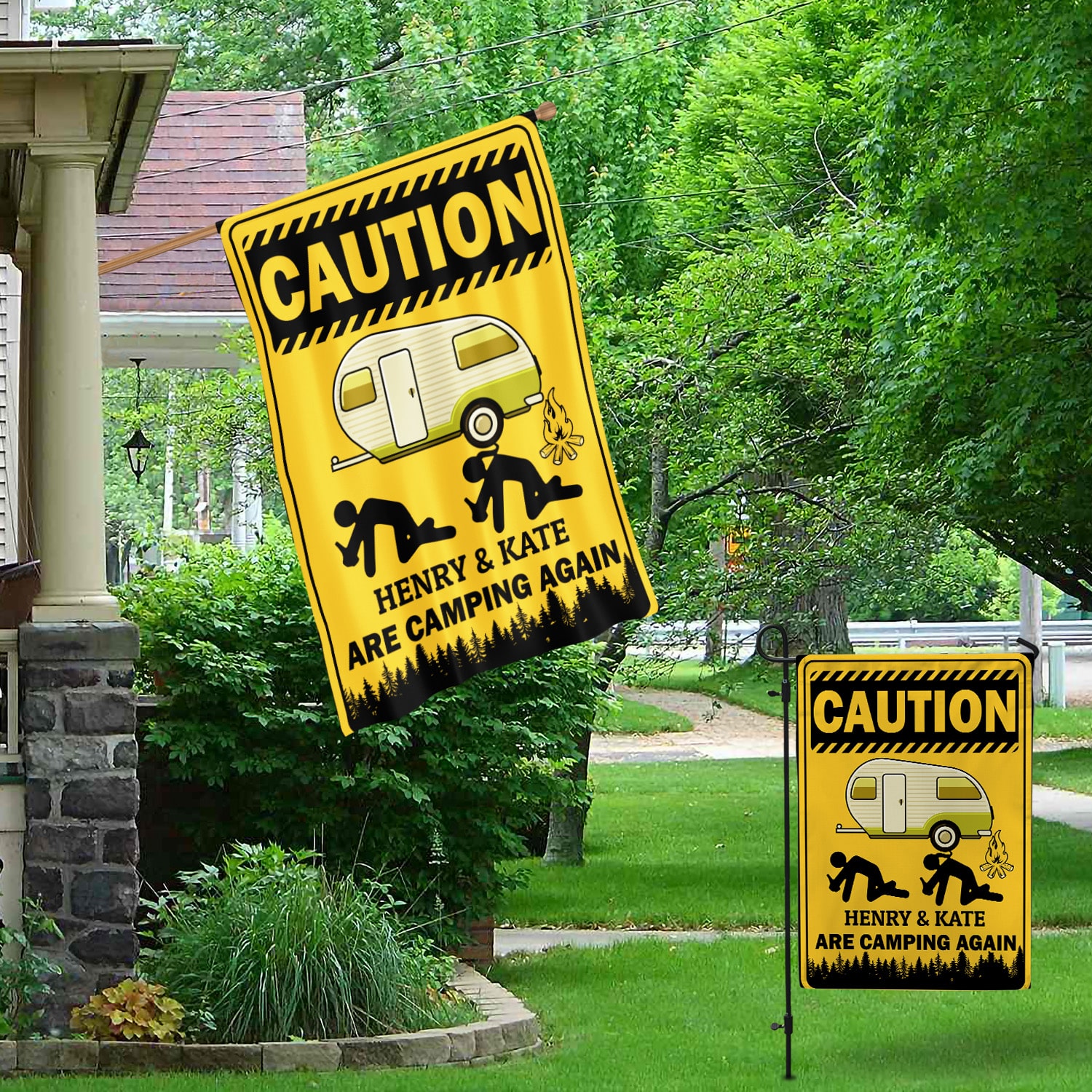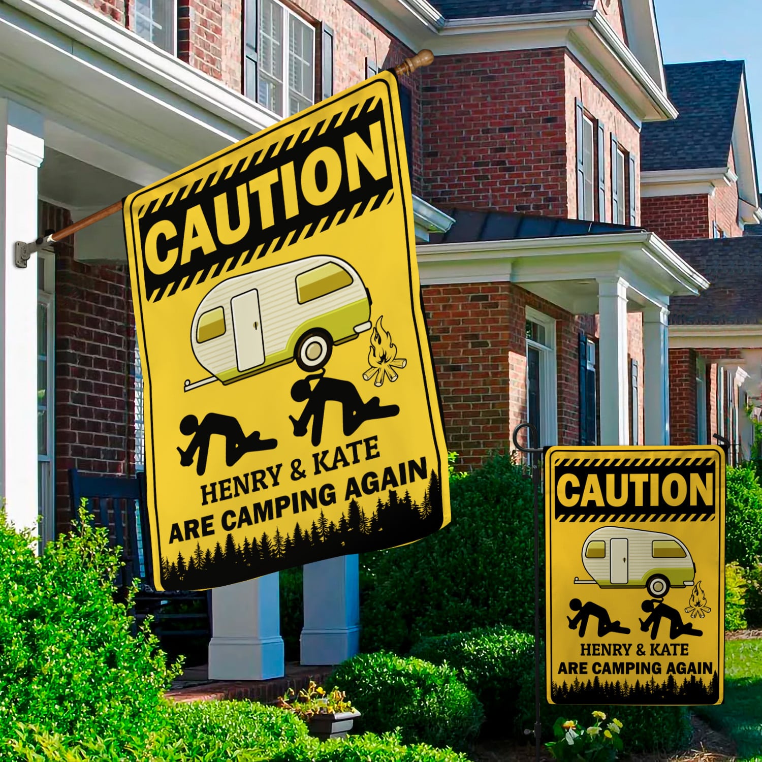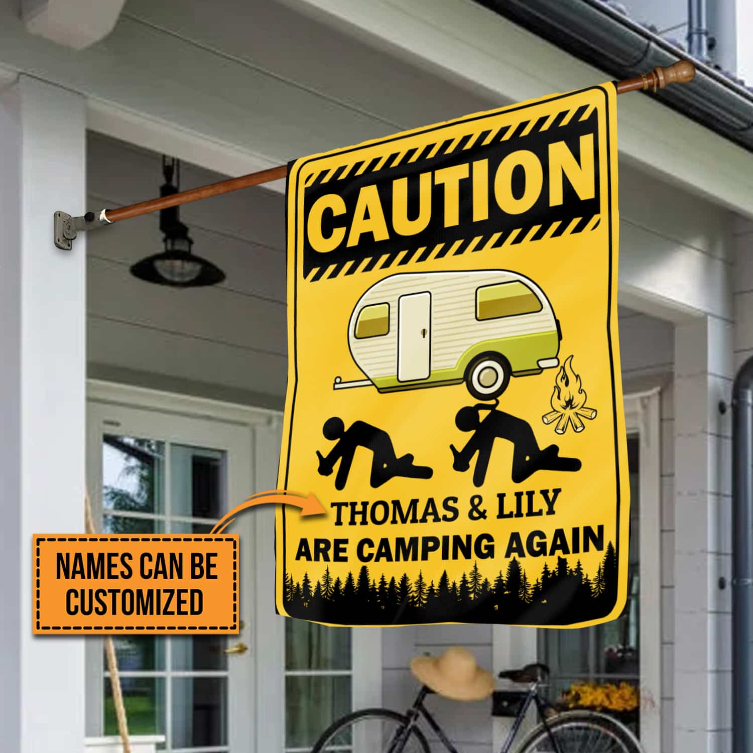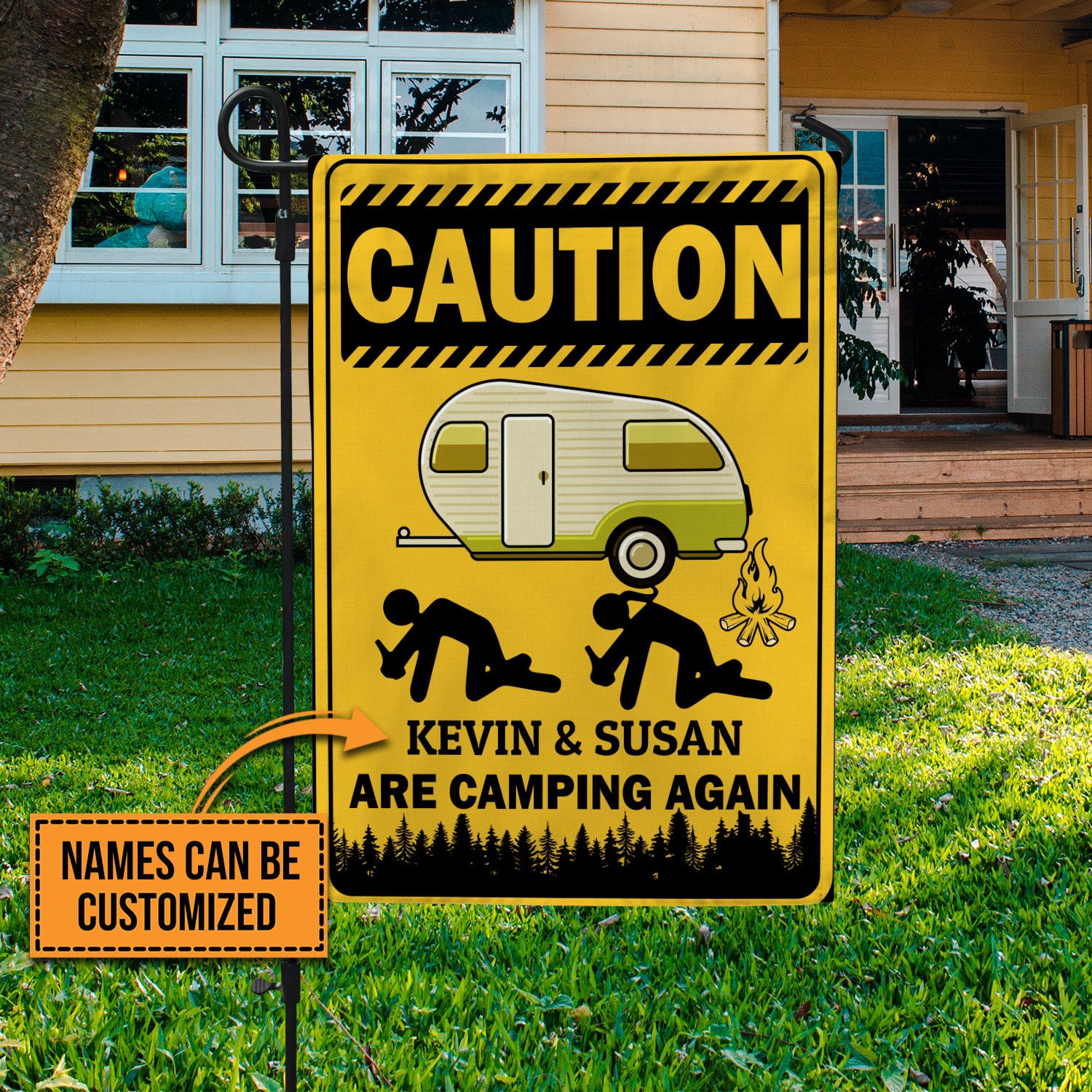 Let’s Shop Personalized Names Caution Camping Again Decorative Garden Flag – Indoor Outdoor Flag – House Flag!