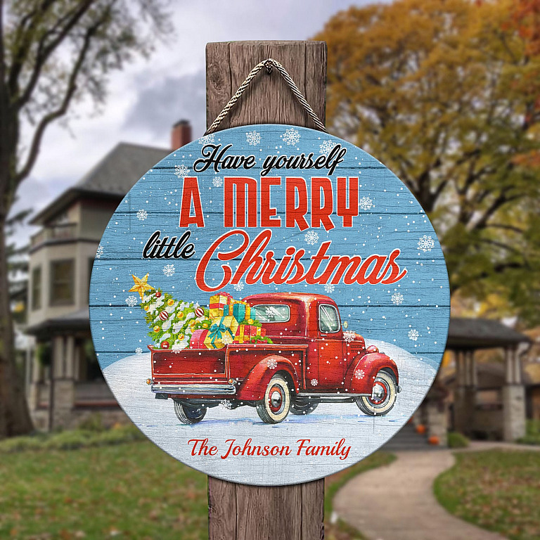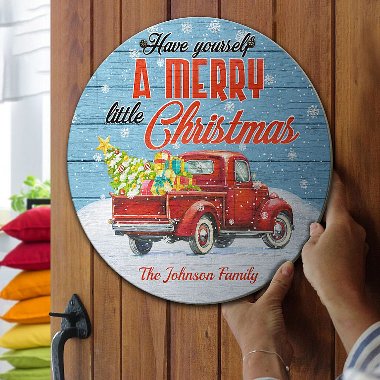 Let’s Shop Custom Christmas Sign Have Yourself a Merry Little Christmas Decorative Circle Wooden Door Sign – Front Porch Sign!