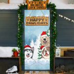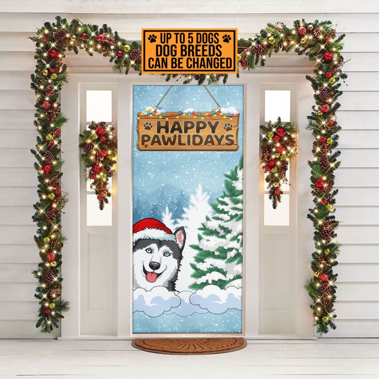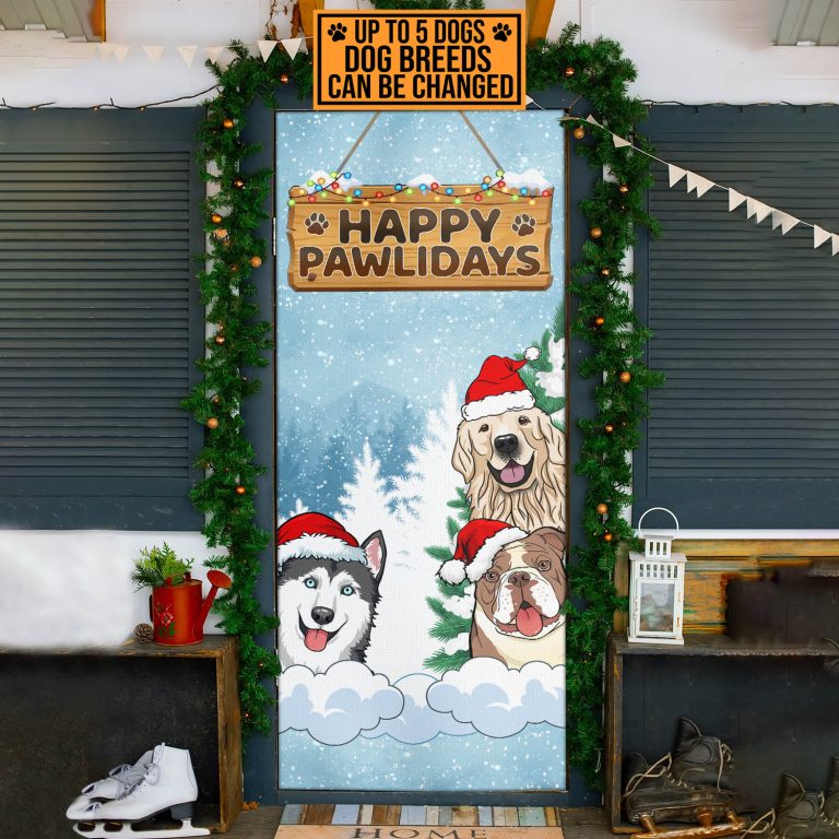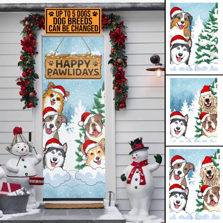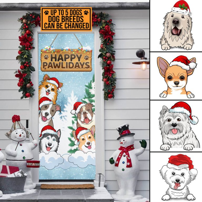 Let’s Shop Happy Pawlidays Personalized Dog Breeds Door Cover – Custom Christmas Peeking Dogs Decorative Door Banner!
