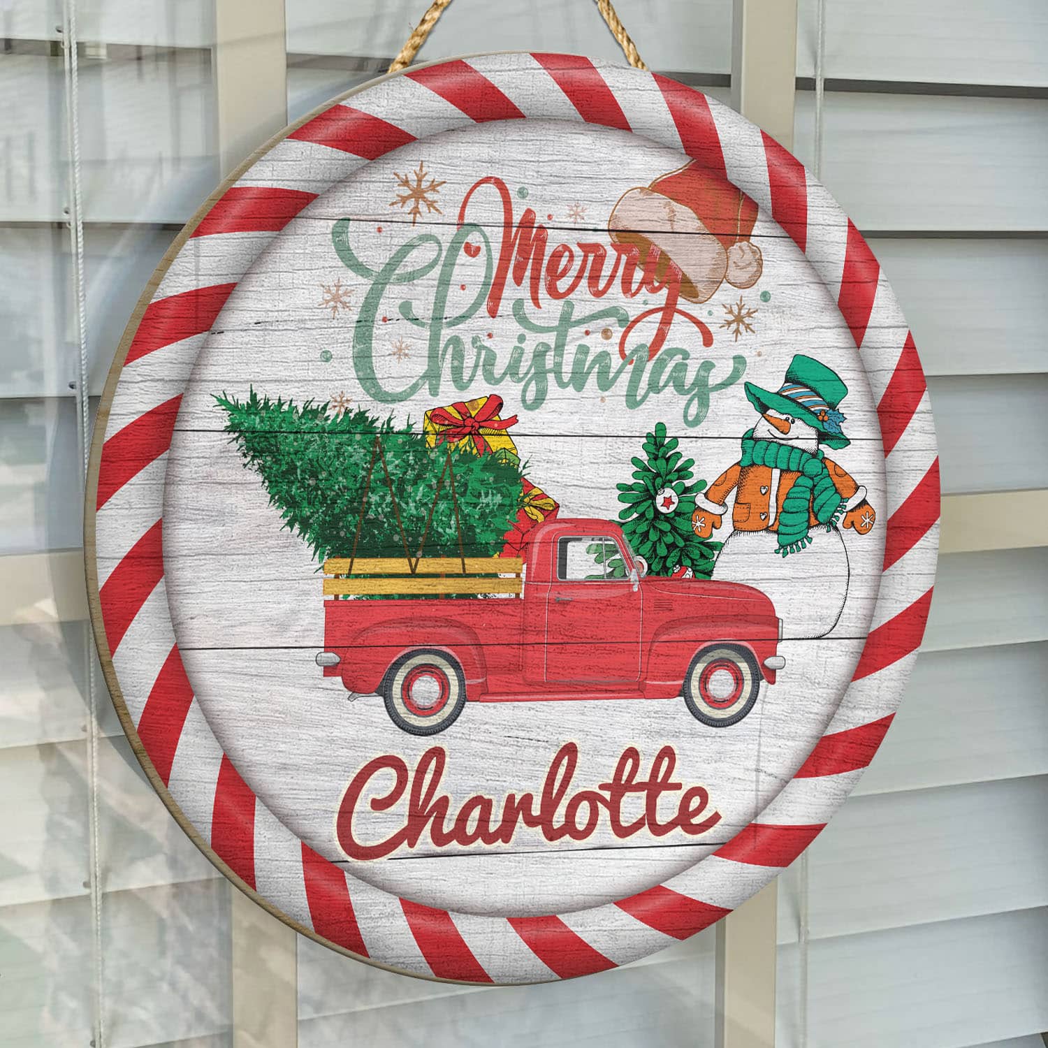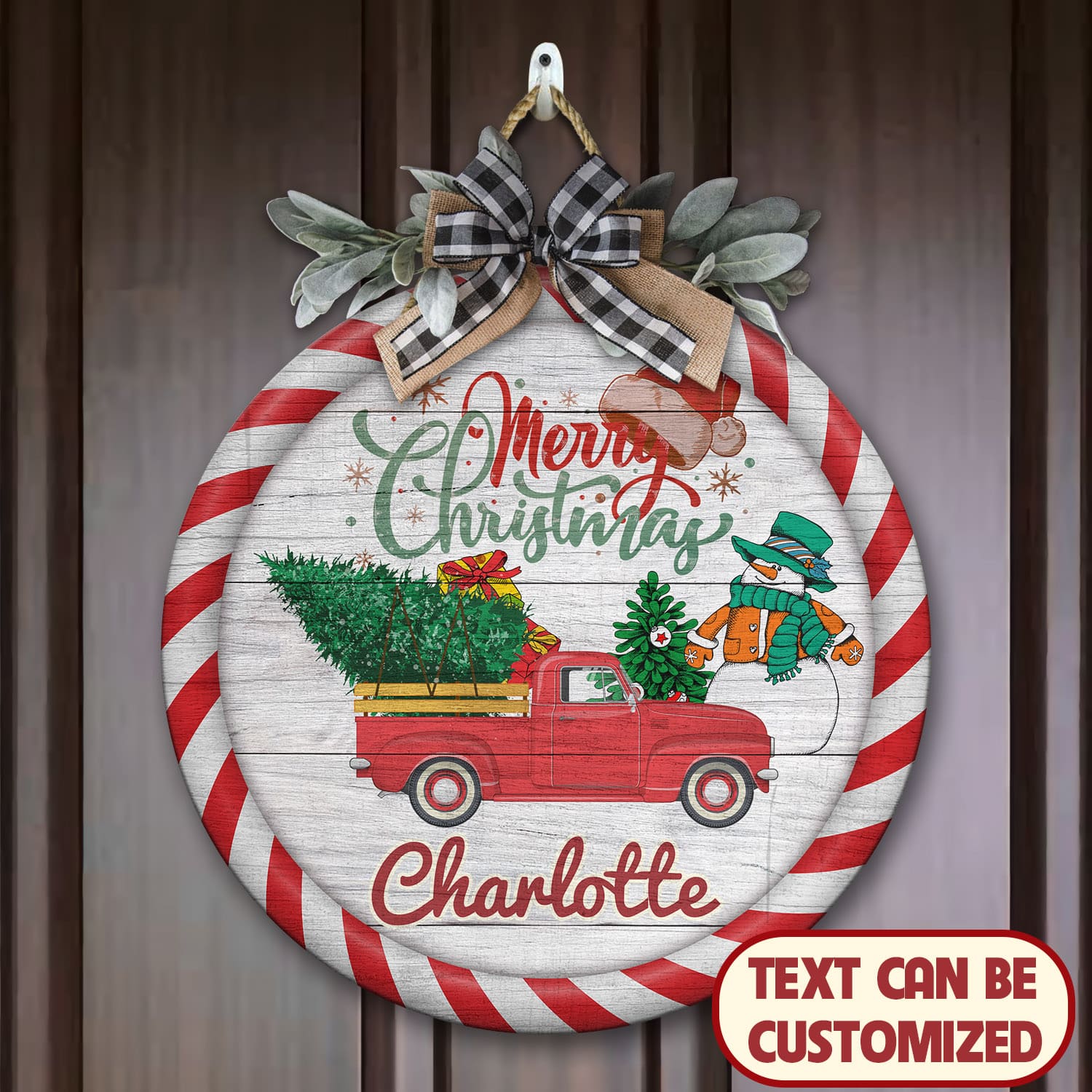 Let’s Shop Personalized Christmas Signs Merry Christmas Door Hanger Decorative Circle Wooden Door Sign – Front Porch Sign!