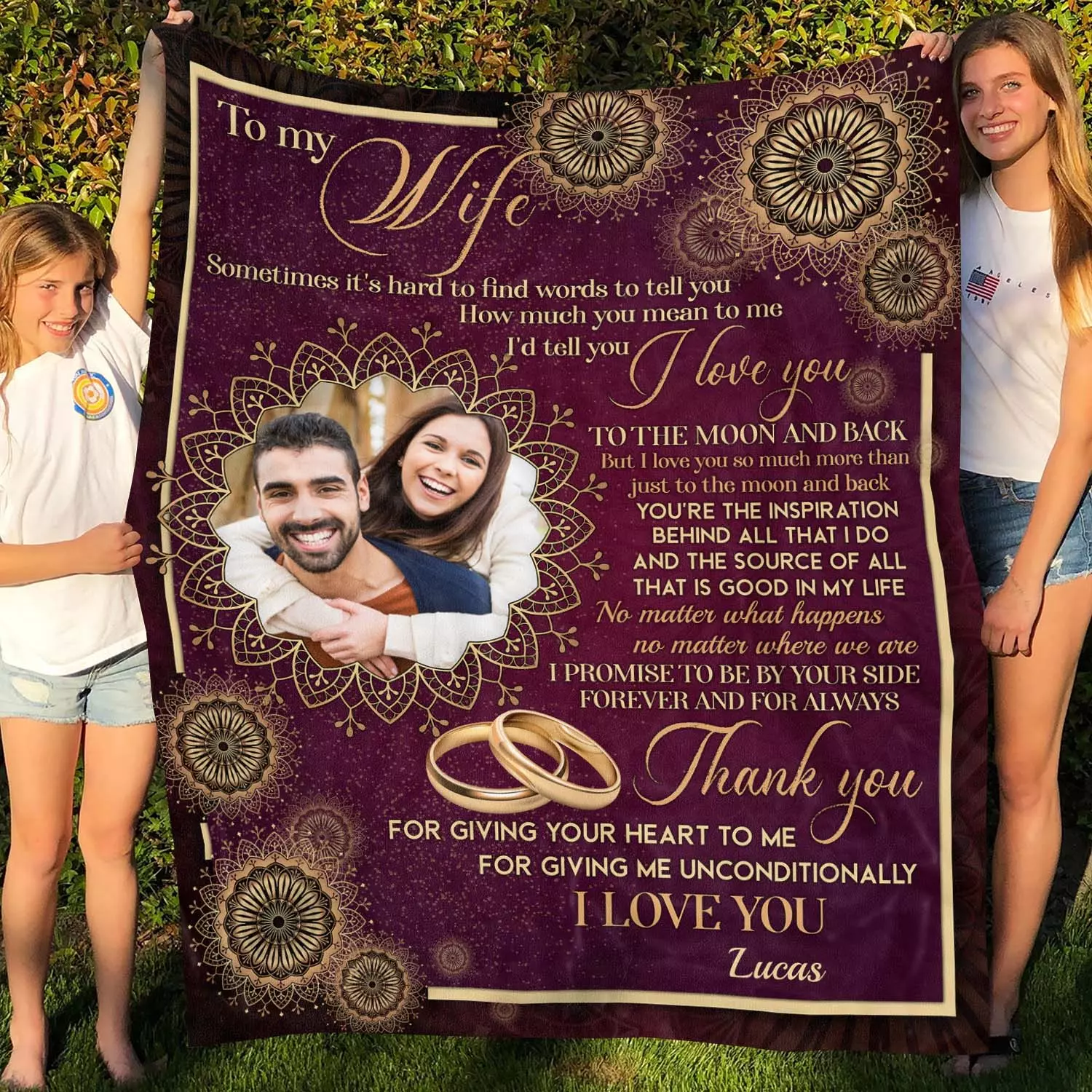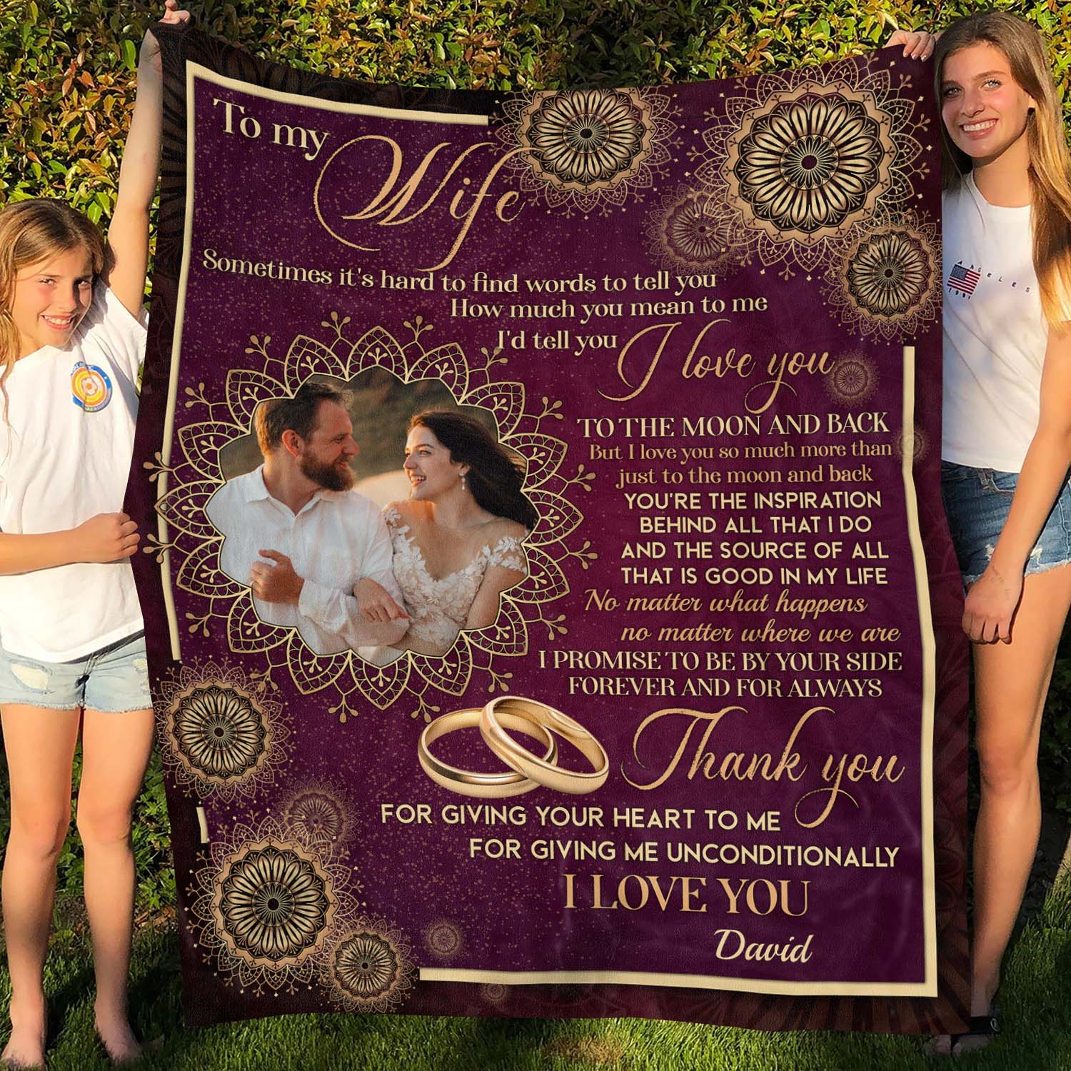 Let’s Shop Personalized Photo Husband to My Wife Sometimes It’s Hard to Find Words Tell You Fleece Blanket – Mink Blanket!