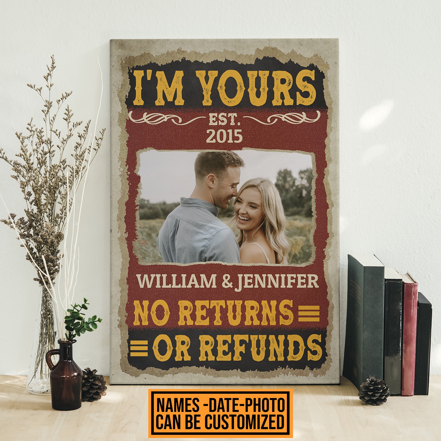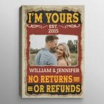 Let’s Shop Personalized Photo I’m Yours No Returns Or Refunds Couple Framed Canvas Prints – Unframed Poster!