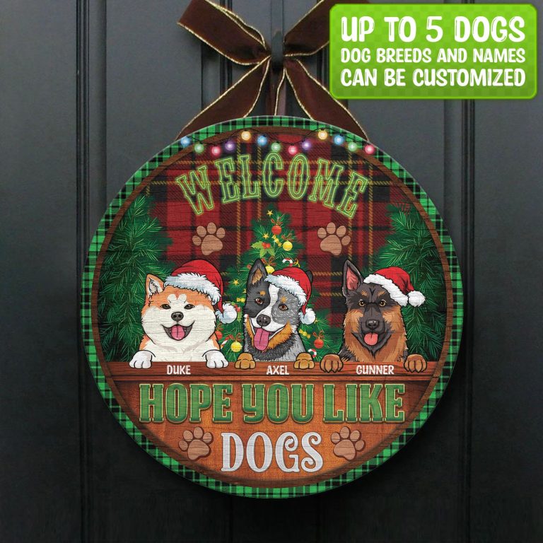 Are you spending too much time to find creative merchandise for you or suitable & special gifts for your mommy, your daddy, your son, your daughter, your children, your friends or someone you love? The struggle is over because we have various Custom Dog Breeds Sign, Dog Breeds Christmas Sign, Welcome Hope You Like Dog, Welcome Hope You Like Dogs, Personalized Dog Door Hanger, Hope You Like Dog Sign, Dog Welcome Sign, Custom Dog Sign, Dog Round Sign, Front Door Decor which will make perfect presents for your beloveds. In order to make your present stand out, we have created lots of unique and awesome customized photo gifts & personalized designs.
