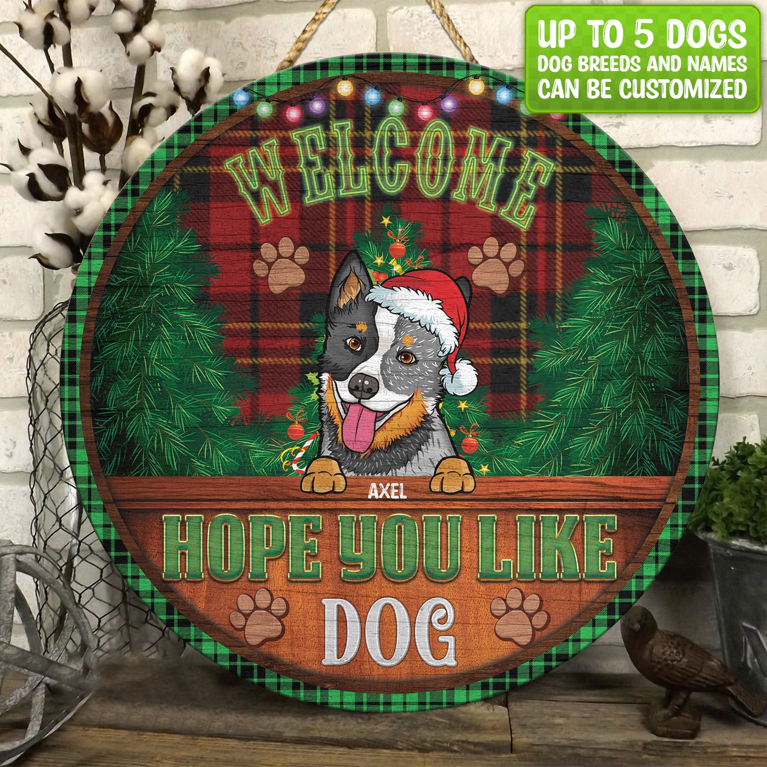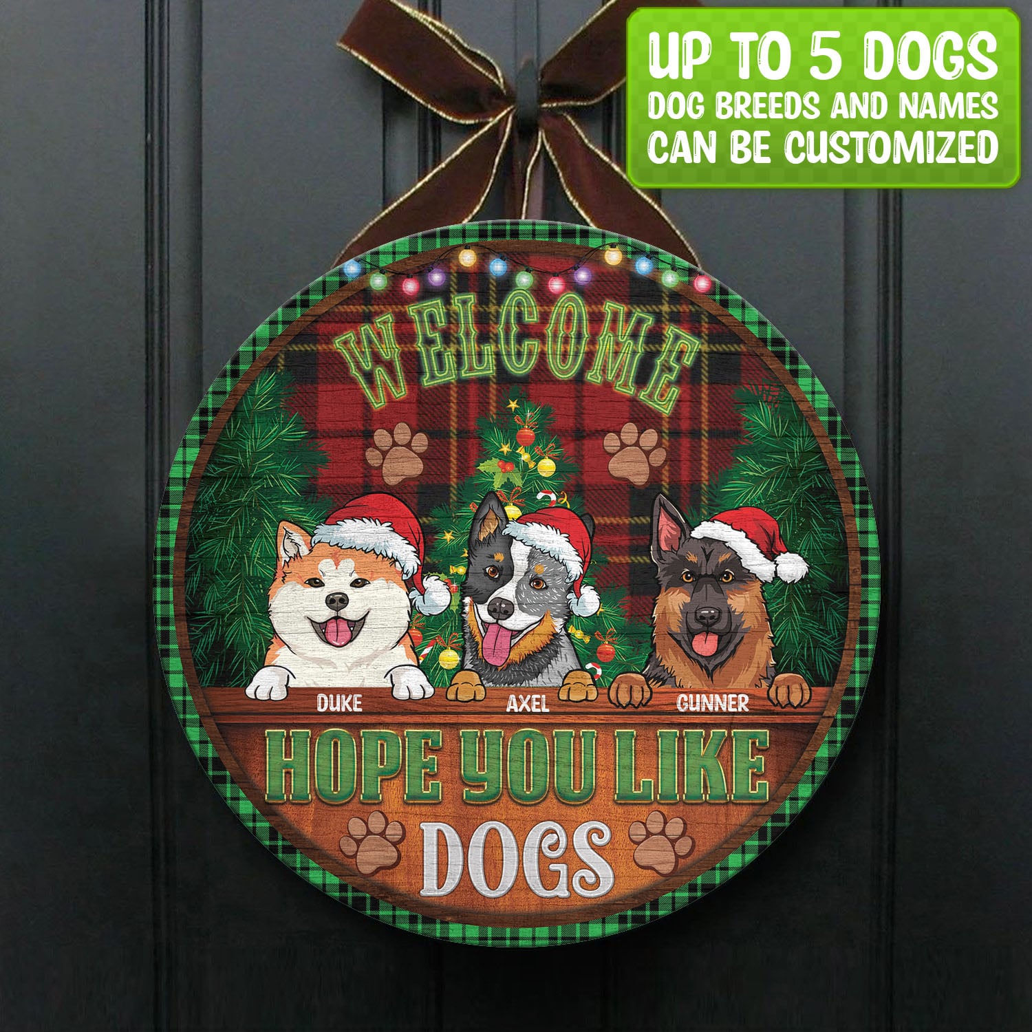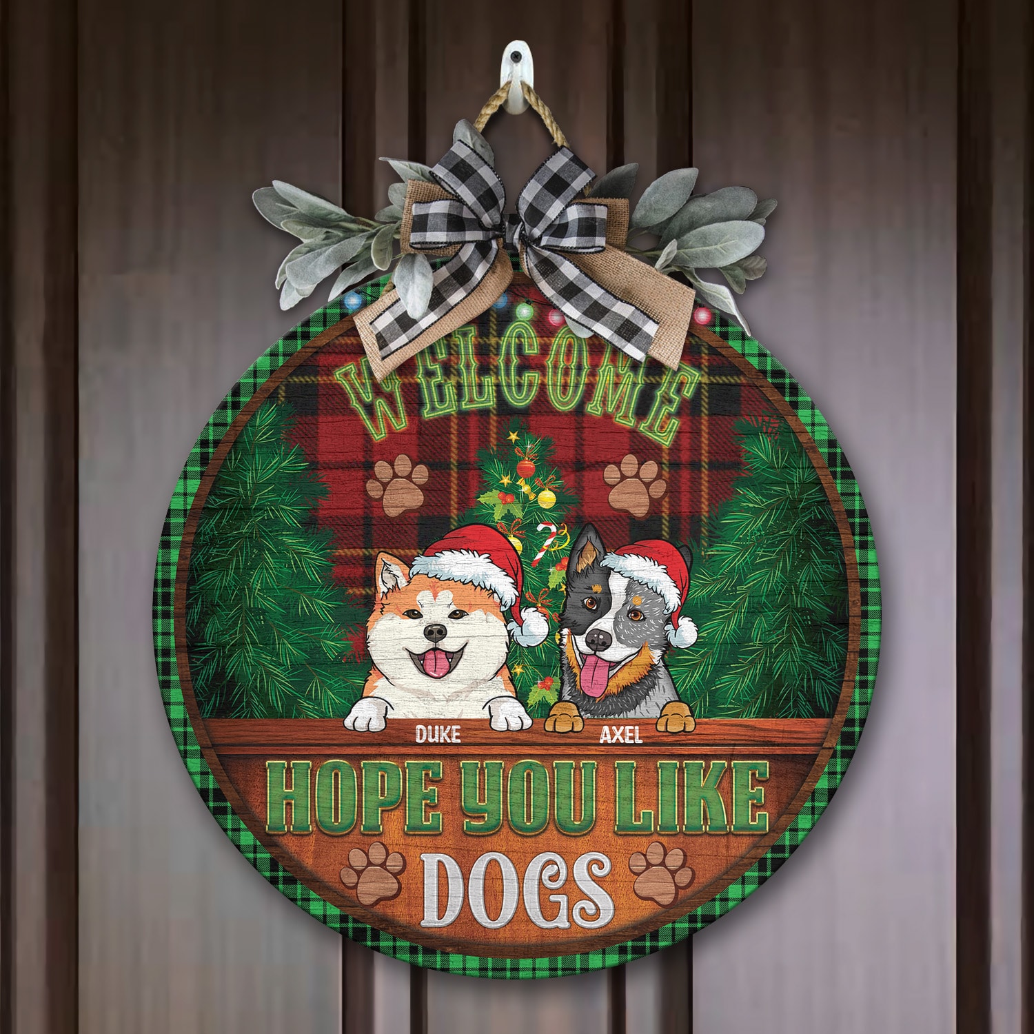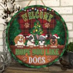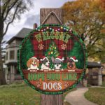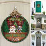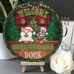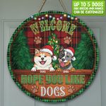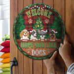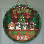 Let’s Shop Custom Dog Breeds Christmas Sign Welcome Hope You Like Dog Decorative Circle Wooden Door Sign – Front Porch Sign!