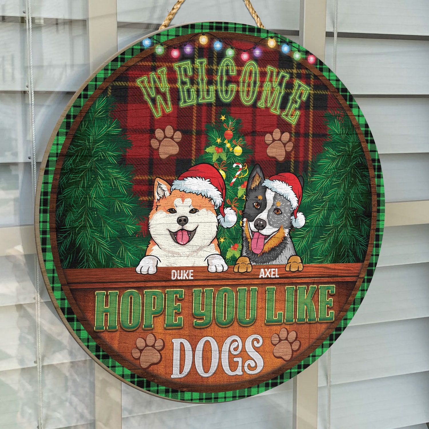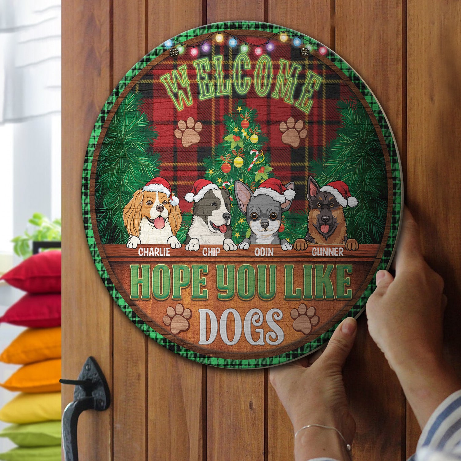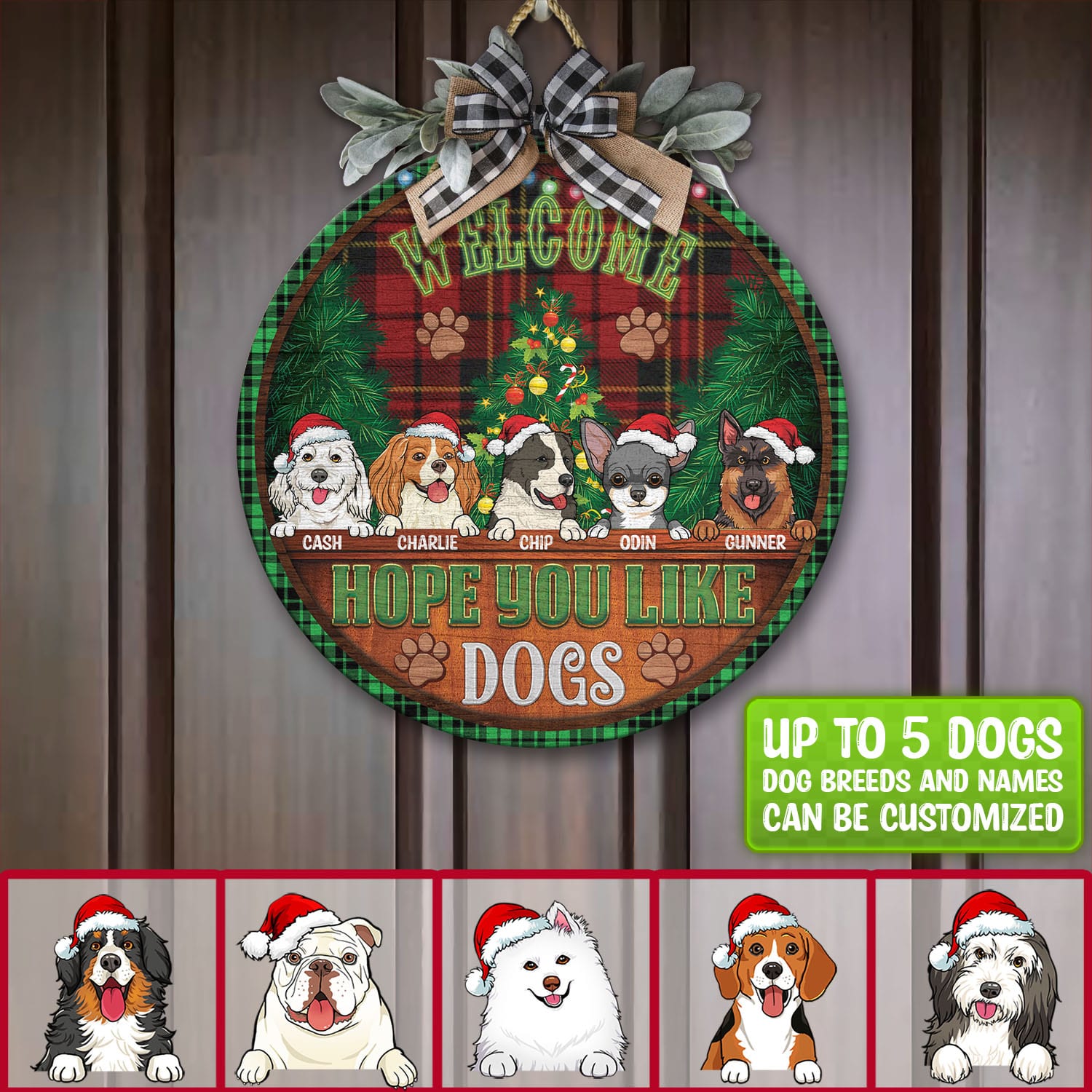 Let’s Shop Custom Dog Breeds Christmas Sign Welcome Hope You Like Dog Decorative Circle Wooden Door Sign – Front Porch Sign!
