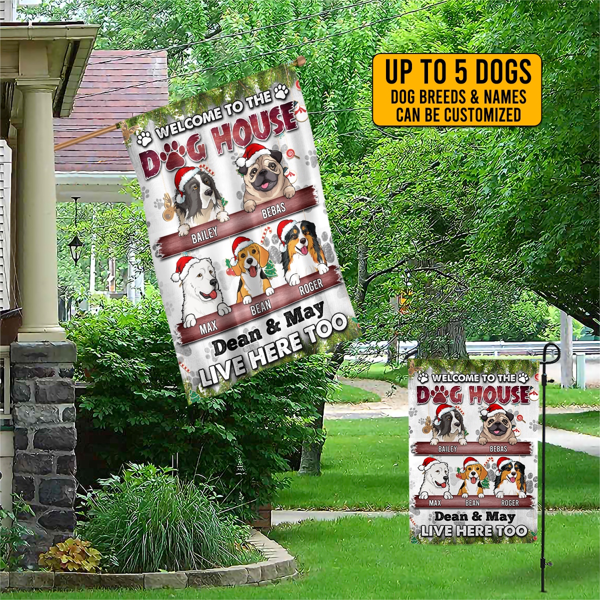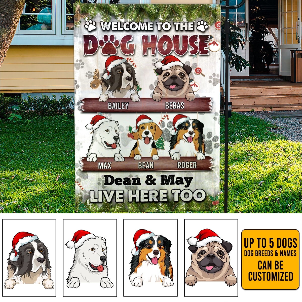 Let’s Shop Custom Dog Breeds Christmas Welcome to The Doghouse It’s a Ruff Joint Outdoor Indoor Decorative Garden Flag – House Flag!