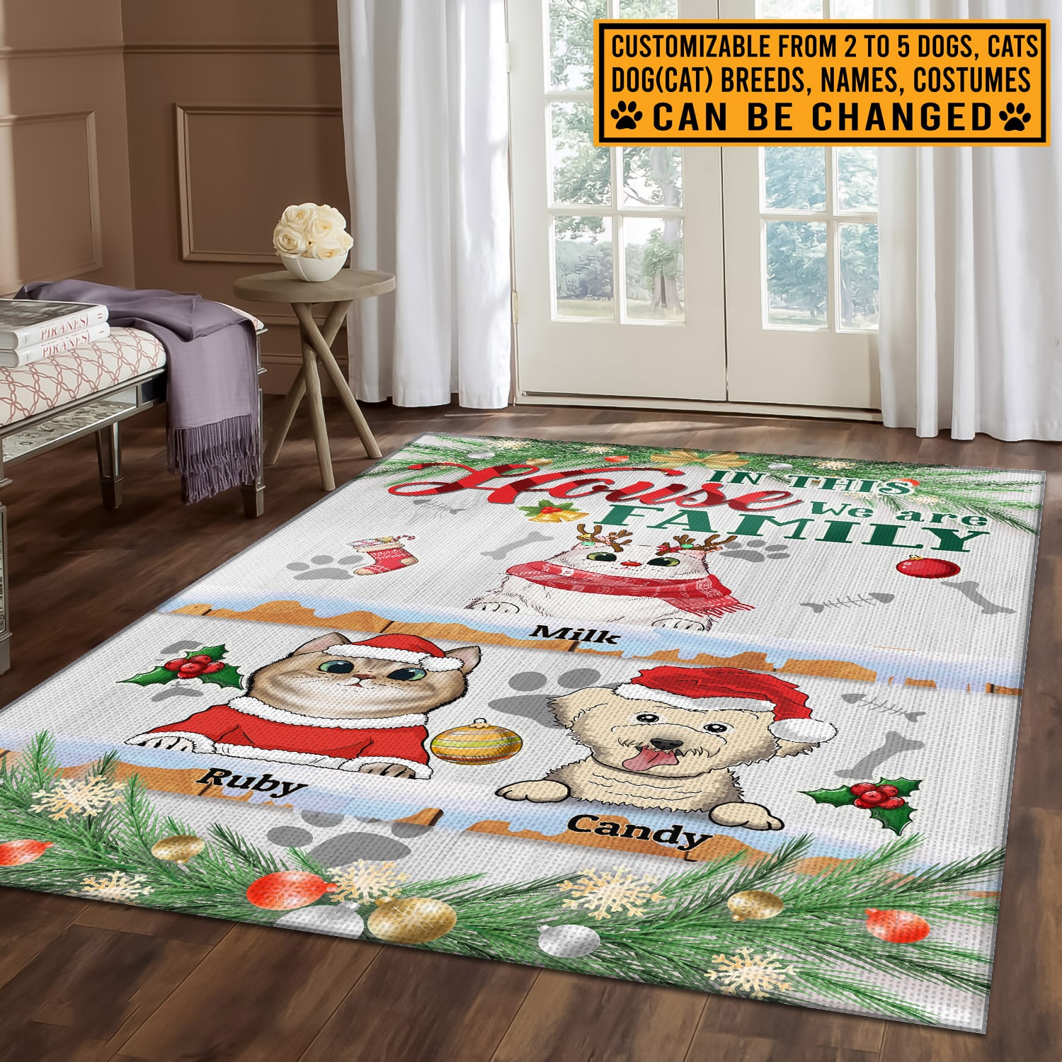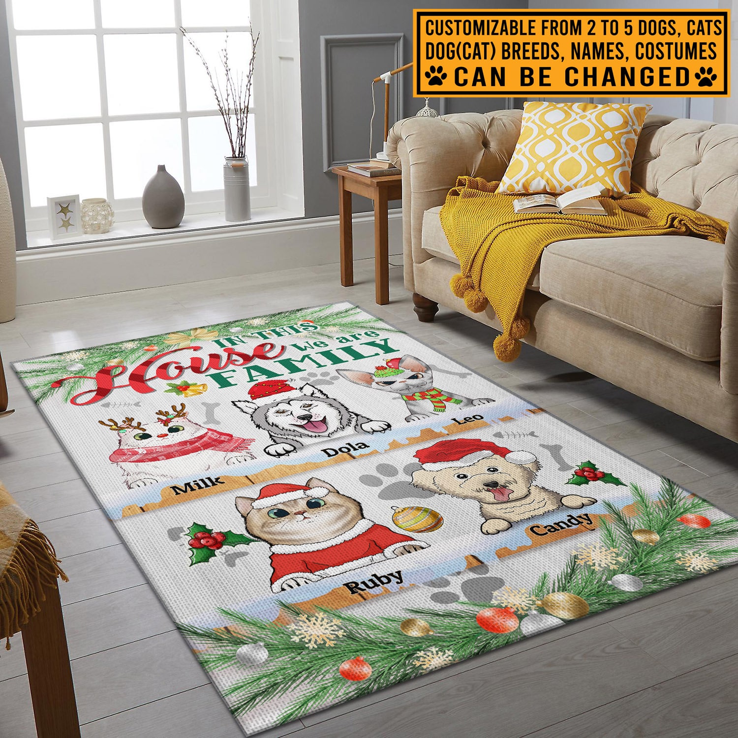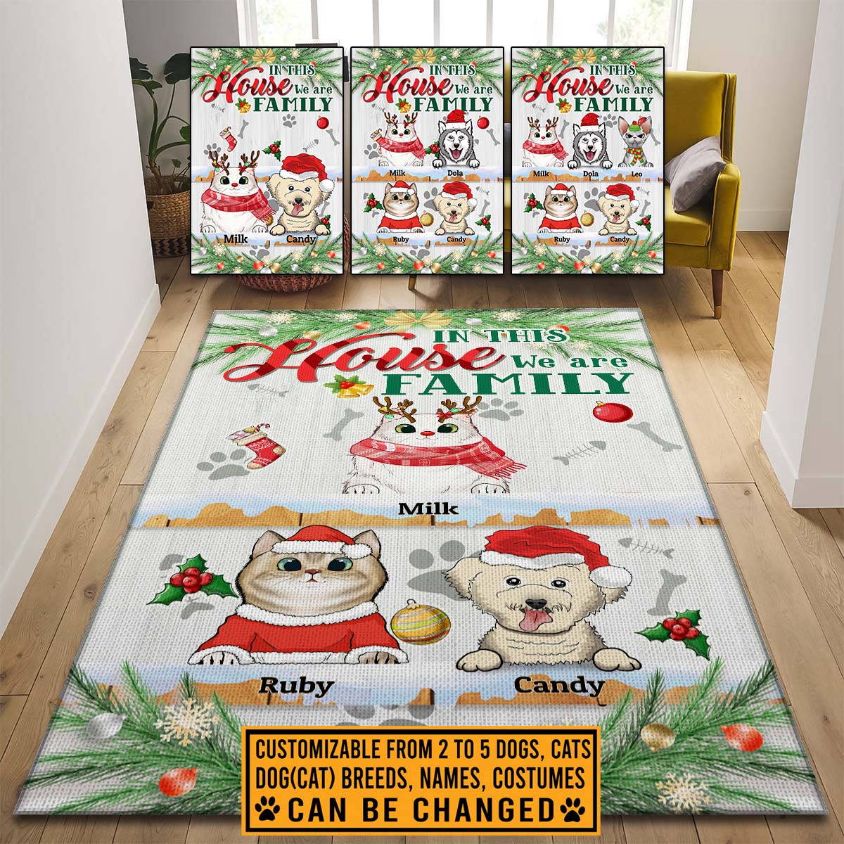 Let’s Shop Custom Dog Cat Breeds Christmas Rug In This House We Are Family Funny Decorative Indoor Rectangle Rug – Floor Mat for Decor!