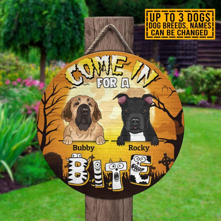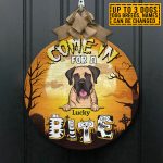 Let’s Shop Come In For A Bite Funny Halloween Custom Dog Name Circle Wooden Door Sign – Dog Welcome Hanging Door Sign!