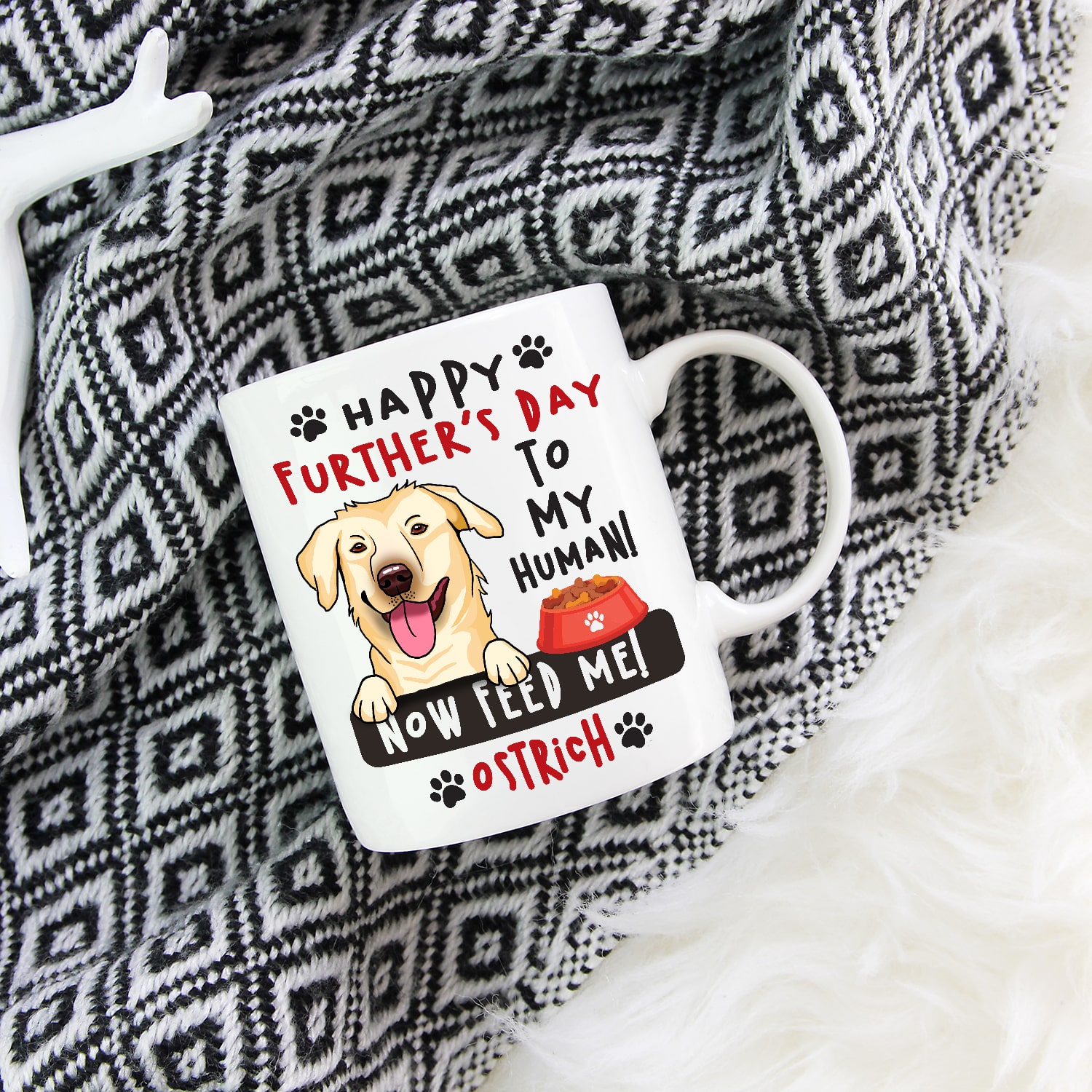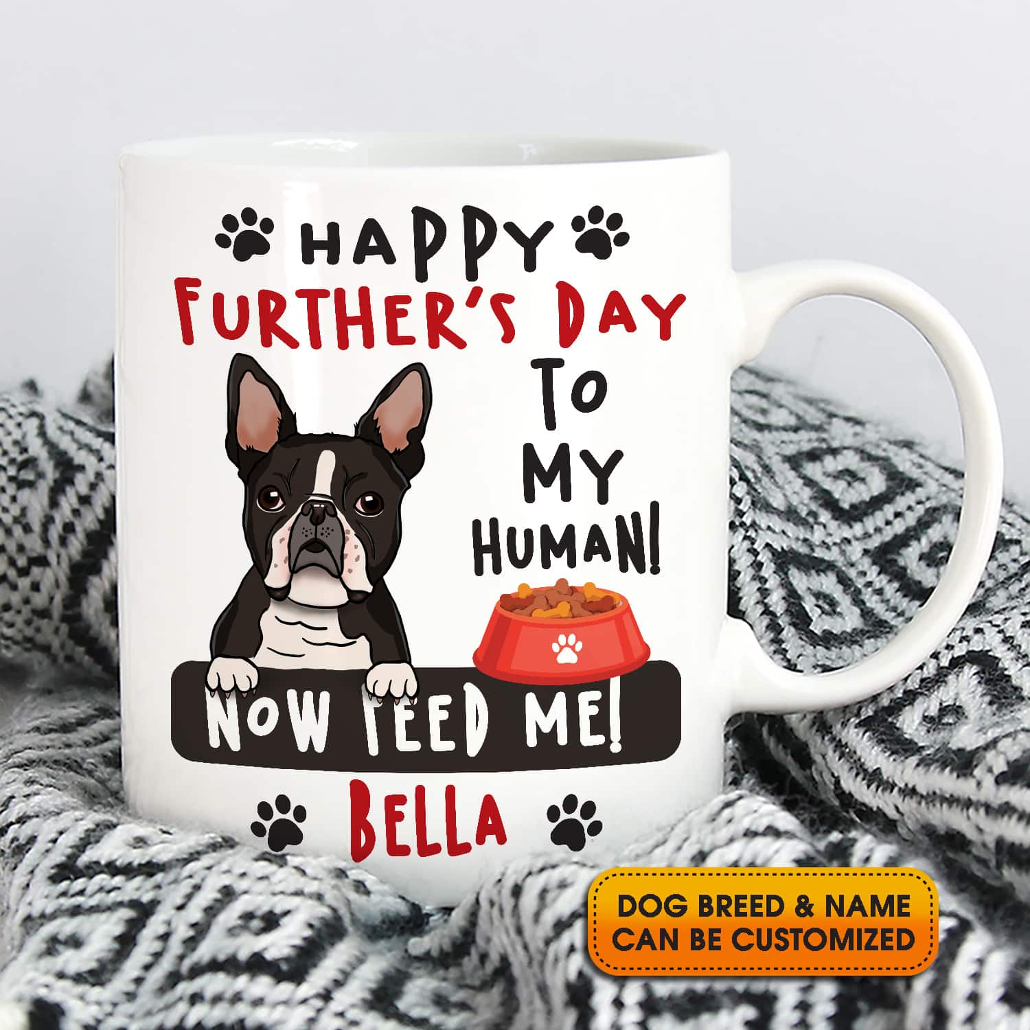 Let’s Shop Personalized Dog Breeds Mugs Happy Further’s Day To My Human Now Feed Me Funny Accent Mug!
