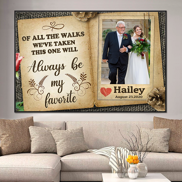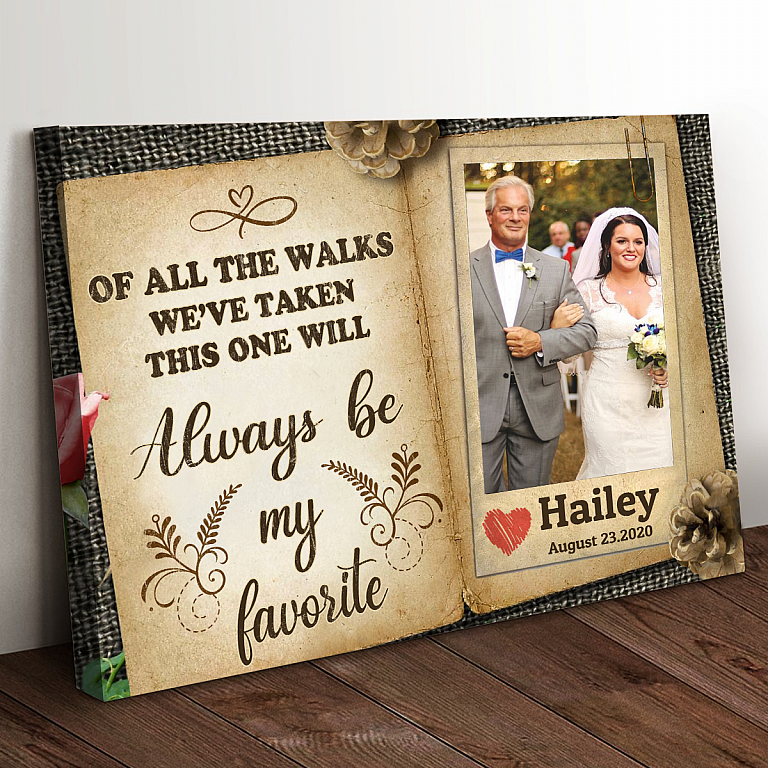 Are you spending too much time to find creative merchandise for you or suitable & special gifts for your mommy, your daddy, your son, your daughter, your children, your friends or someone you love? The struggle is over because we have various Wedding Frame for Dad, Mom Wedding Frame, the Love Between Father and Daughter Frame, Walk with Dad Wedding Gifts, Daughter to Mom Wedding Frame, Wedding Gifts for Mom, Forever Your Little Girl Frame, Custom Wedding Gifts for Dad, Personalized Photo Father of The Bride Wall Decor, Custom Mom Wedding Canvas, of All the Walks We’ve Taken, This One Will Always Be My Favorite which will make perfect presents for your beloveds. In order to make your present stand out, we have created lots of unique and awesome customized photo gifts & personalized designs.
