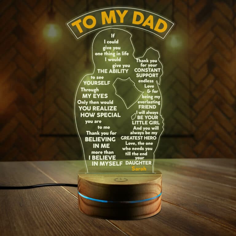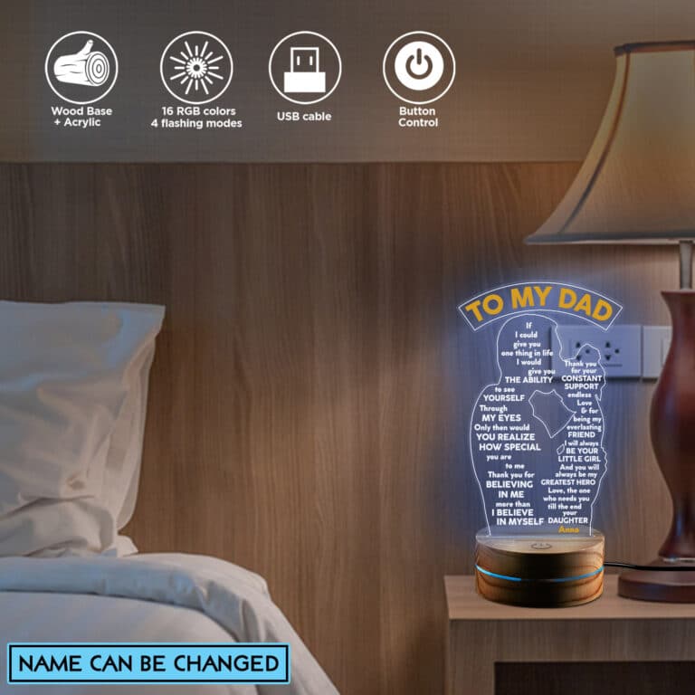 At CubeBik, besides 2D Night Light, we also offer tees, hoodies, sweaters, raglans, tanks, wall arts, canvases, posters, mugs, blankets, engraved jewelry, personalized necklaces, printed face masks, throw pillows, tote bags, hats, accessories and more on our website, so do not miss our other To My Dad if I Could Give You One Thing in Life, Father’s Day Gifts from Daughter, Father to Be Gifts, Fathers Day Gifts, Father’s Day Gift for Uncle, 1st Father’s Day Gift, Father Christmas Gifts, Father S Day Gifts from Wife, Father of The Bride Gifts, Father Birthday Gift, Father Daughter Shirts, Father of The Groom Gifts from Son, Like Father Like Daughter Shirt, Gifts for Dad from Daughter, Gifts for Dad Who Wants Nothing, Best Dad Ever Gifts, First Time Dad Gifts, Gifts for The New Dad related merchandise. Moreover, all the products are made-to-order and one of a kind custom designs you can’t get elsewhere in normal stores. Let’s discover CubeBik.com now and find your favorite personalized items. We can’t wait to surprise and build beautiful memories with you and your loved ones.