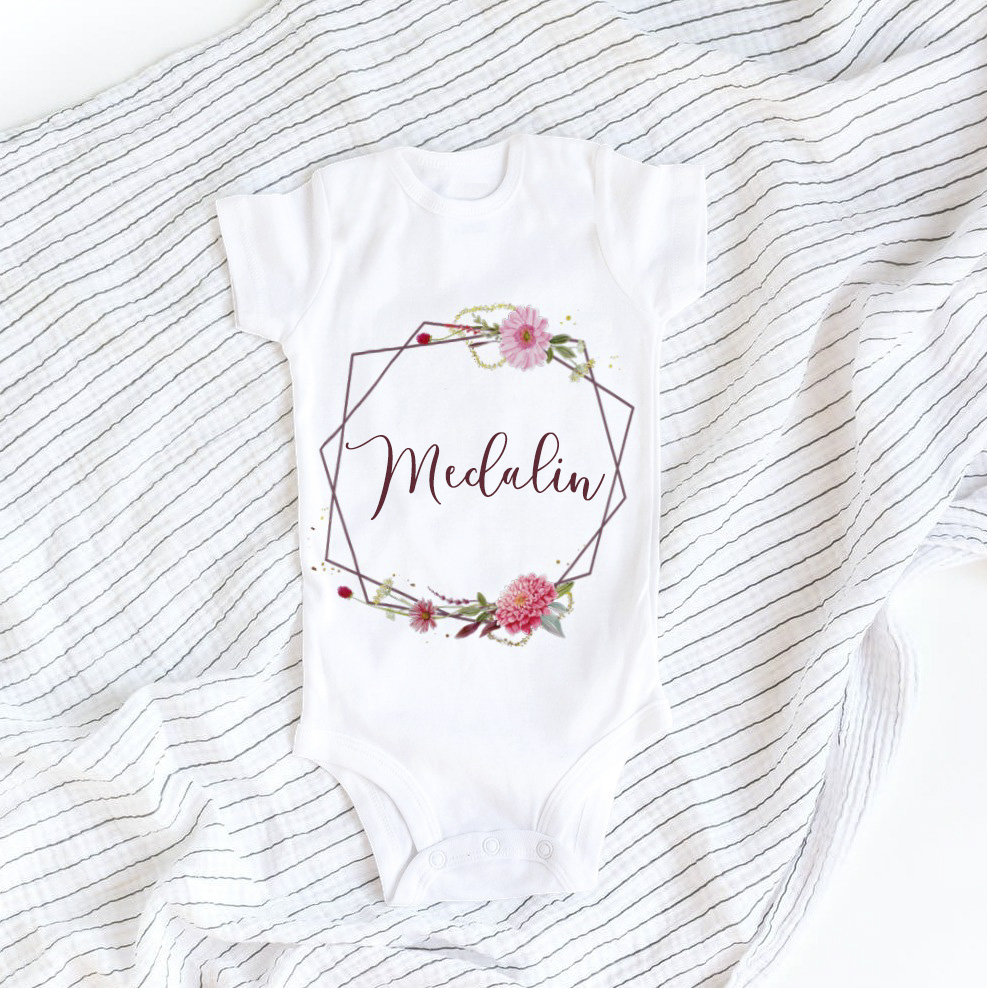 Let’s Shop Personalized Floral Wreath Baby Onesie – Baby Infant Bodysuit!
