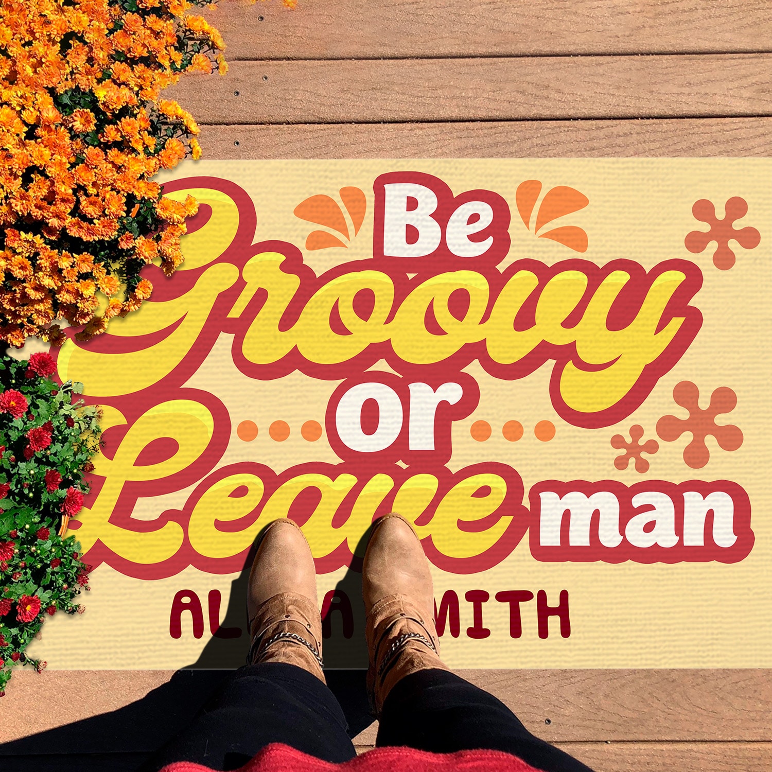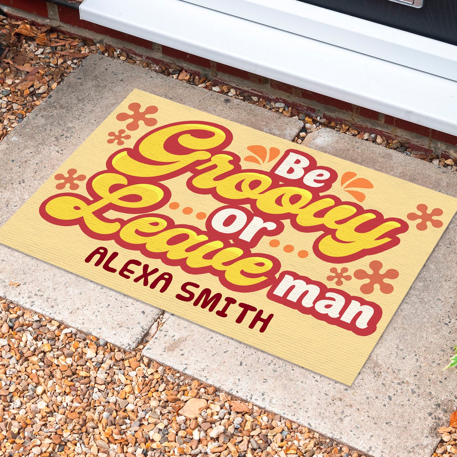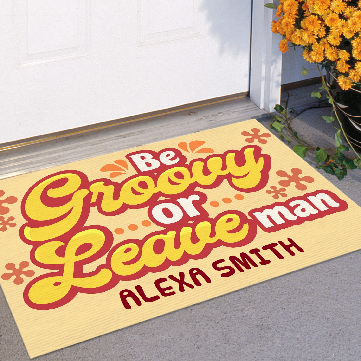 Let’s Shop Personalized Be Groovy or Leave Man Custom Family Doormat Funny Welcome Rug Outdoor Decorative Doormat!