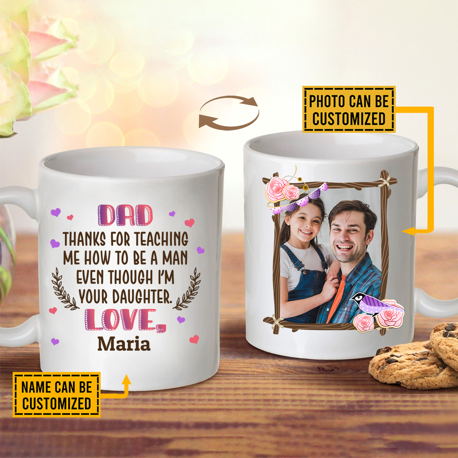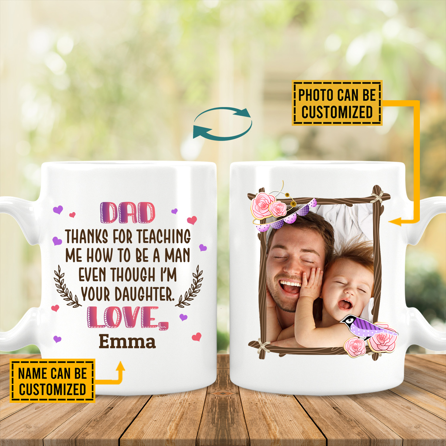 Let’s Shop Personalized Photo Dad Thanks for Teaching Me how To Be a Man Two Sided Ceramic Coffee Mug – Beer Stein!