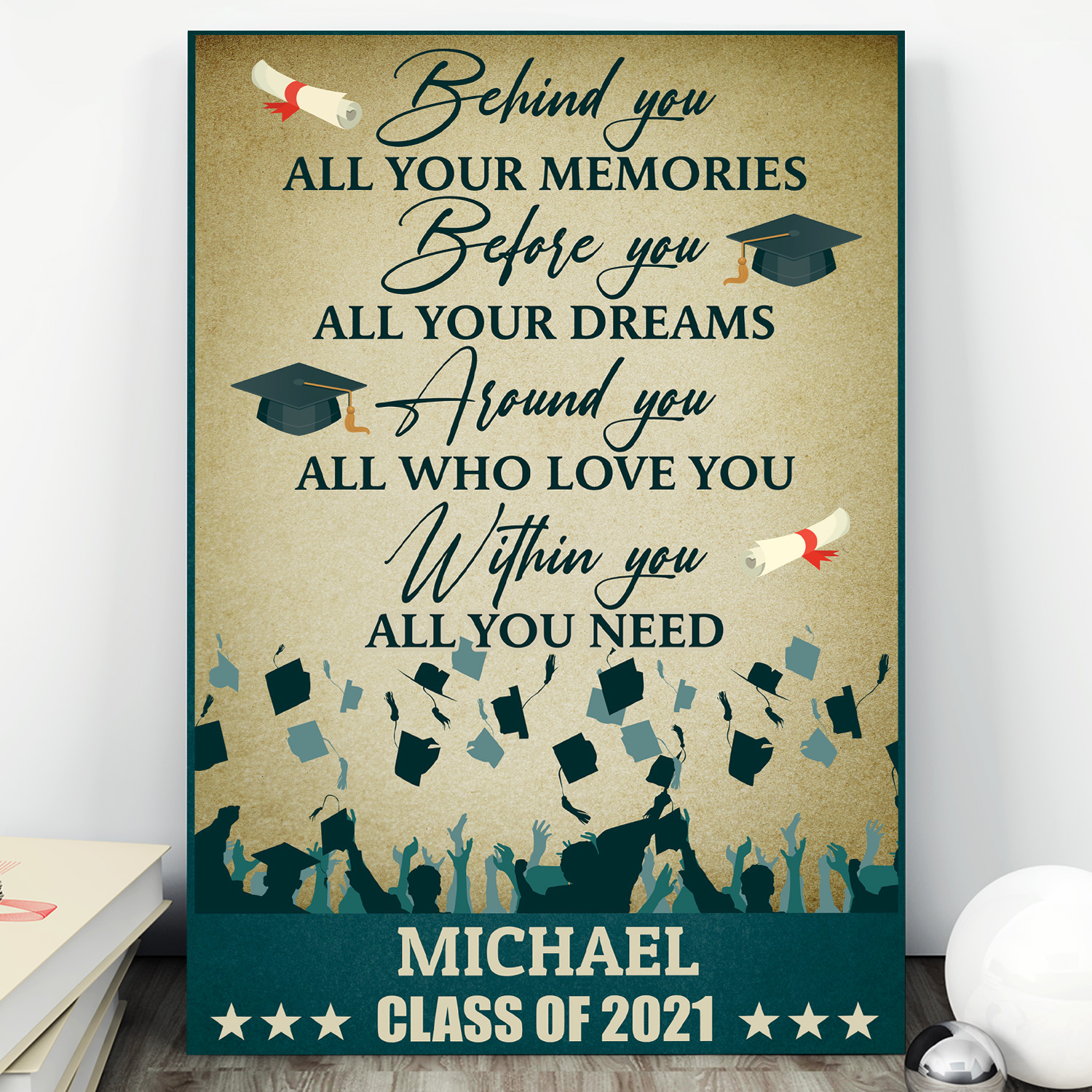 Let’s Shop Personalized Graduation 2021 Behind You All Your Memories Framed Canvas Prints – Unframed Poster – Wall Art!