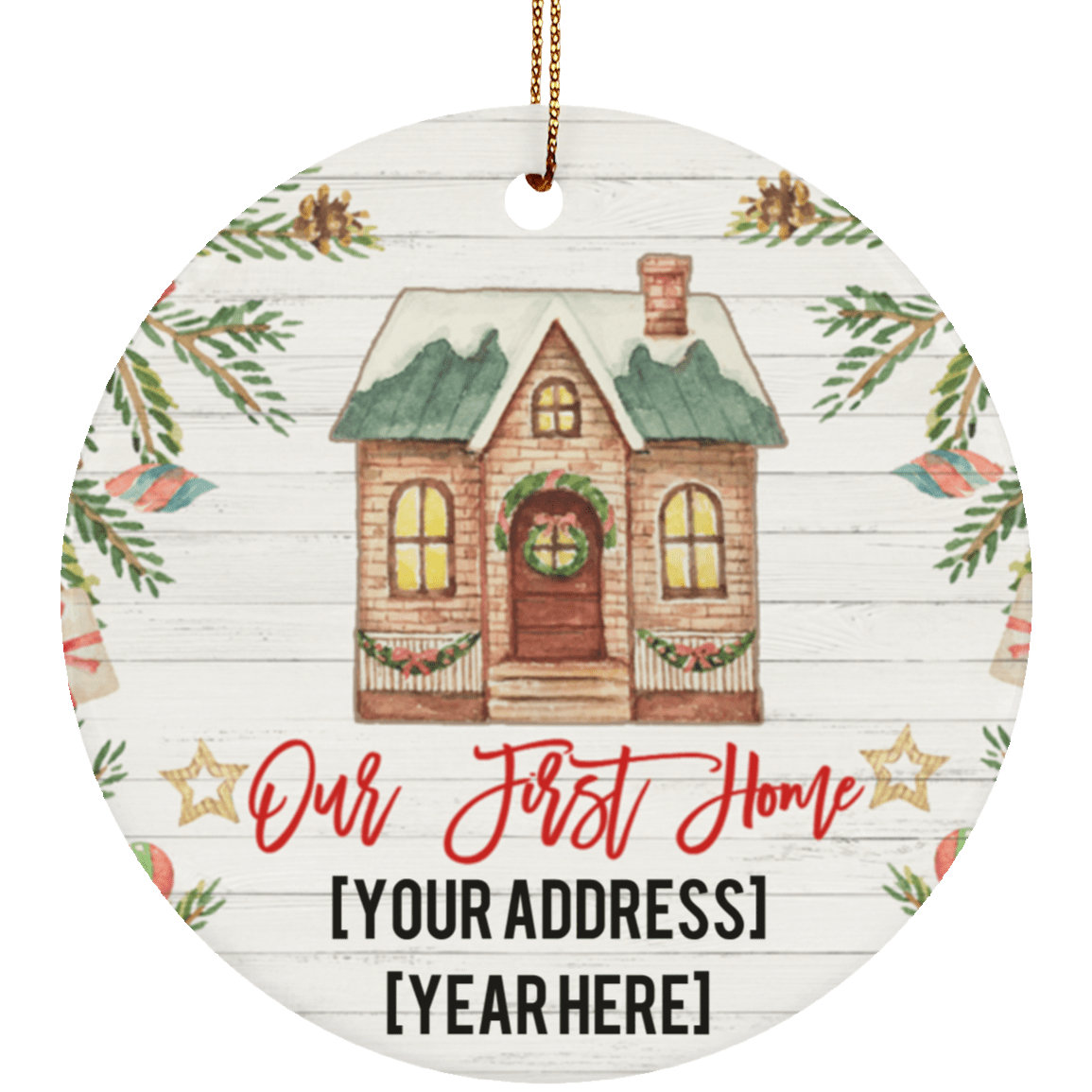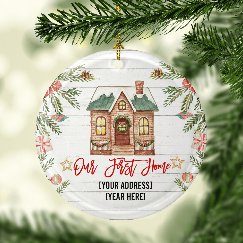 Personalized Our First Home Decorative Ornament Keepsake – Flat Circle Porcelain Ceramic New Home Ornament