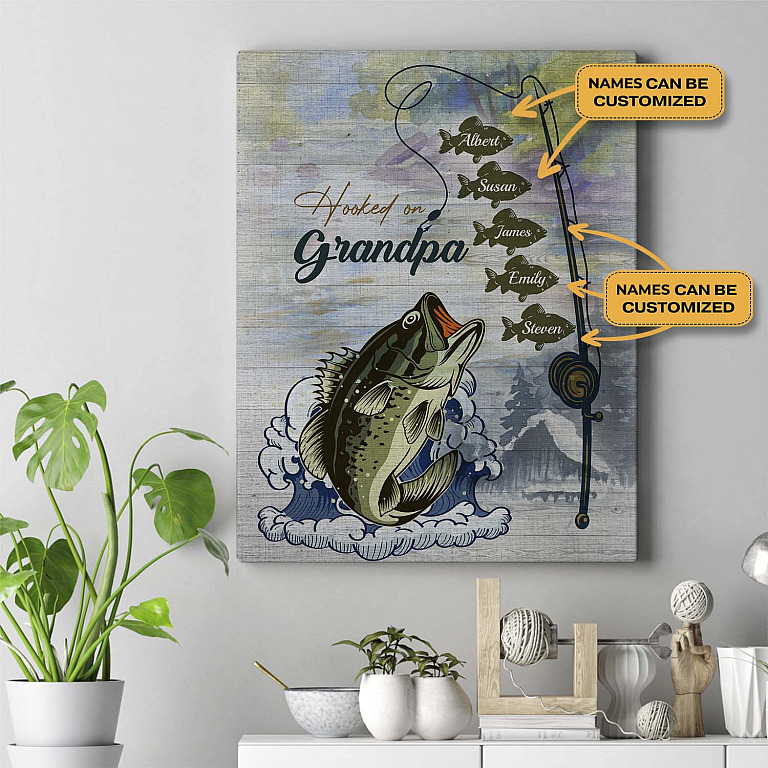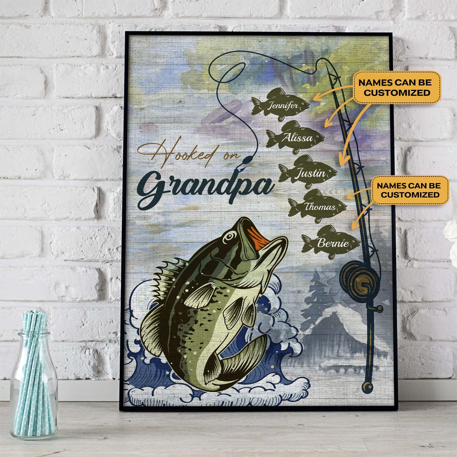 Let’s Shop Personalized Hooked On Grandpa Gallery Wrapped Framed Canvas Prints – Unframed Poster – Home Decor Wall Art!